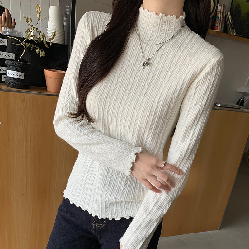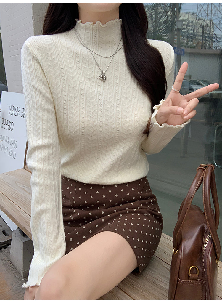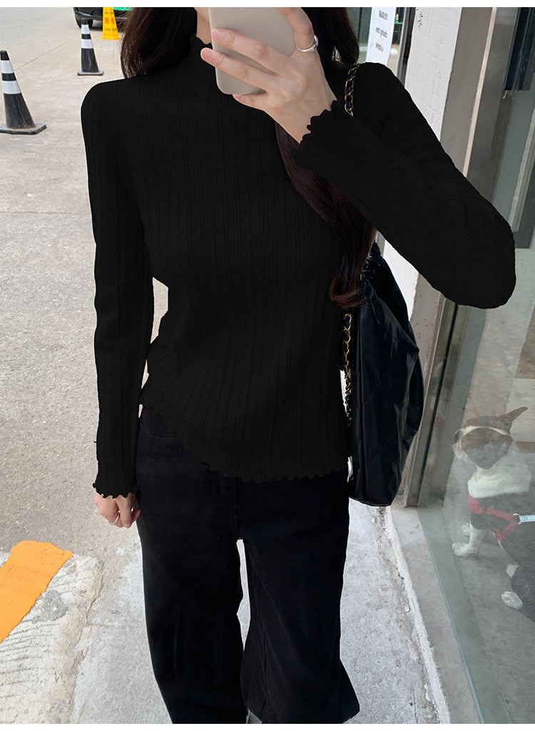 【F01114】韓版肌理感氣質高領針織衫250106