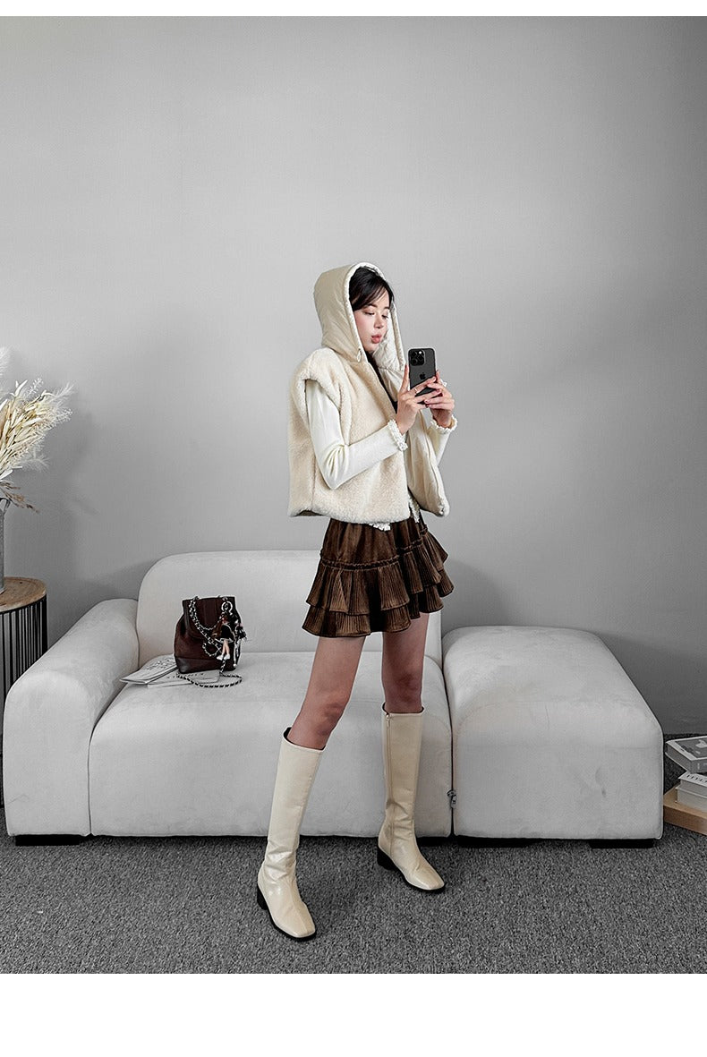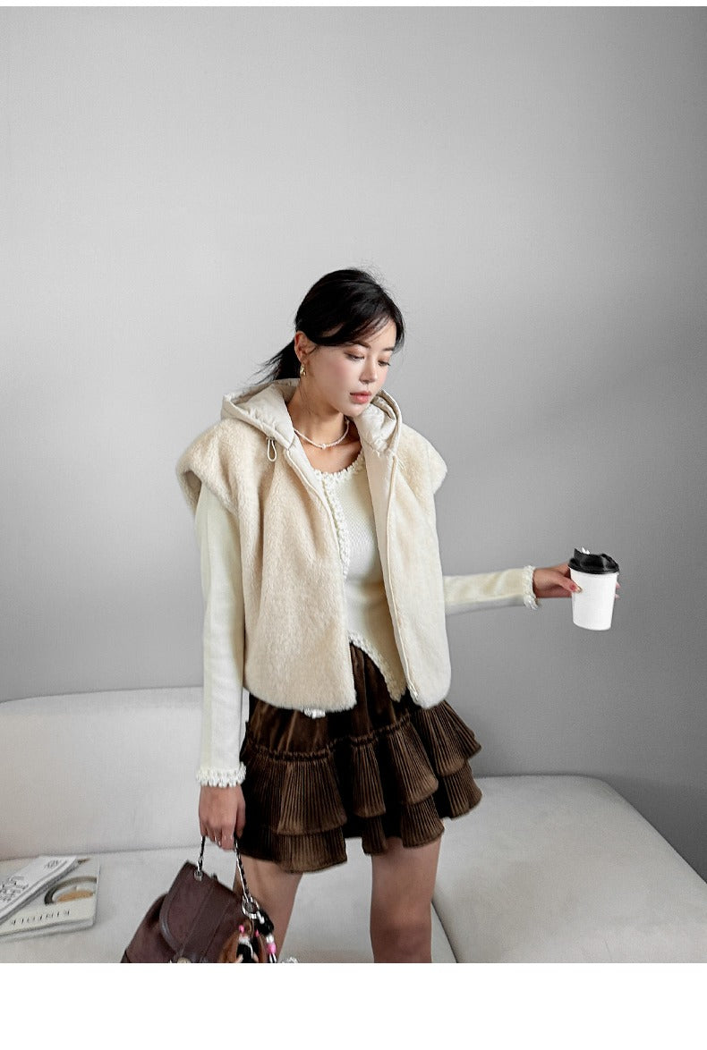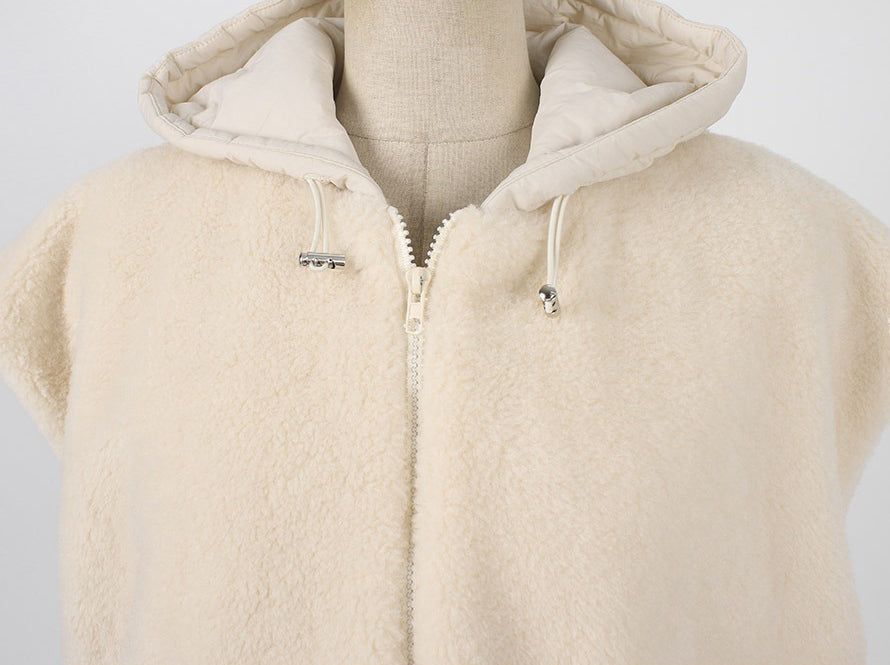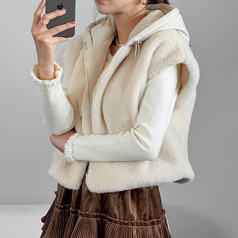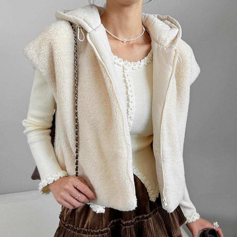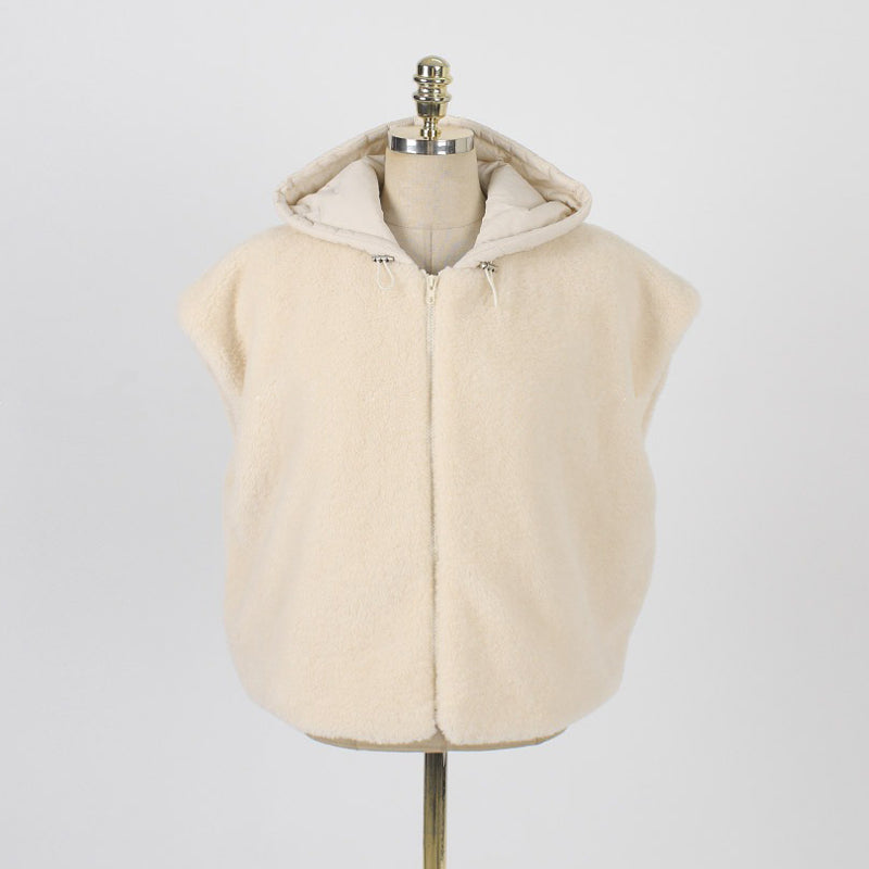 【F01205】實拍韓國羊羔毛兩面穿毛毛夾棉連帽背心外套250113