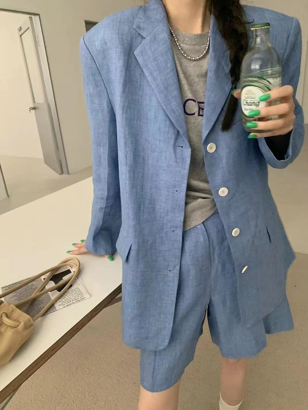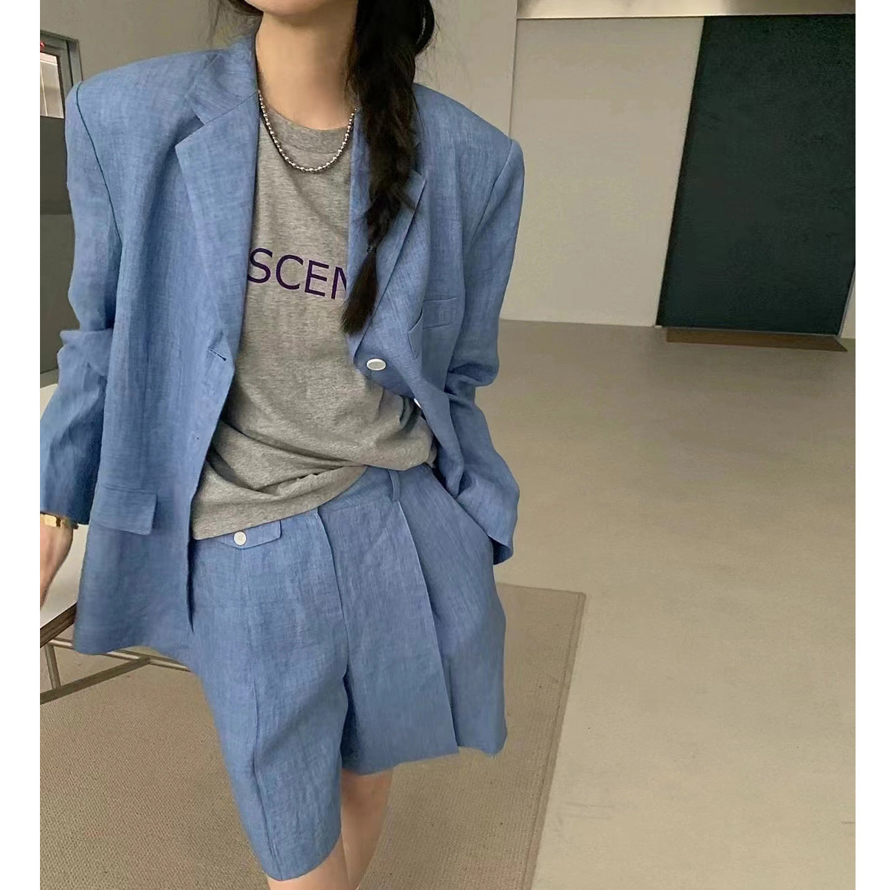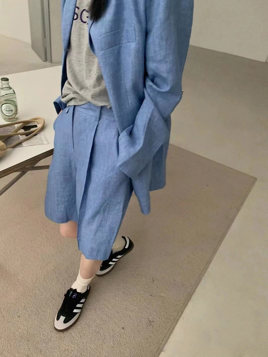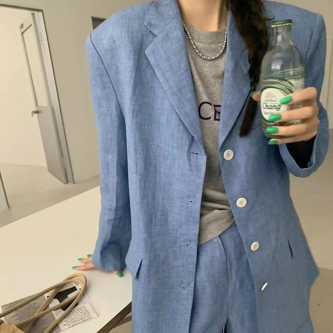 【F01211】實拍早春長袖西服外套+斜口袋設計休閒短褲(分開下單)250113