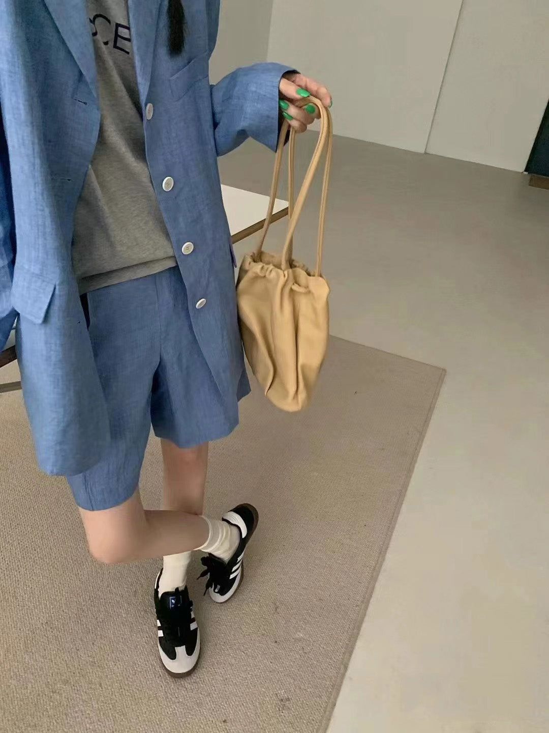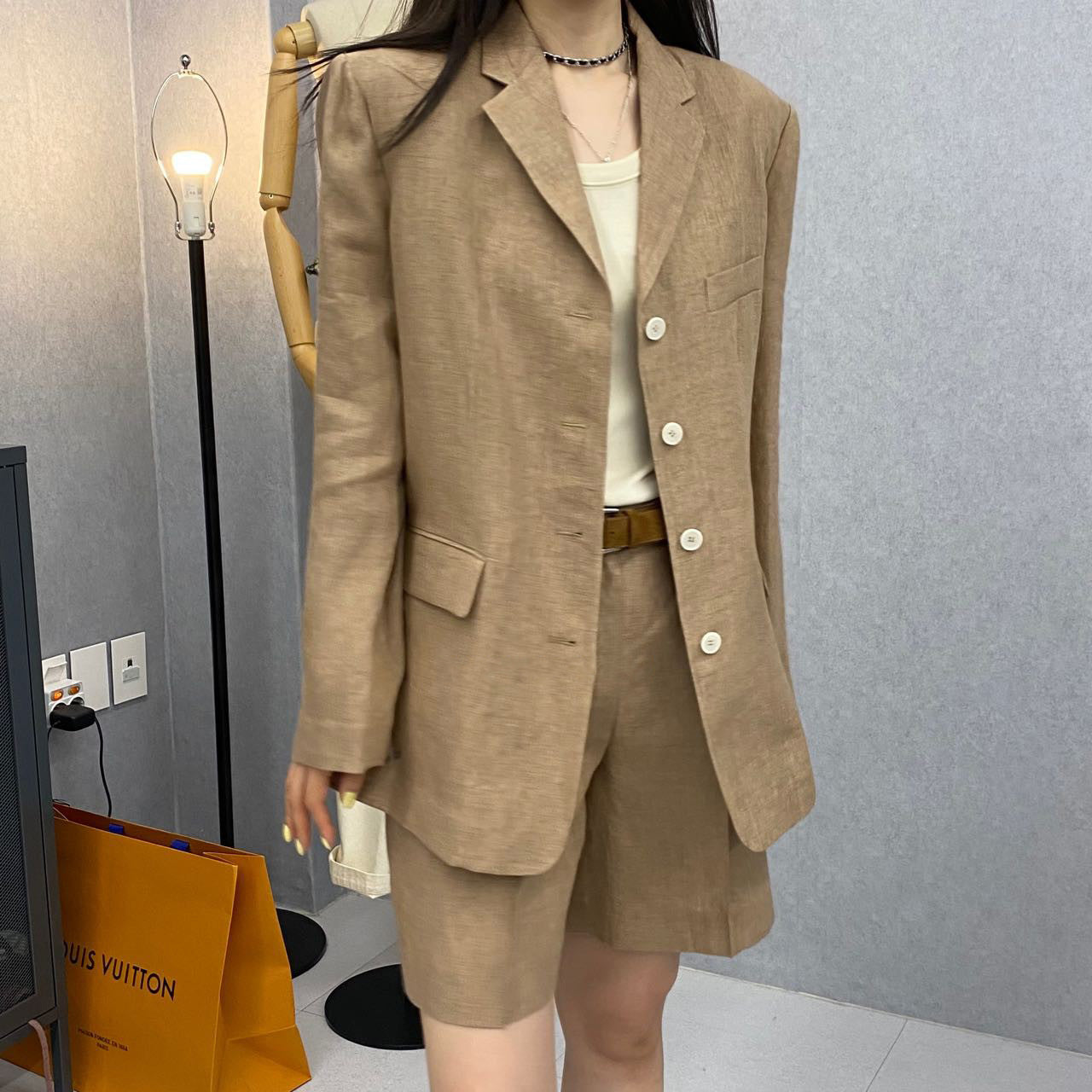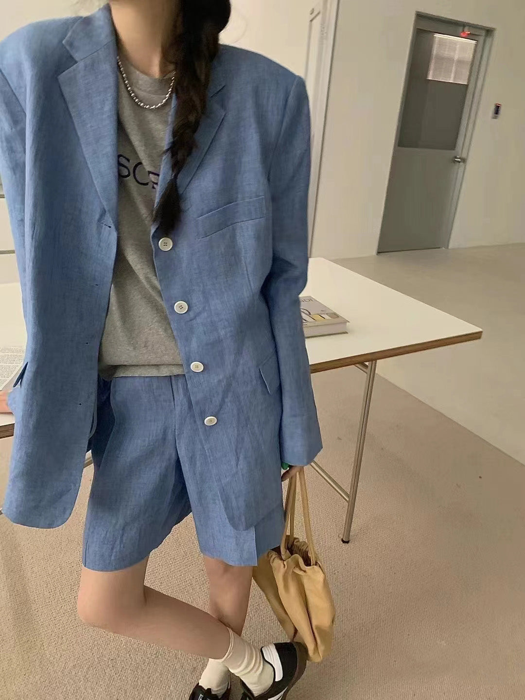 【F01211】實拍早春長袖西服外套+斜口袋設計休閒短褲(分開下單)250113