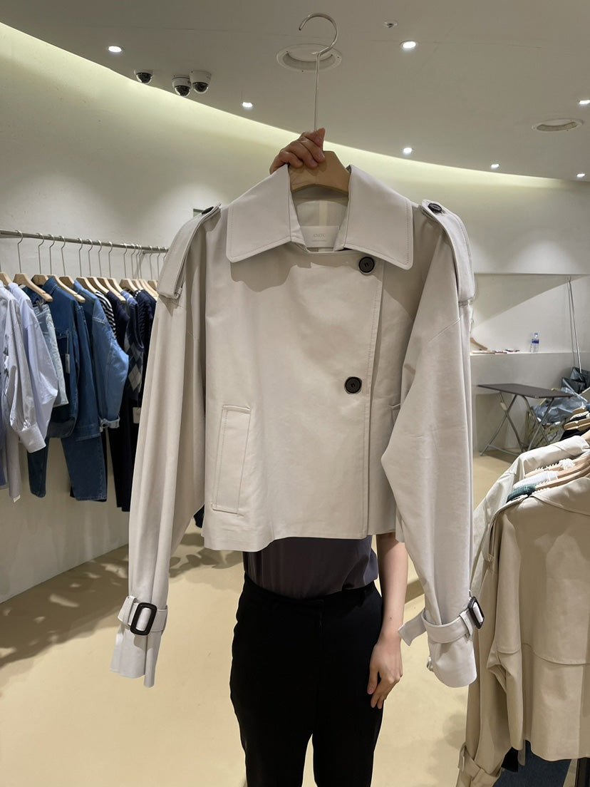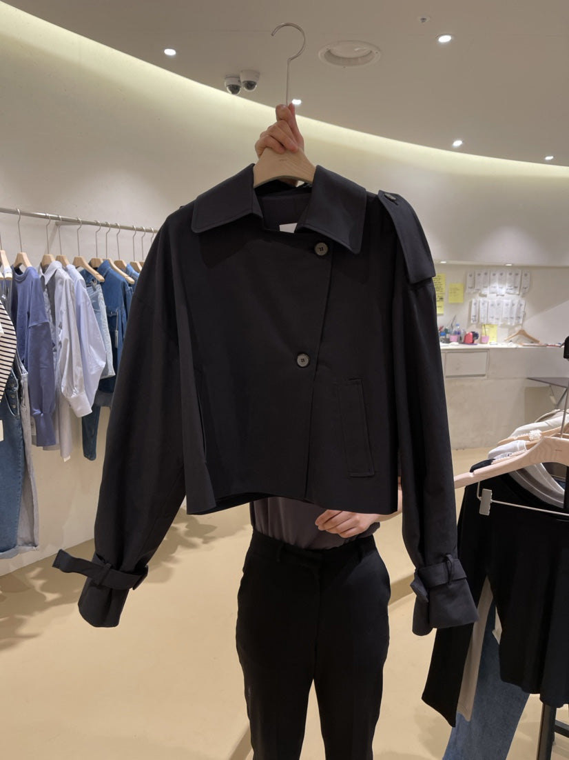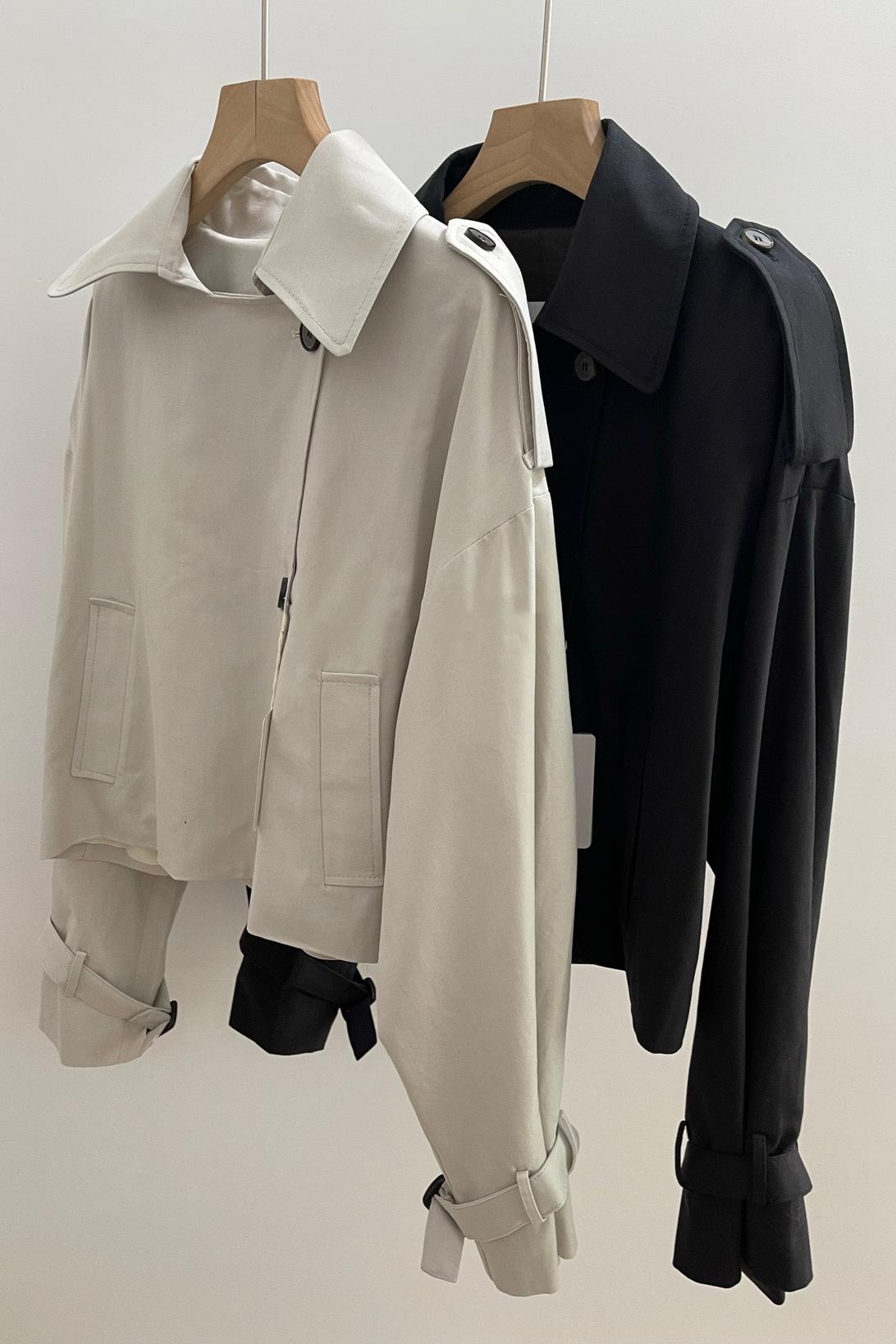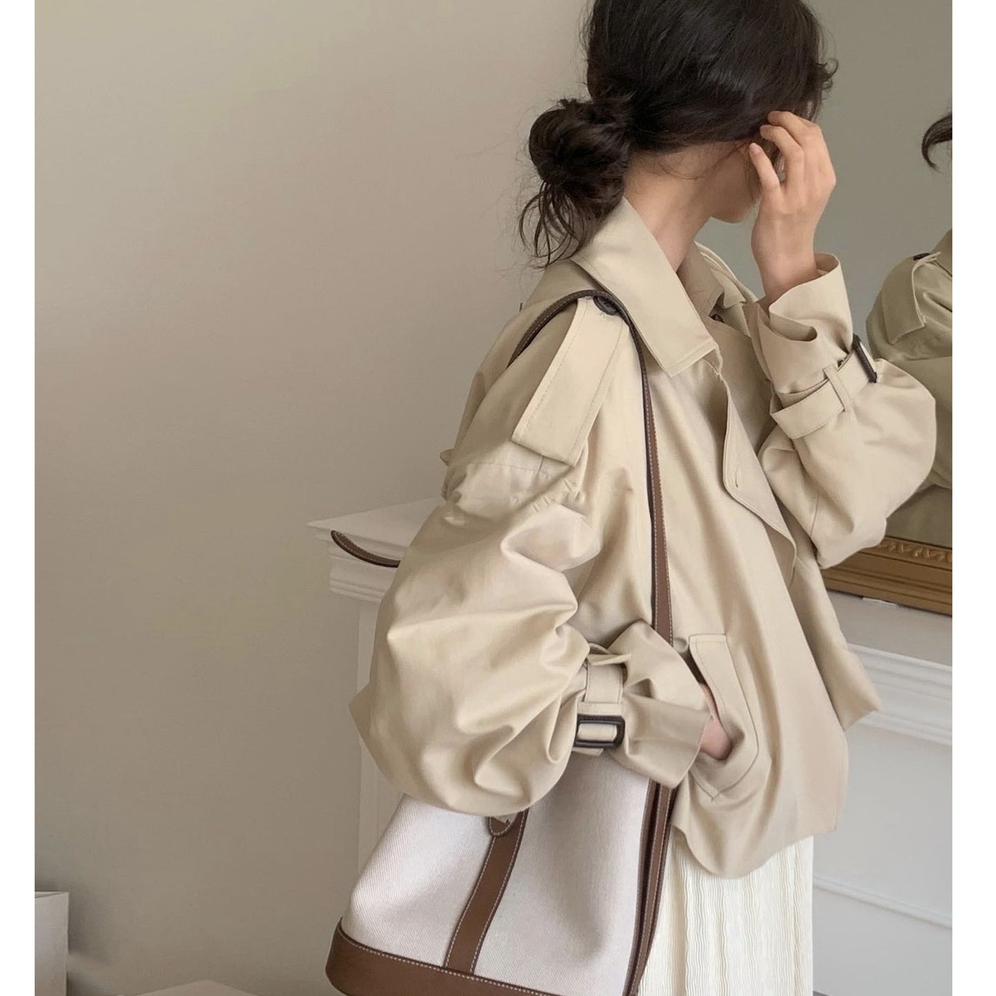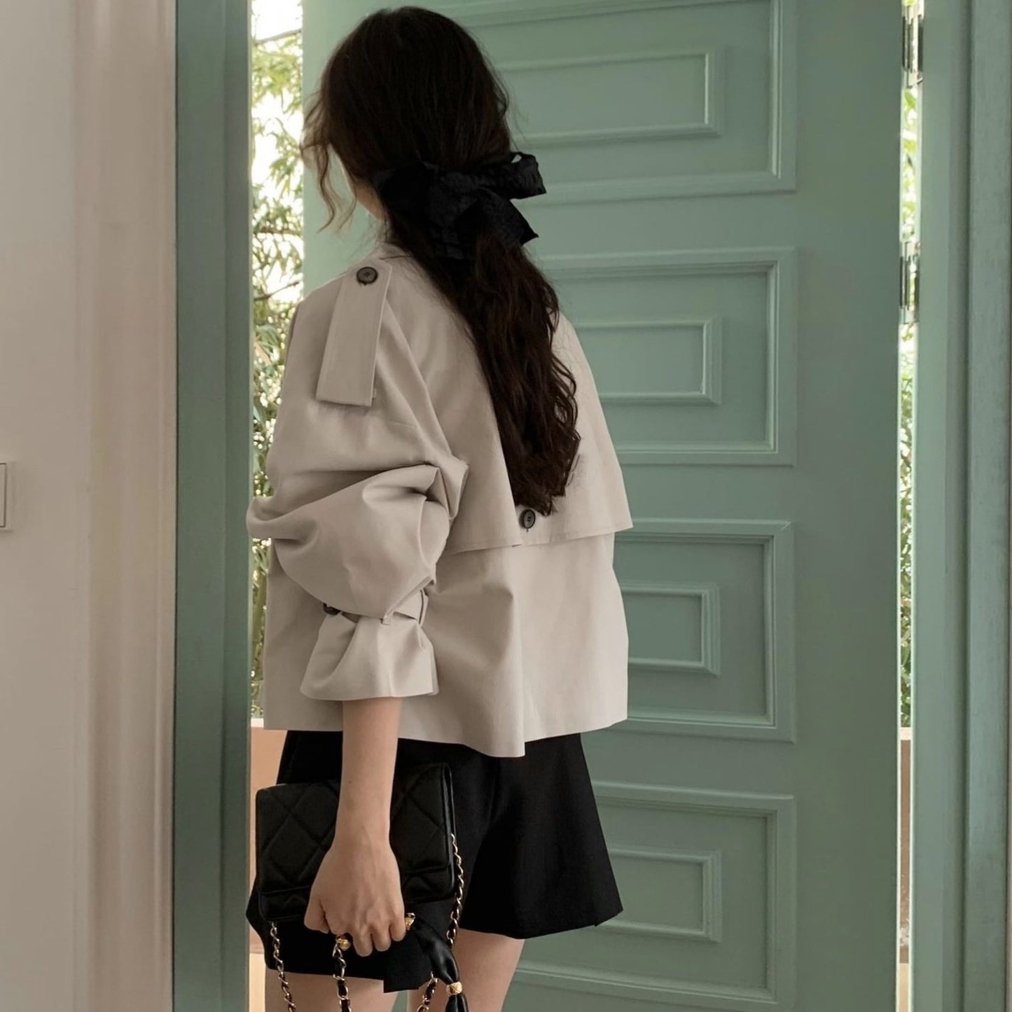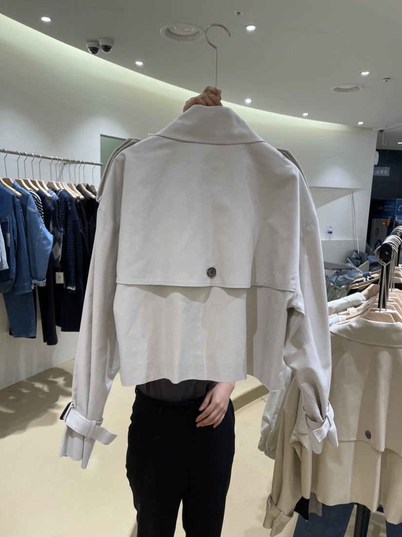 【F01221】早春法式復古西裝領寬鬆長袖短版風衣外套250113