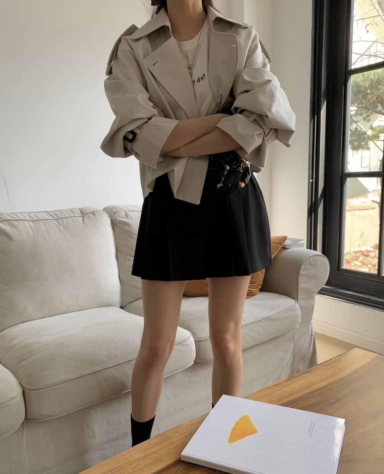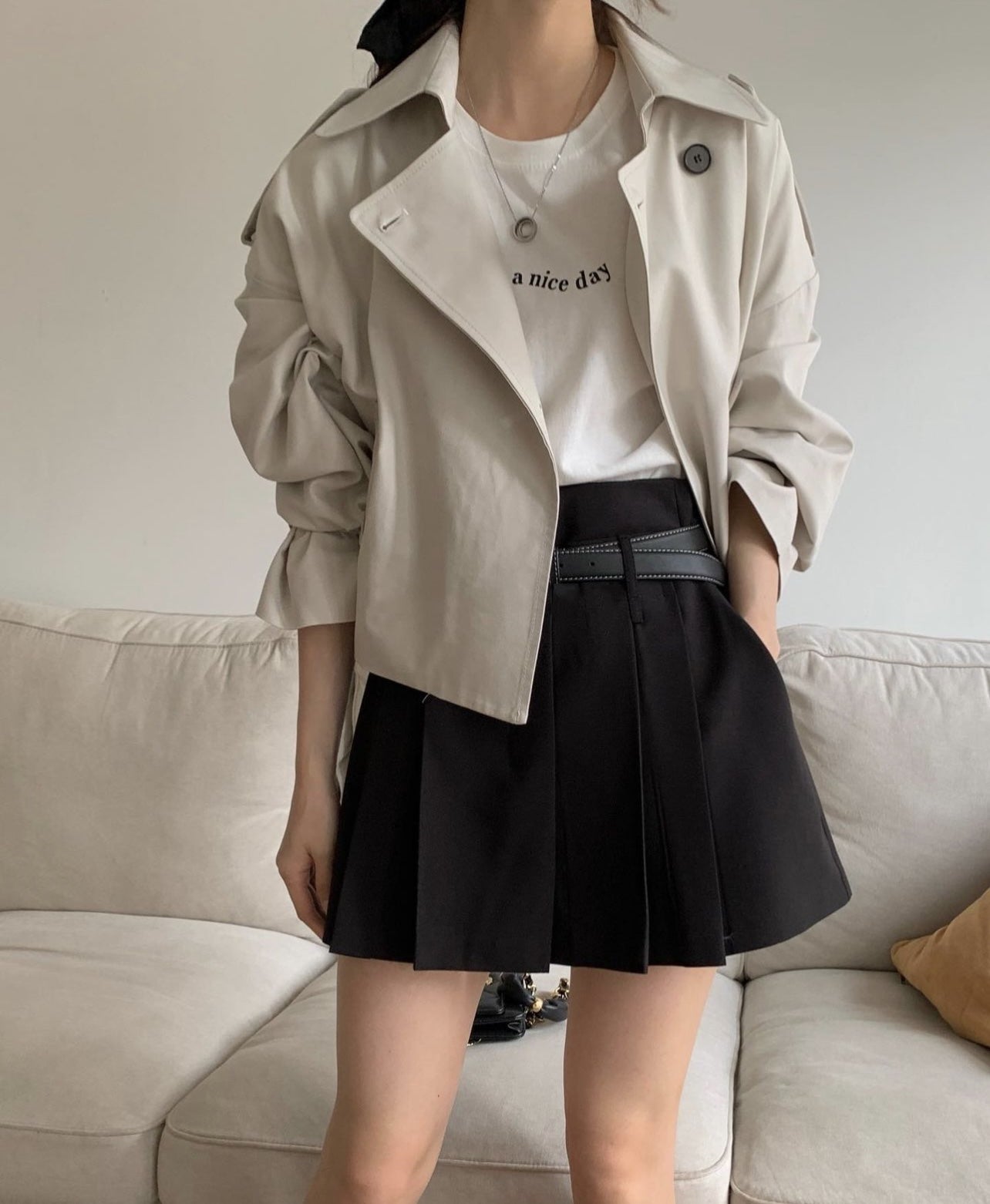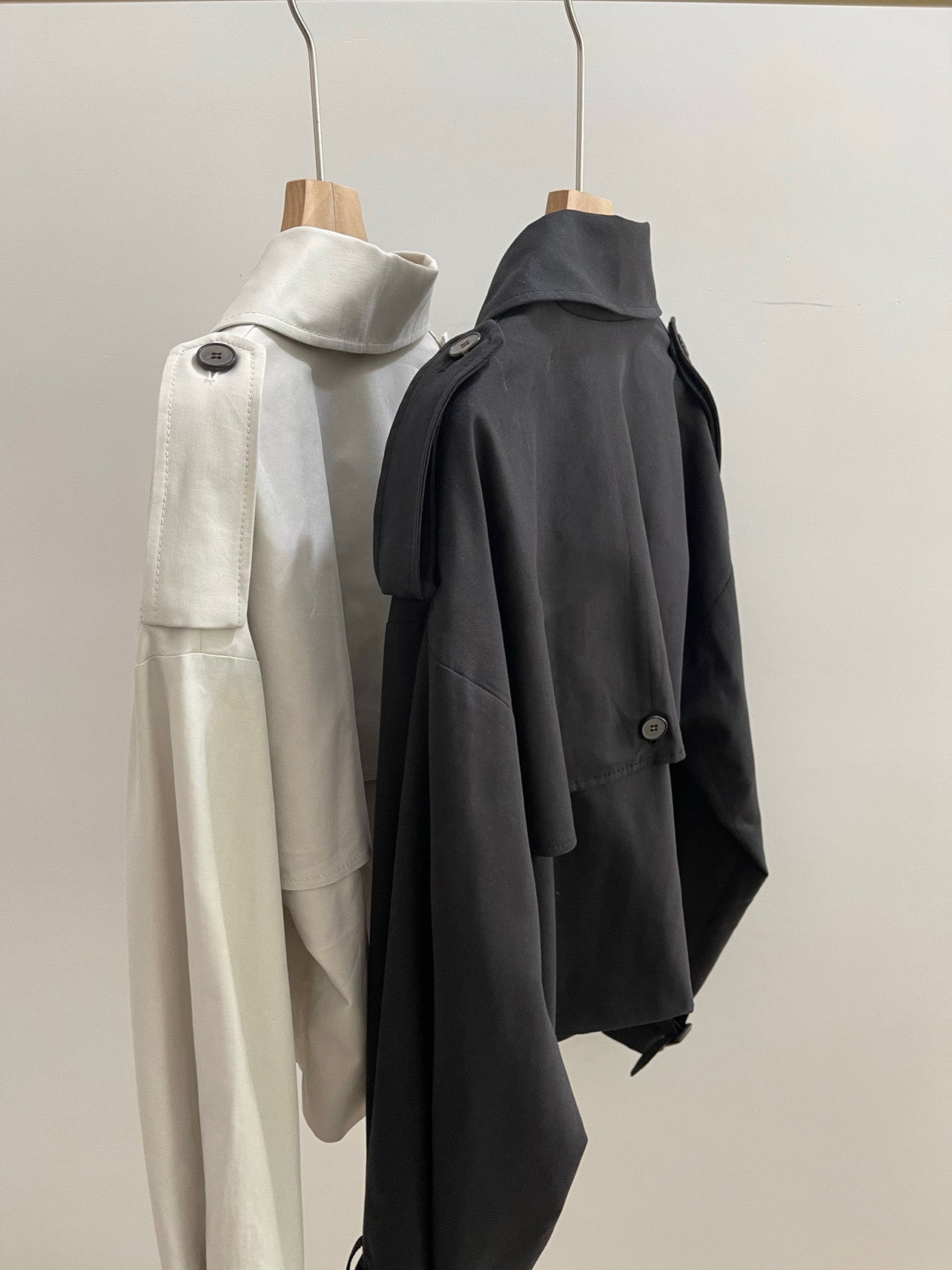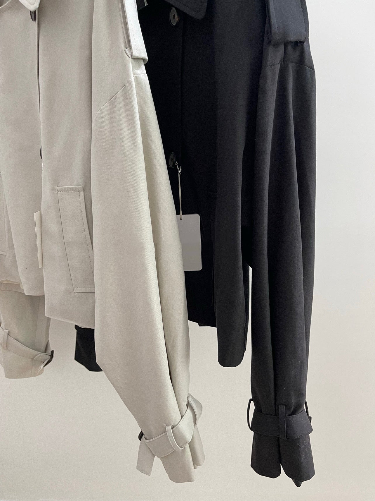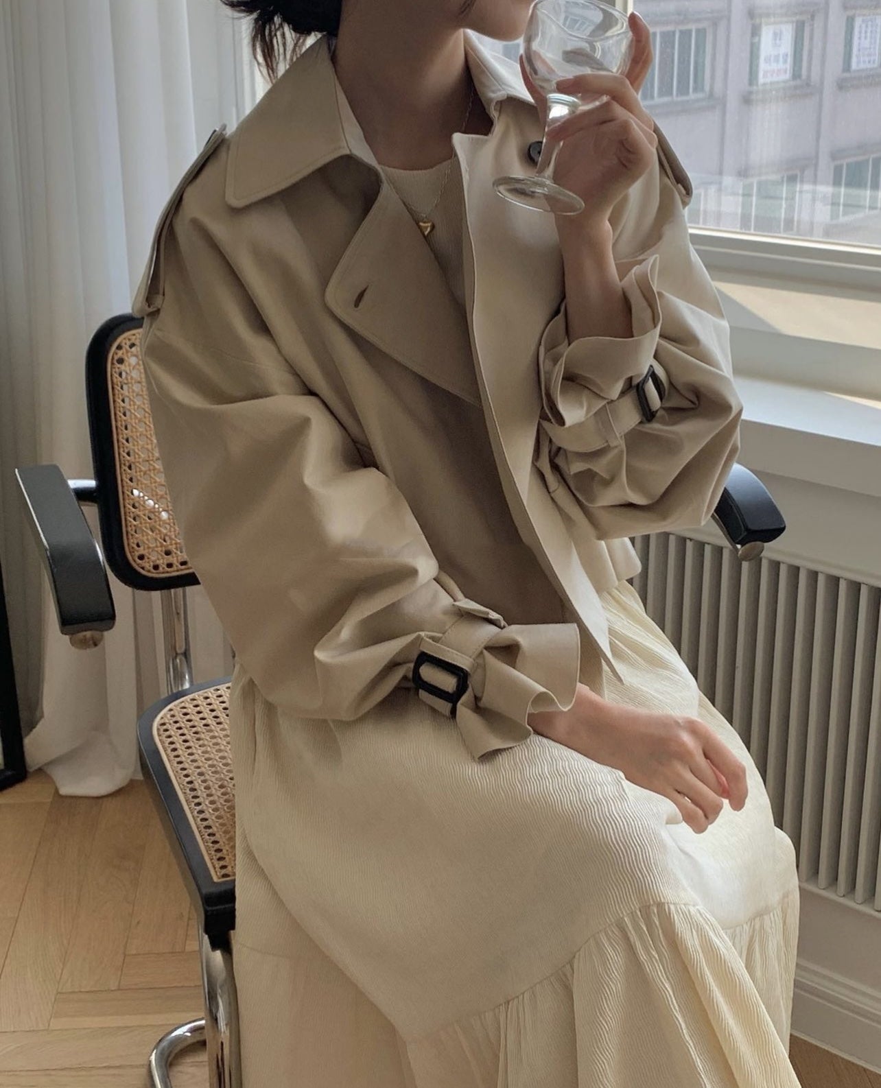 【F01221】早春法式復古西裝領寬鬆長袖短版風衣外套250113
