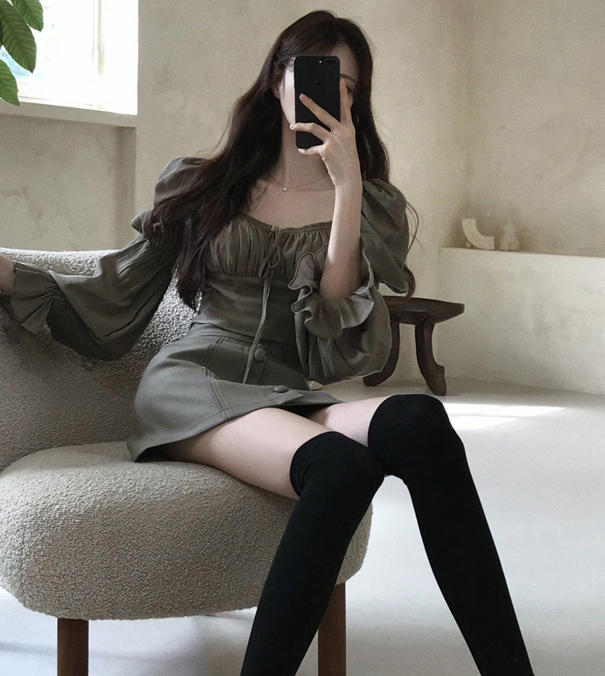 【F01222】早春韓國法式方領上衣+高腰a字裙(分開下單)250113