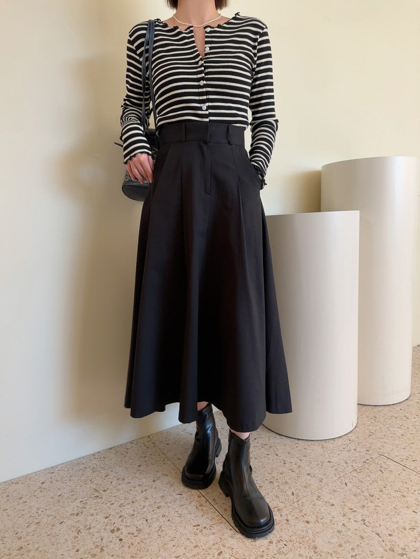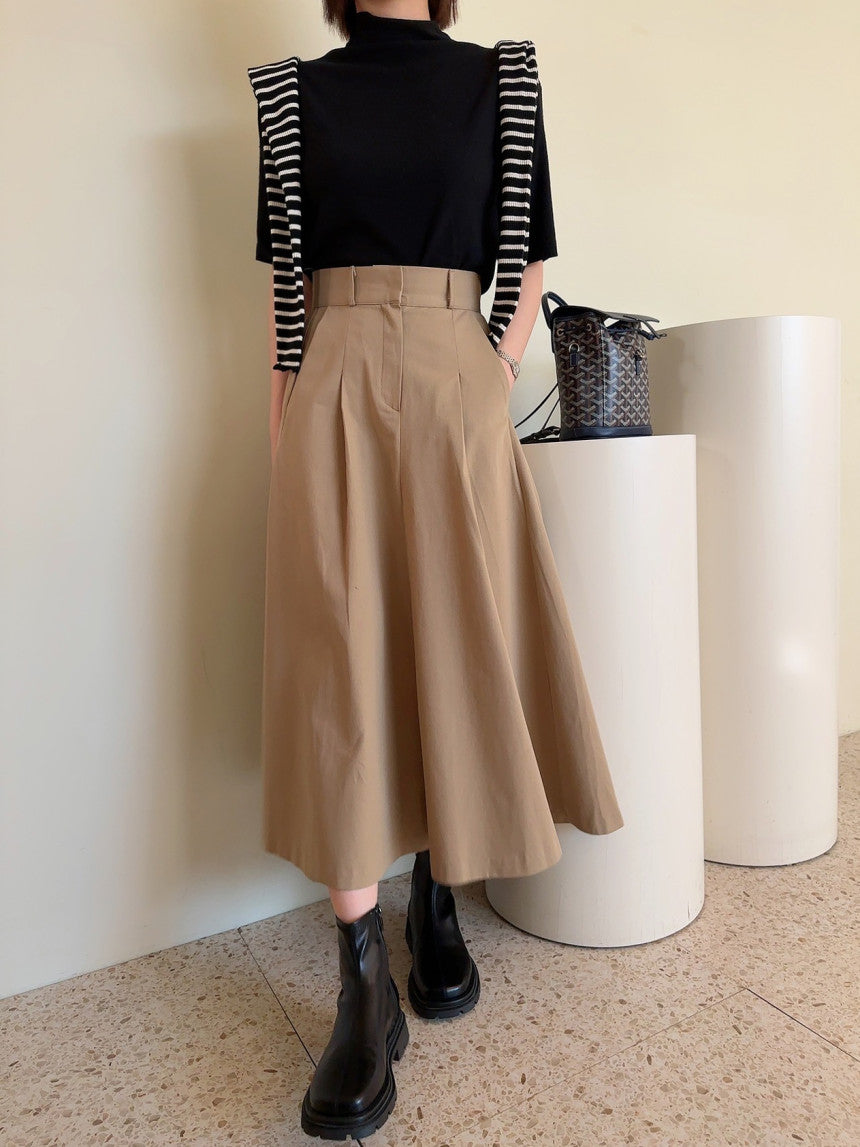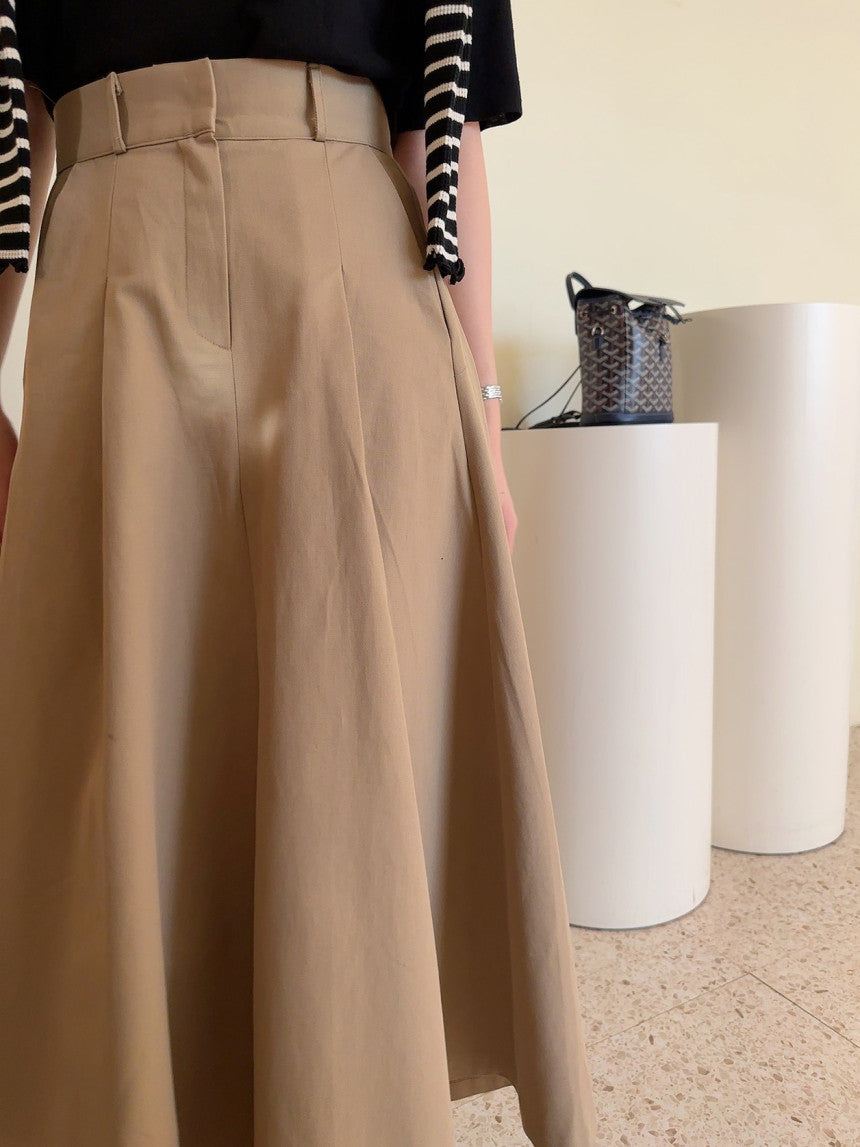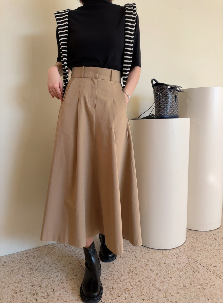 【F032260】韓國法式顯瘦高腰大A字裙(後鬆緊腰)250311