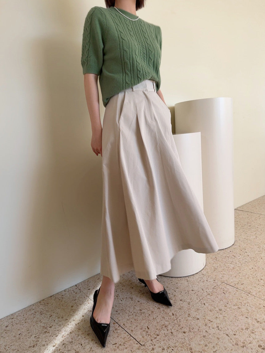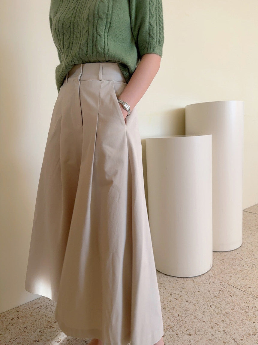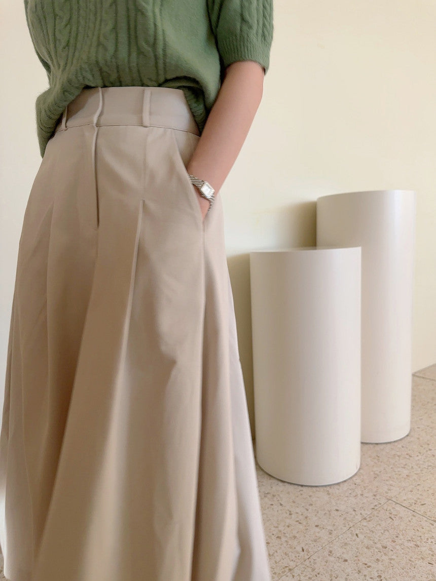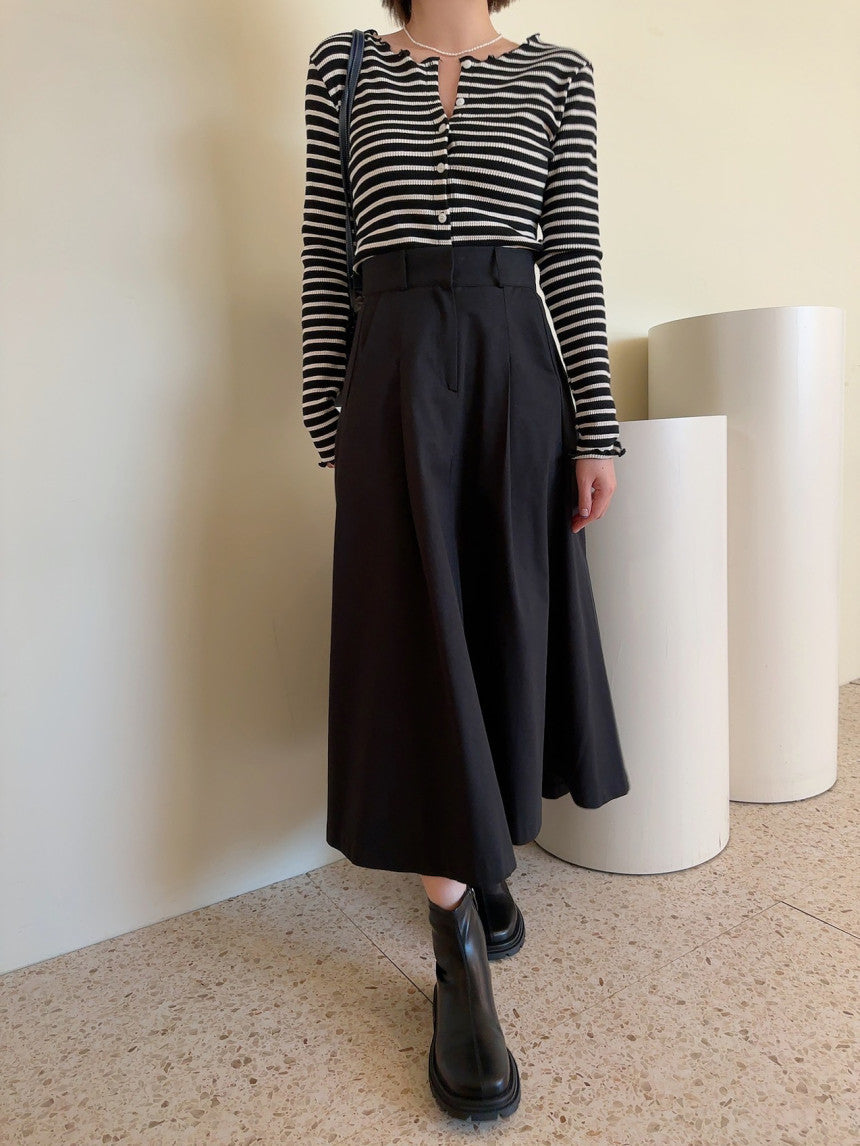 【F032260】韓國法式顯瘦高腰大A字裙(後鬆緊腰)250311
