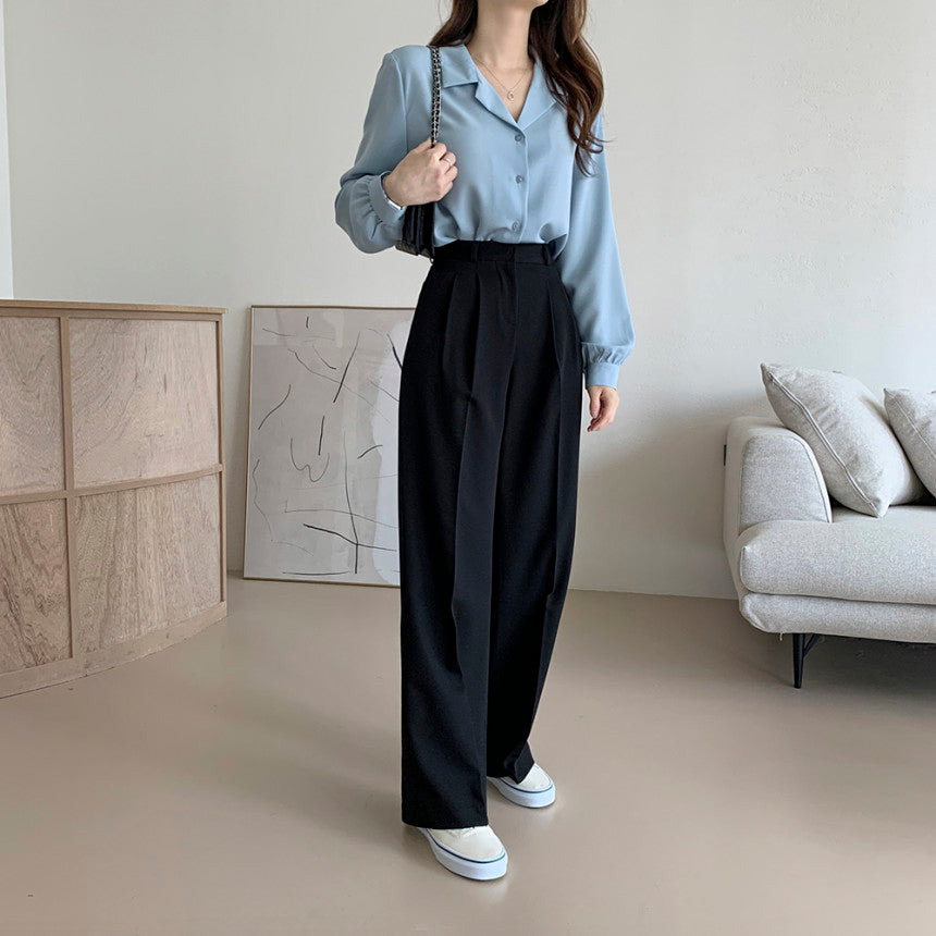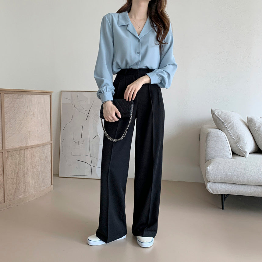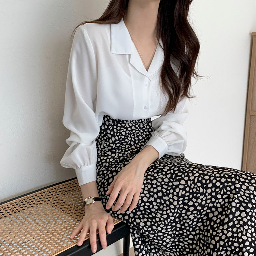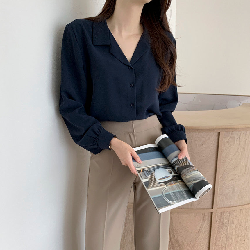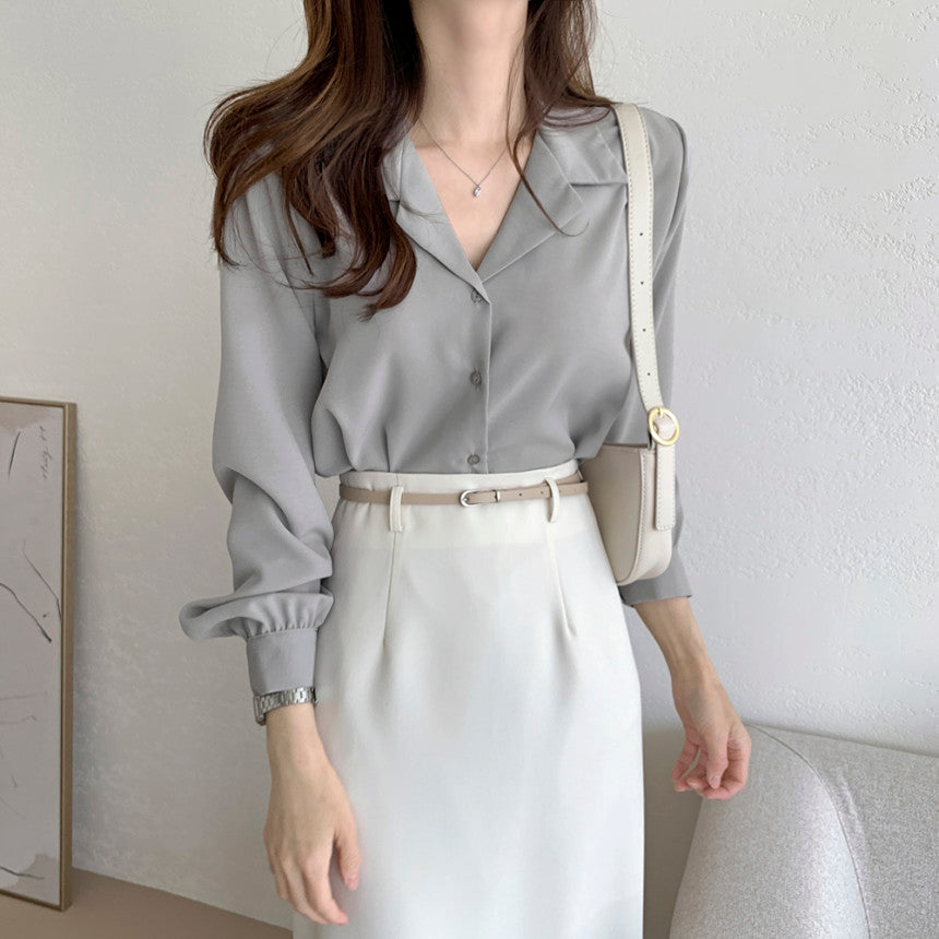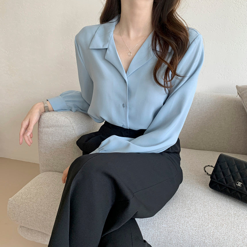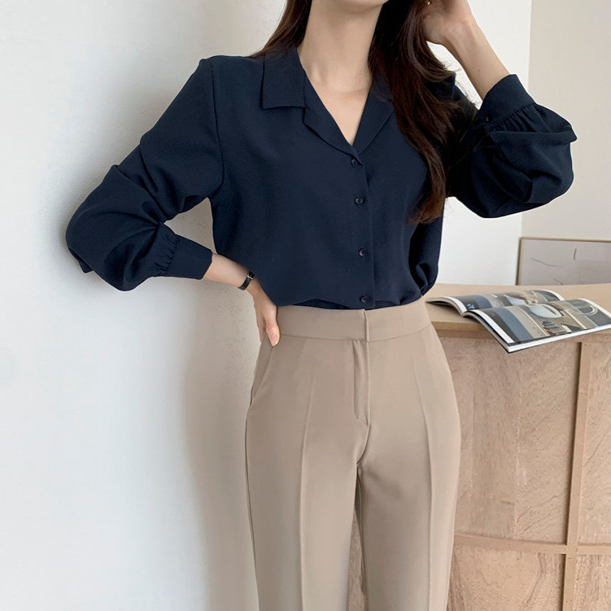 【F032262】韓國法式復古西裝領氣質襯衫250311
