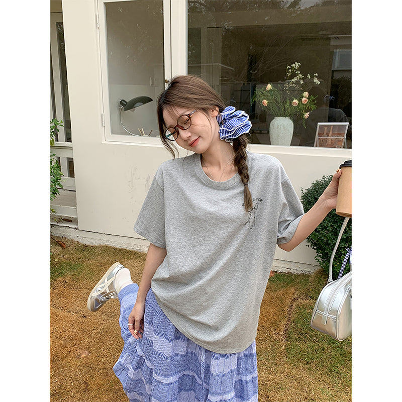 【F032265】實拍S~XL舒適寬鬆蝴蝶結印花短袖t恤250311
