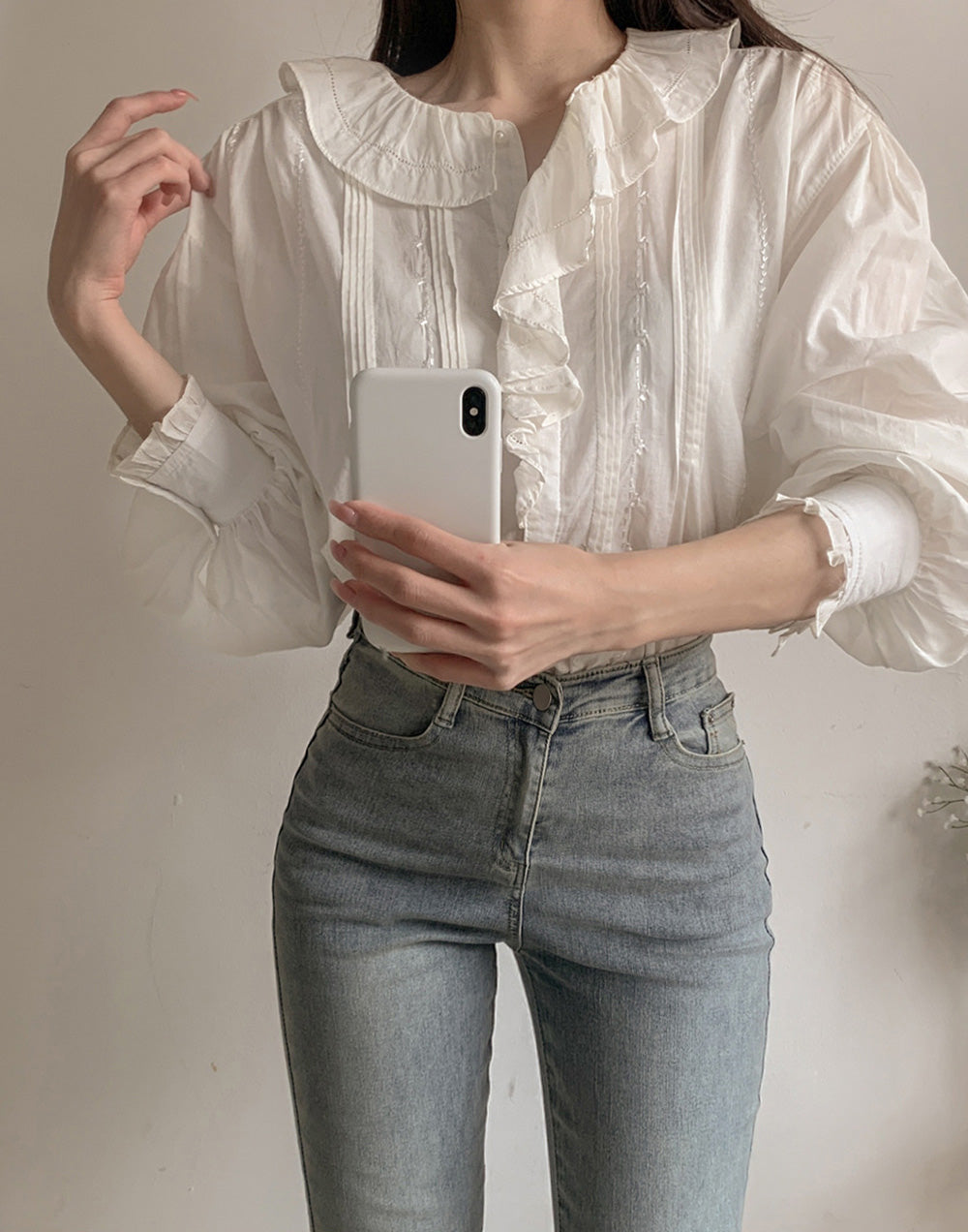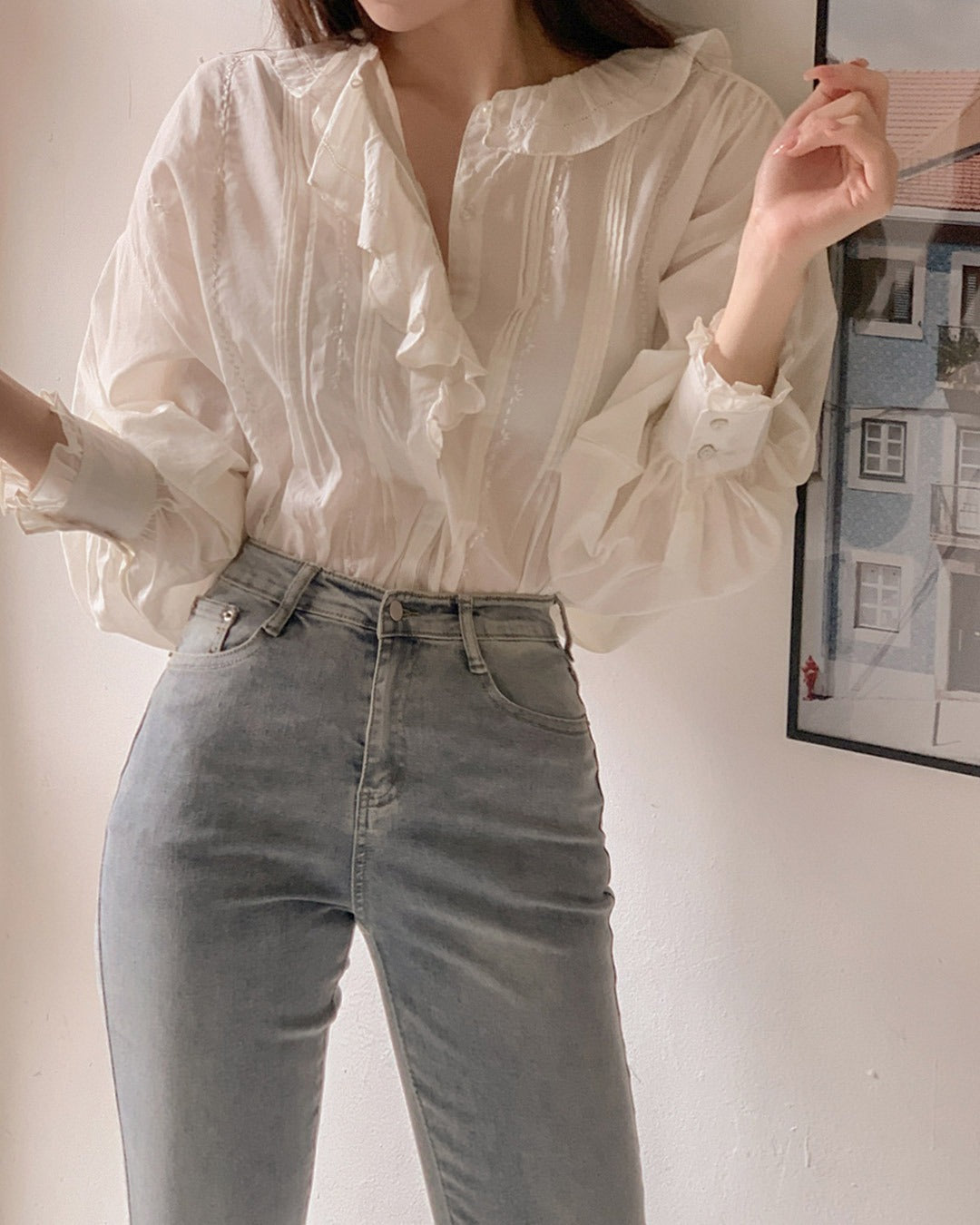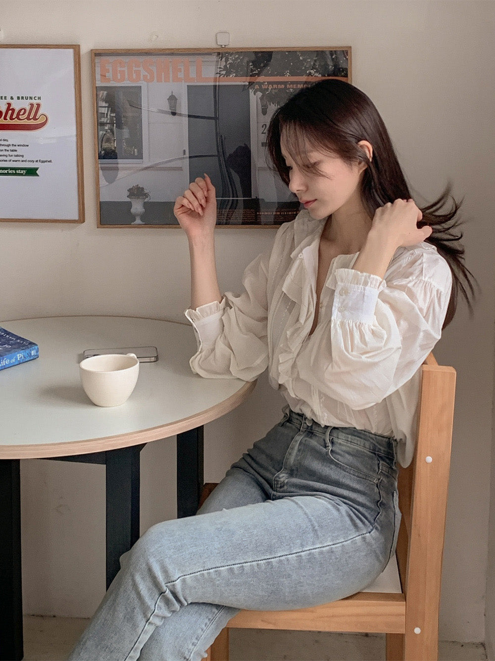 【F032273】韓國春夏浪漫精緻泡泡袖雪紡襯衫250311