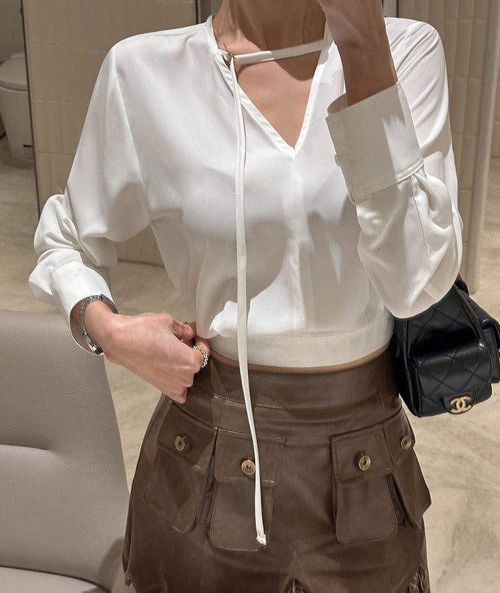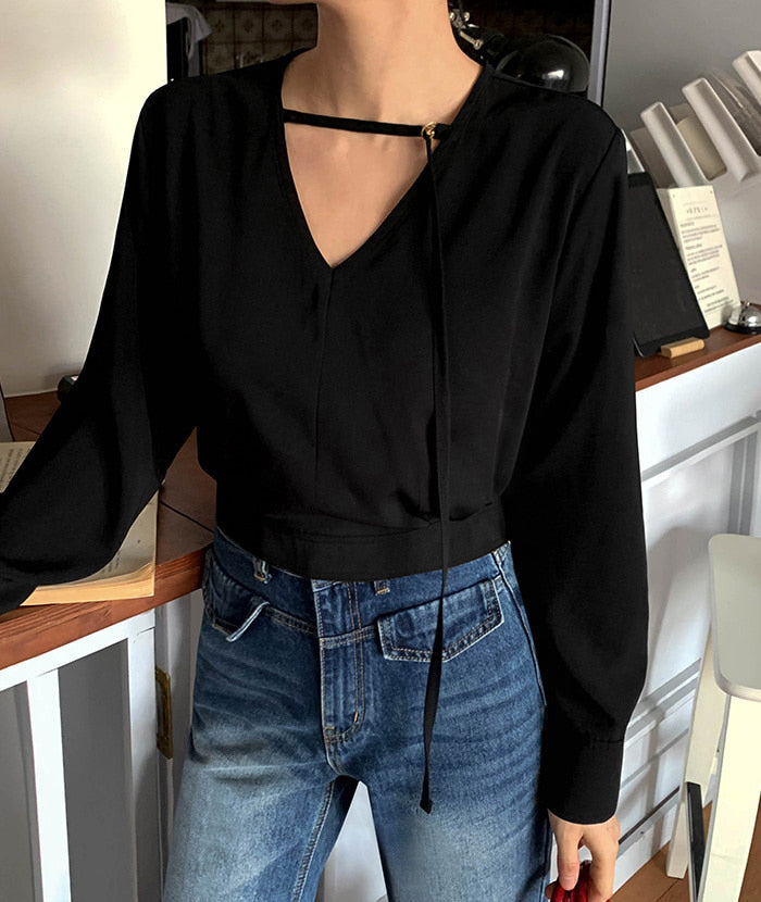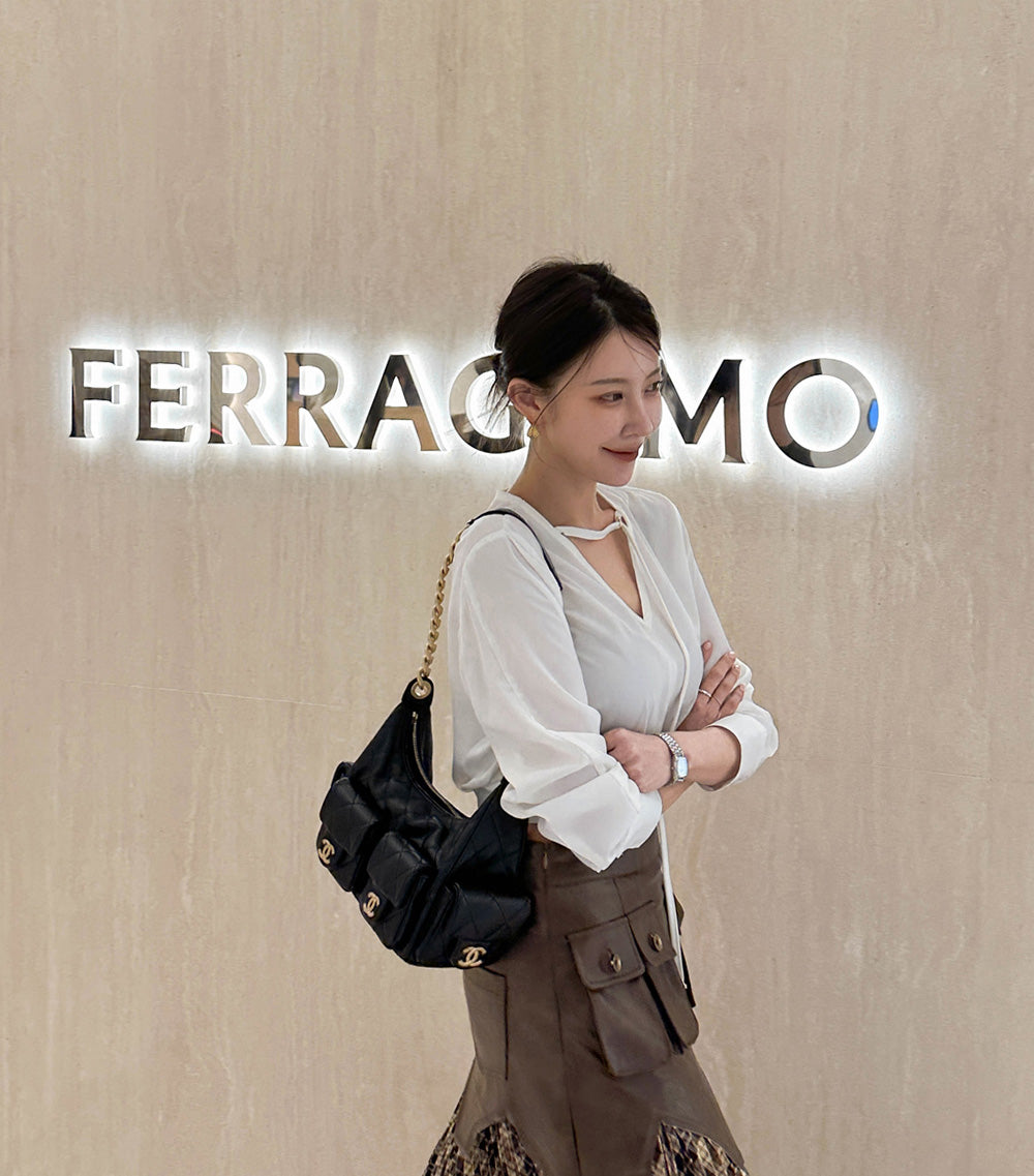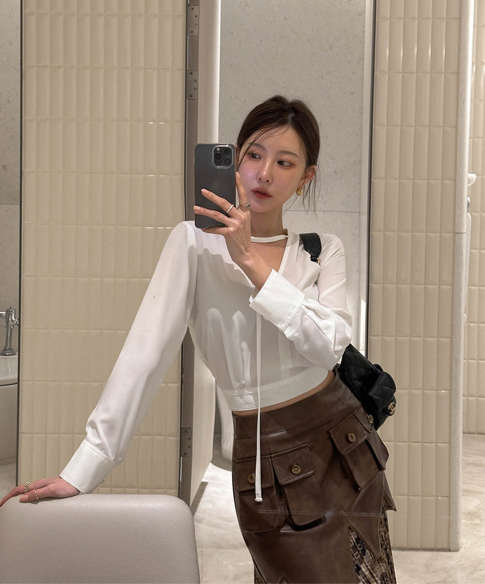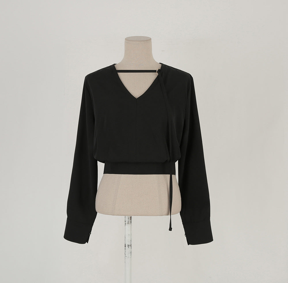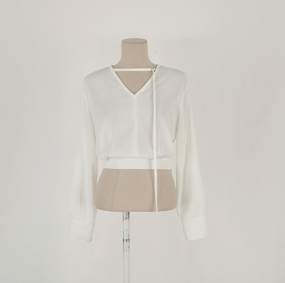 【F032274】韓國設計款輕熟時尚收腰雪紡襯衫250311