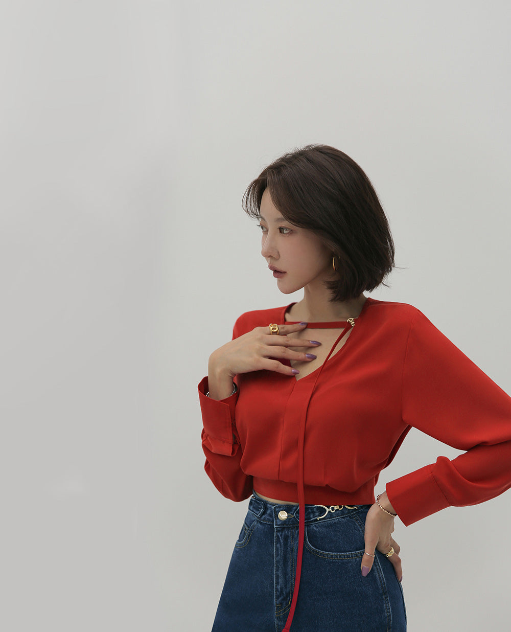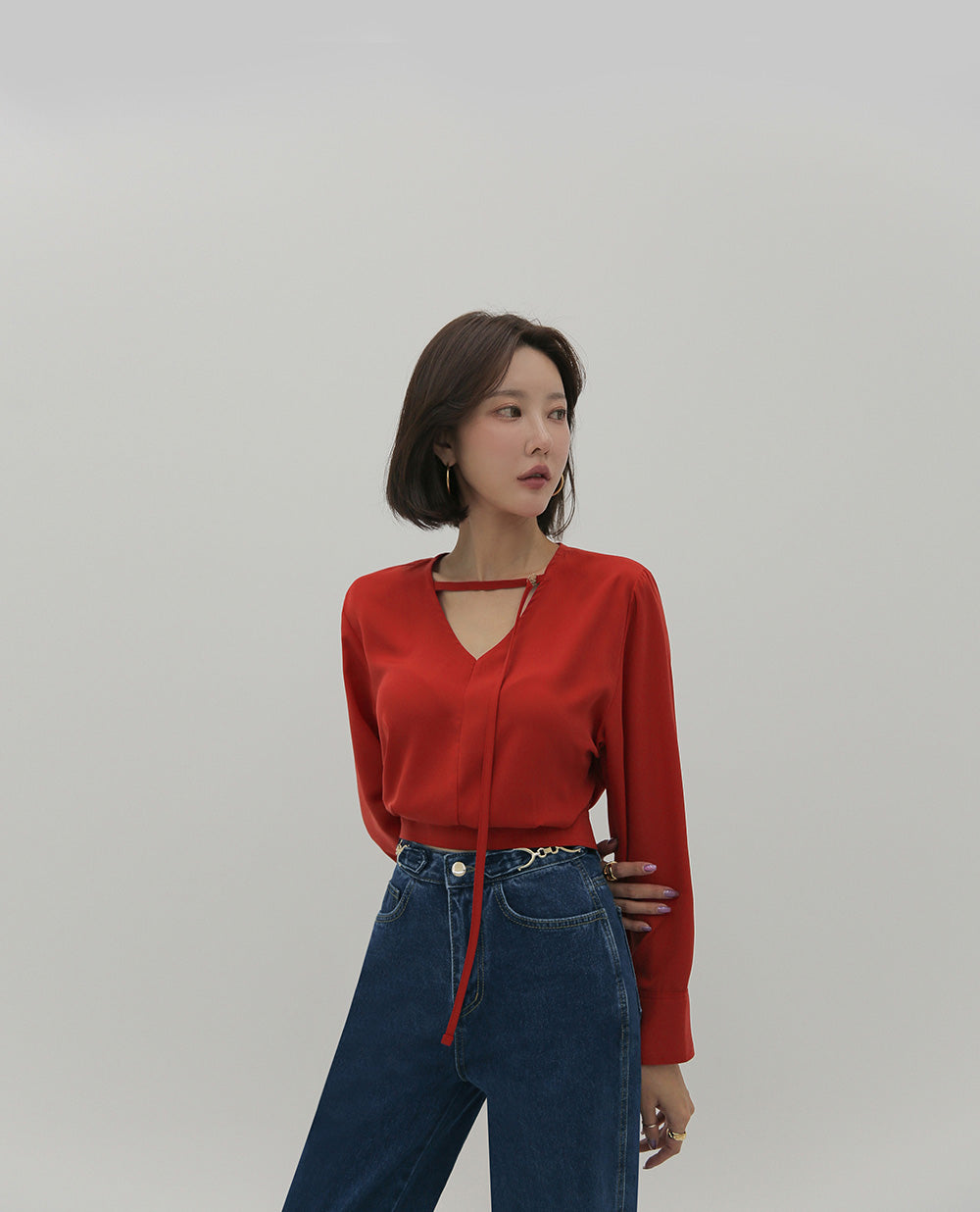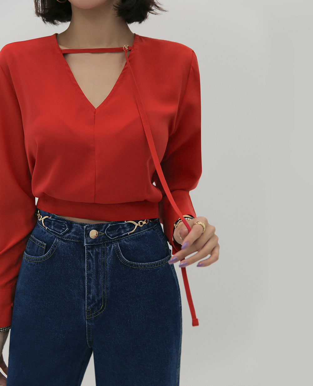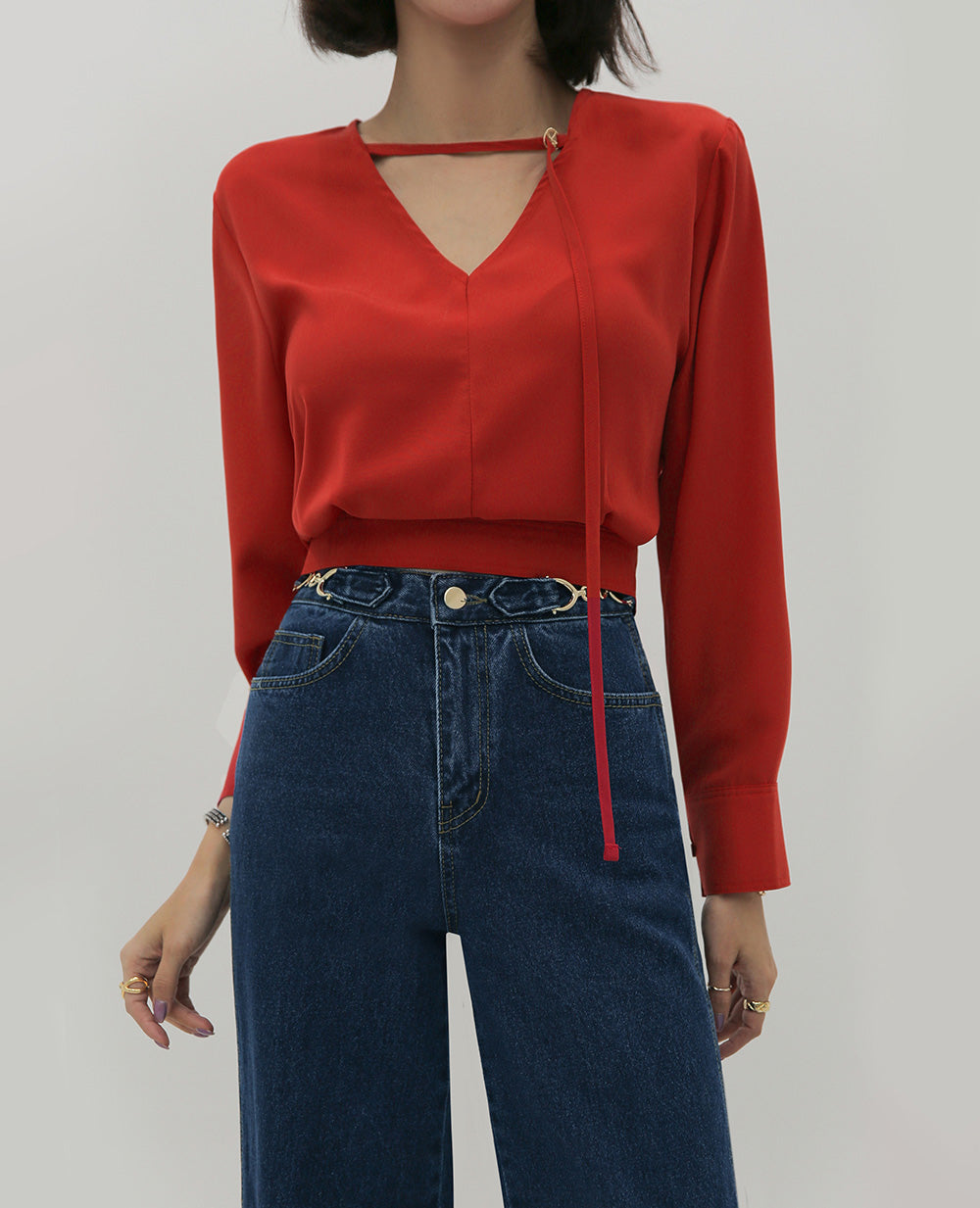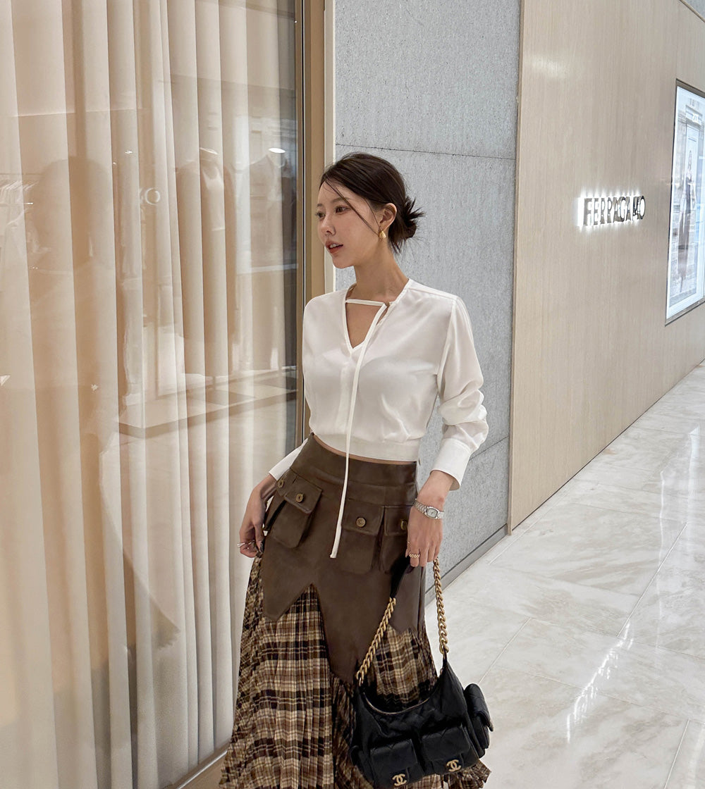 【F032274】韓國設計款輕熟時尚收腰雪紡襯衫250311
