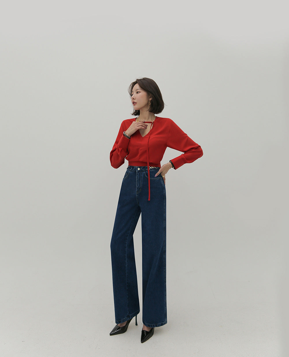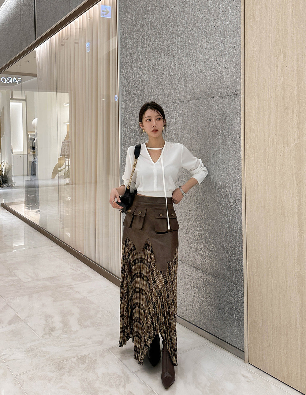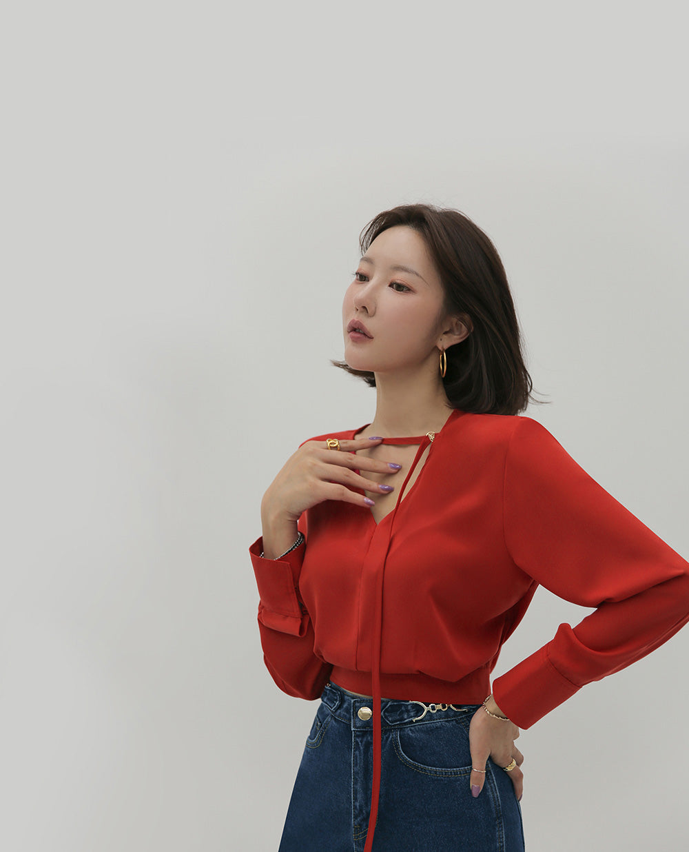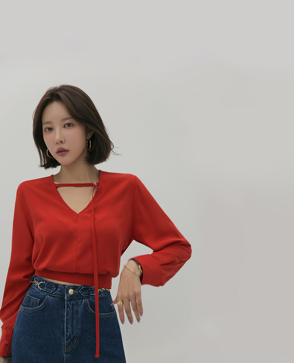 【F032274】韓國設計款輕熟時尚收腰雪紡襯衫250311