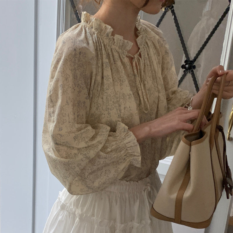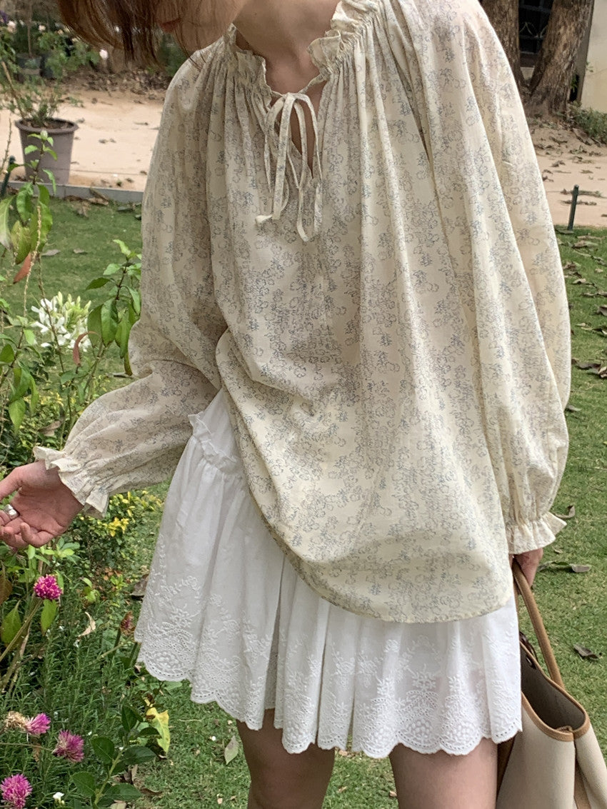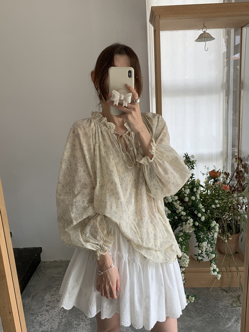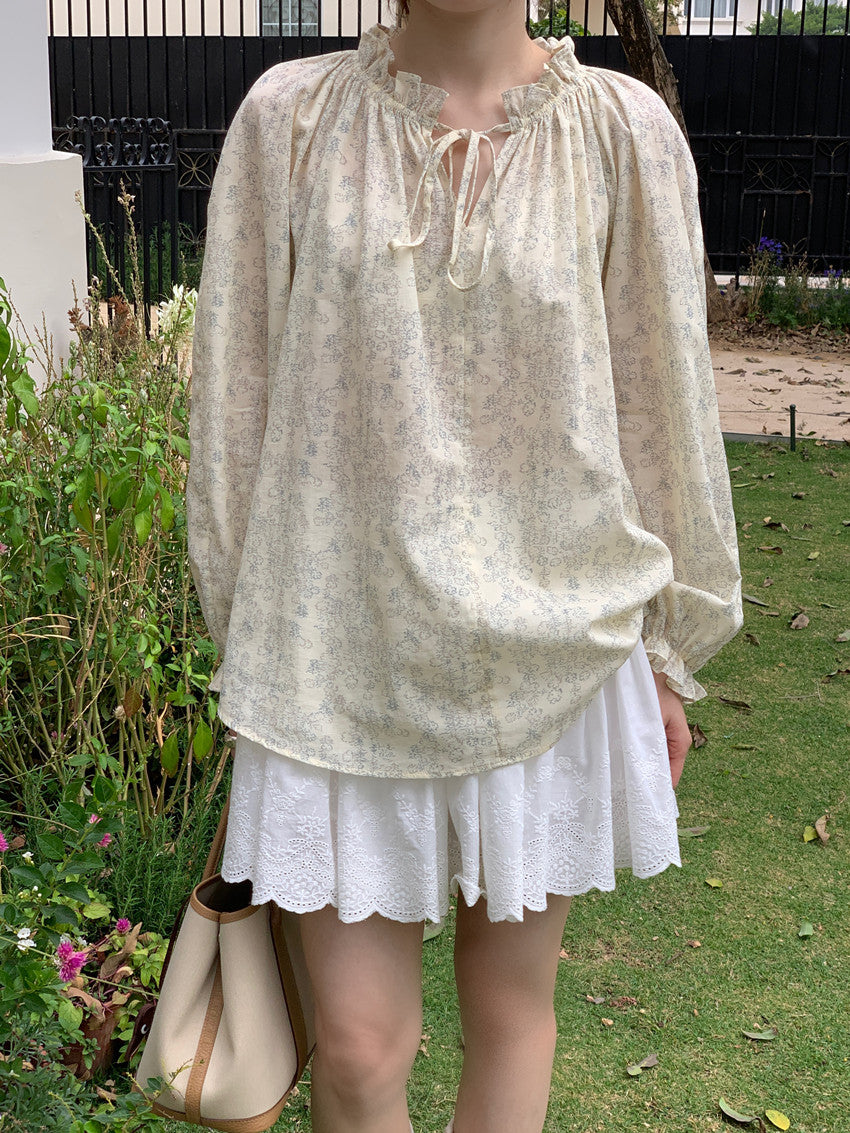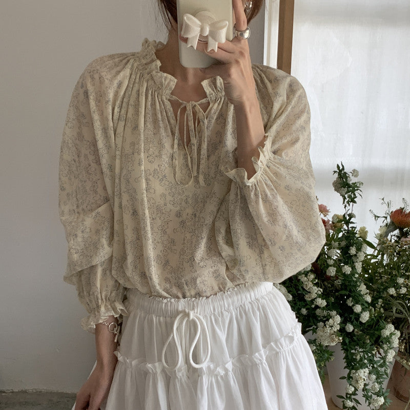 【F032281】實拍法式浪漫寬鬆繫帶襯衫250311