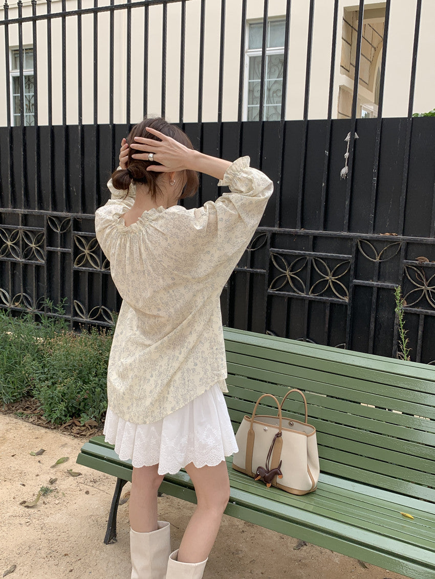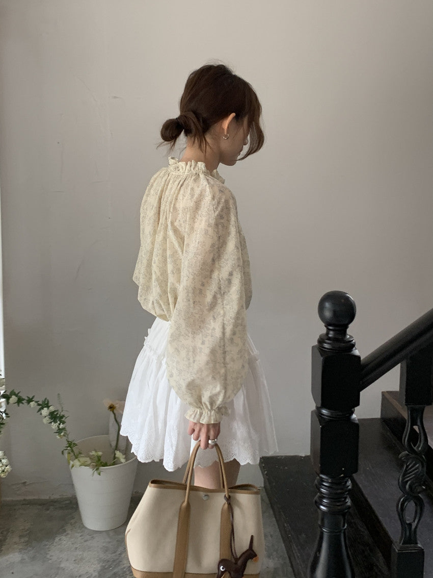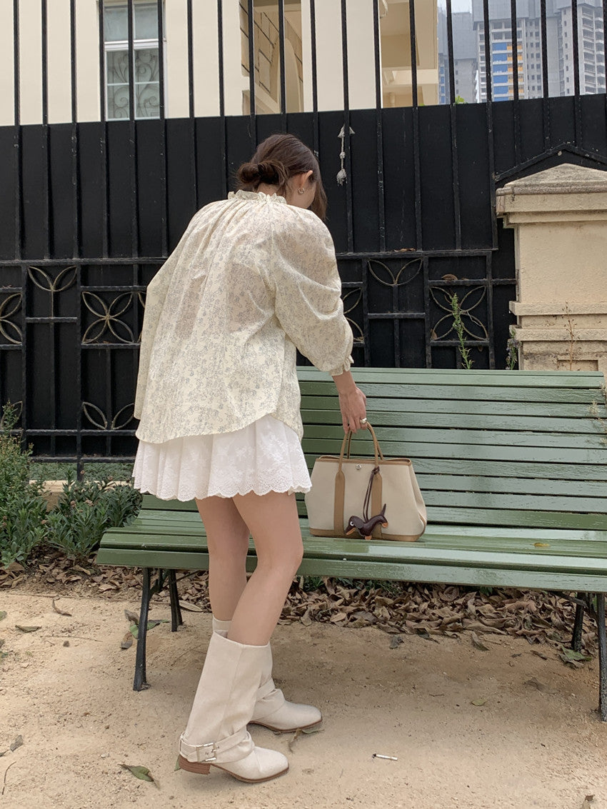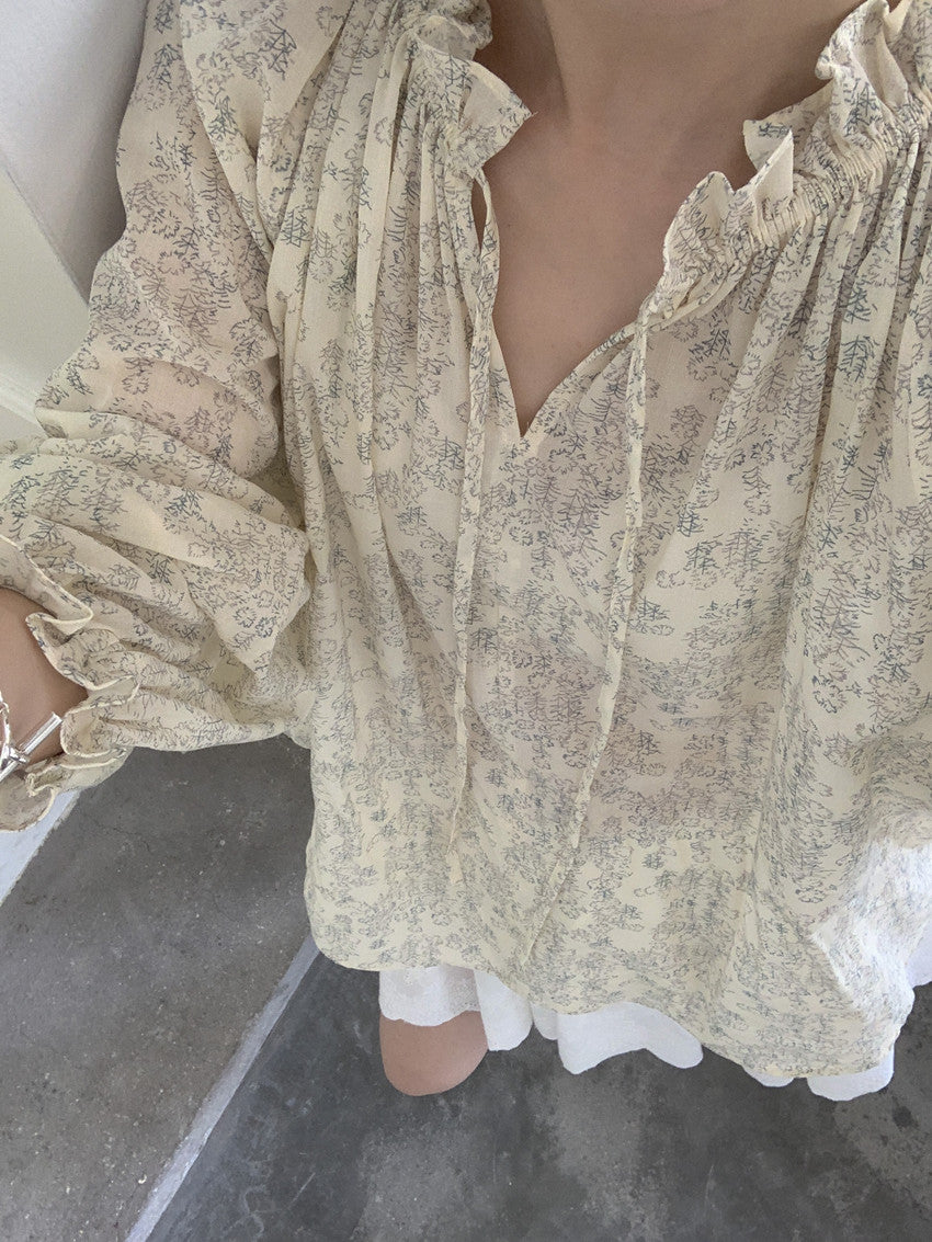 【F032281】實拍法式浪漫寬鬆繫帶襯衫250311
