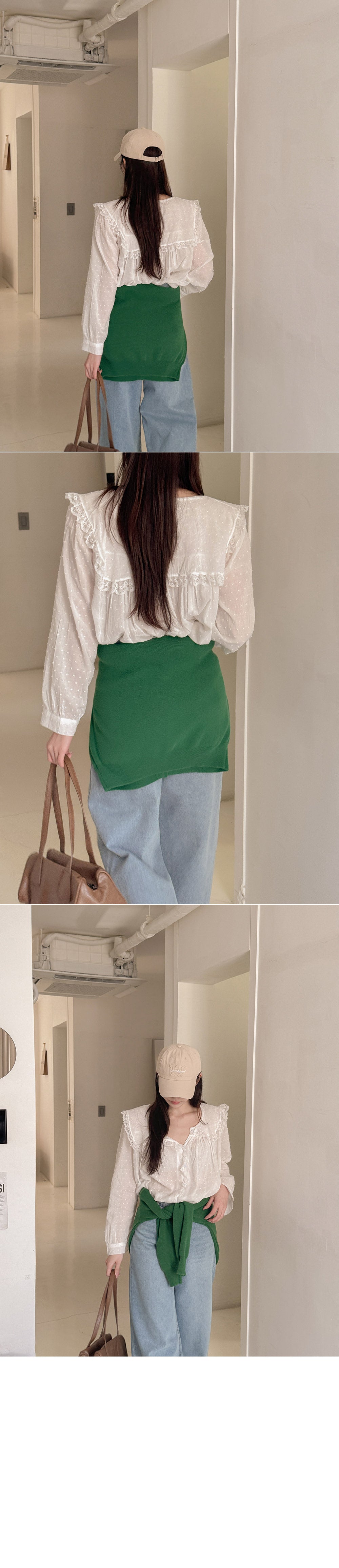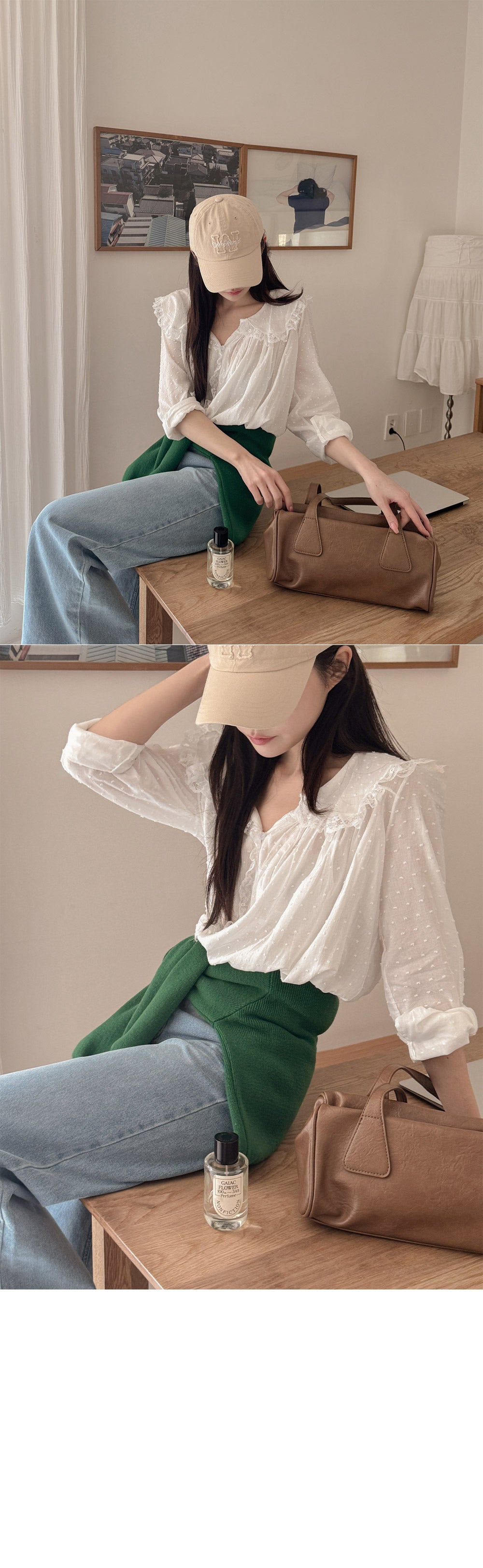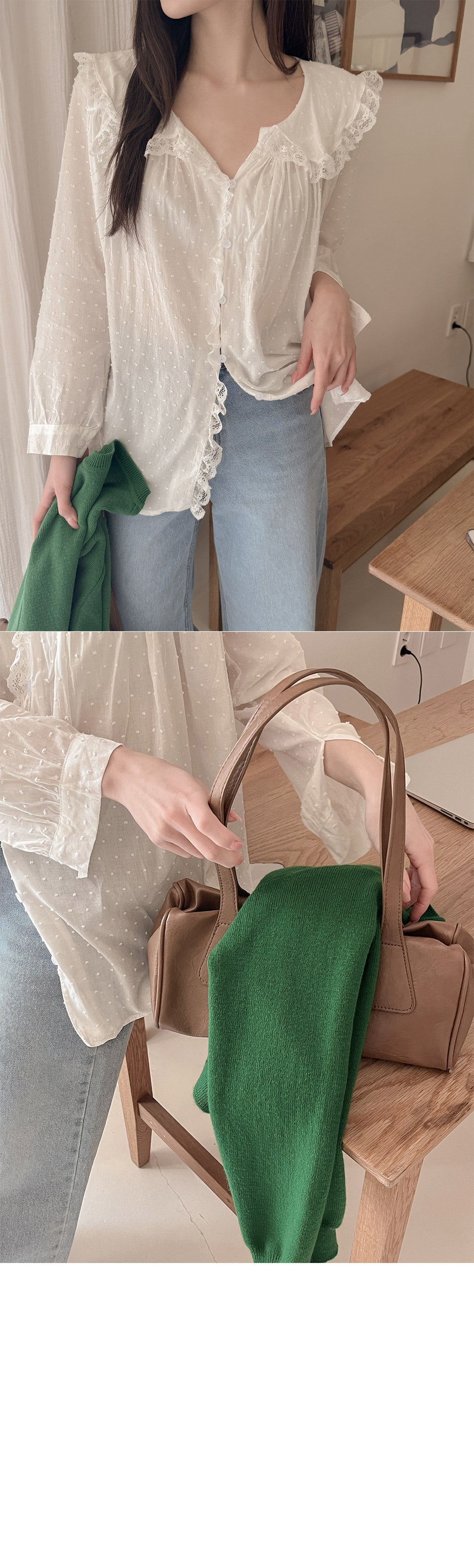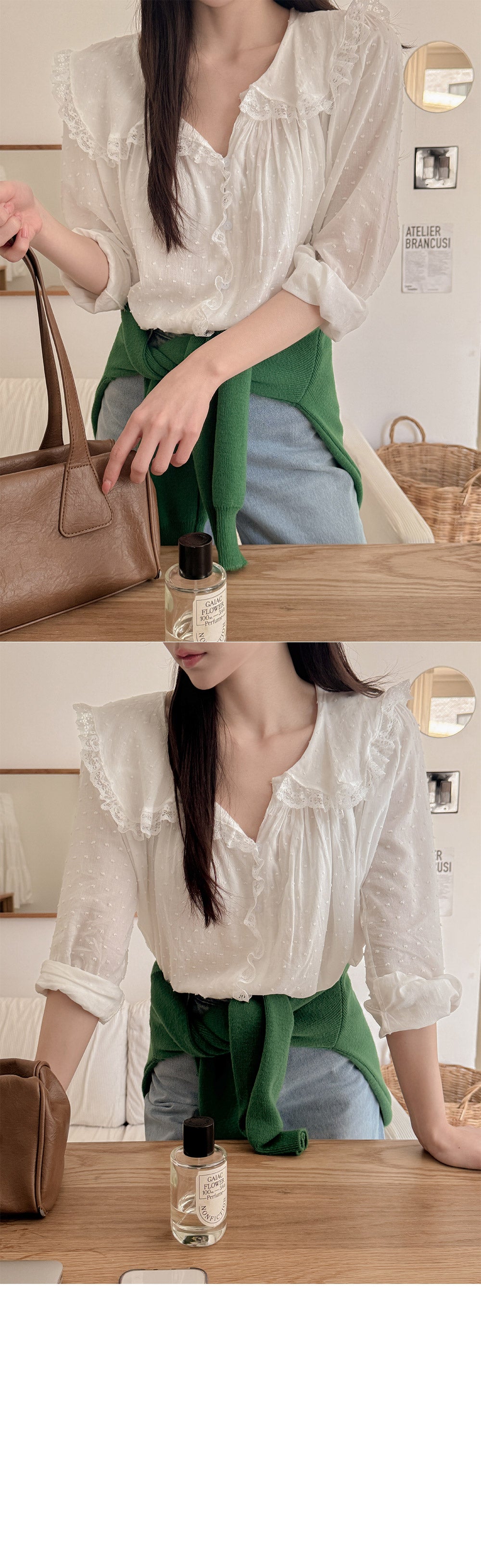 【F032284】韓國温柔浪漫蕾絲點點長袖雪紡衫250311