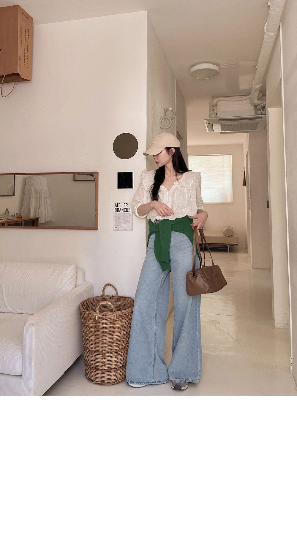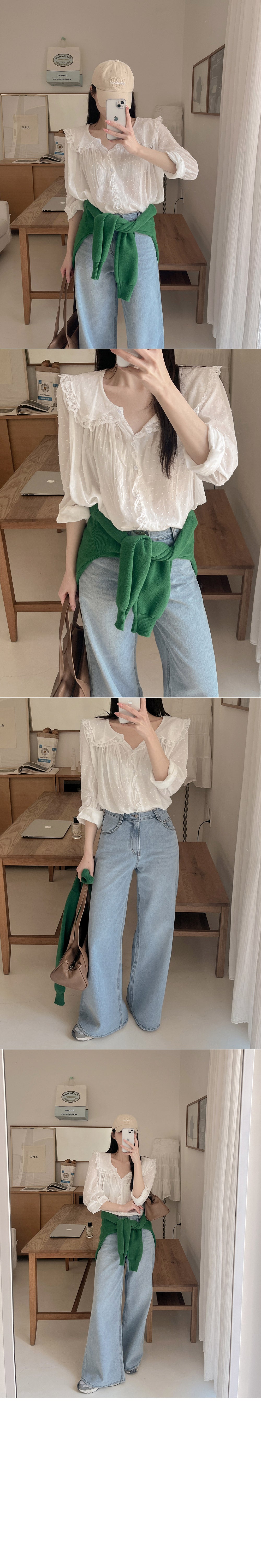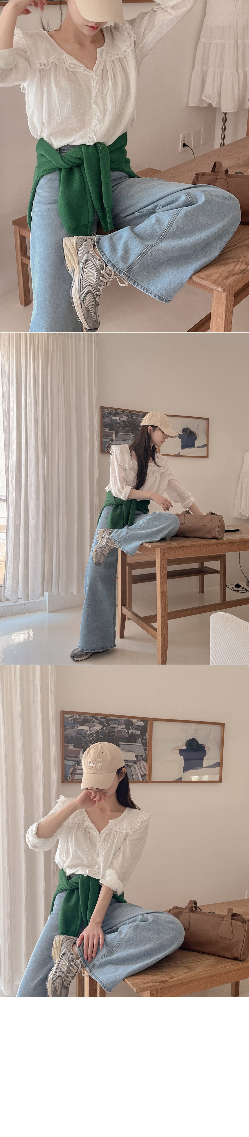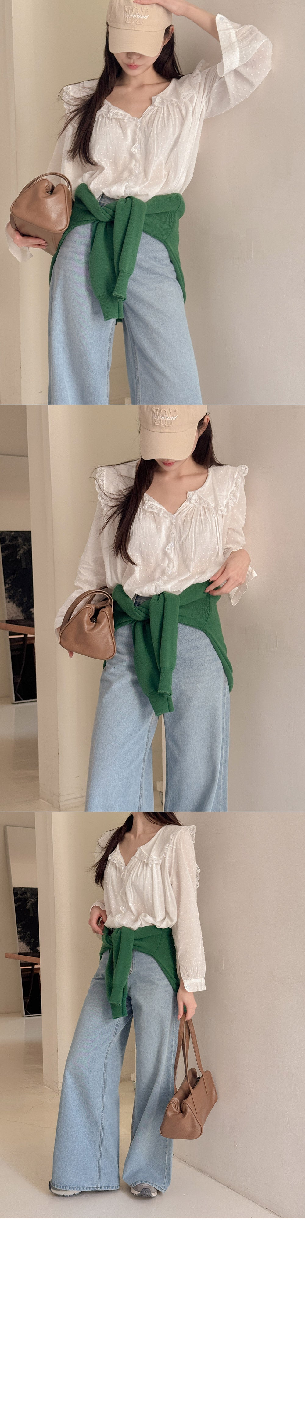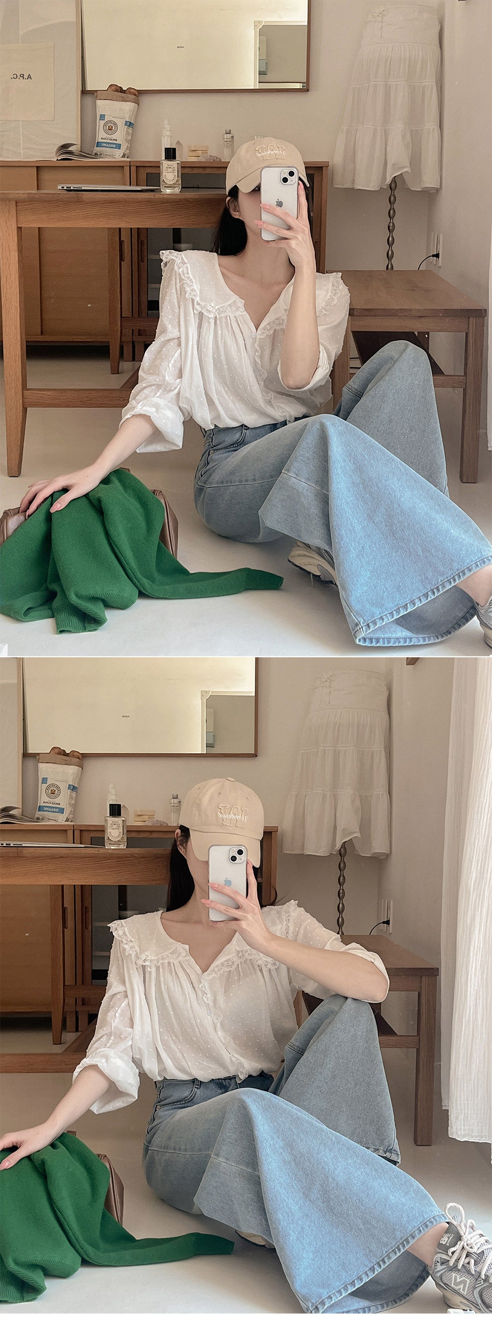 【F032284】韓國温柔浪漫蕾絲點點長袖雪紡衫250311