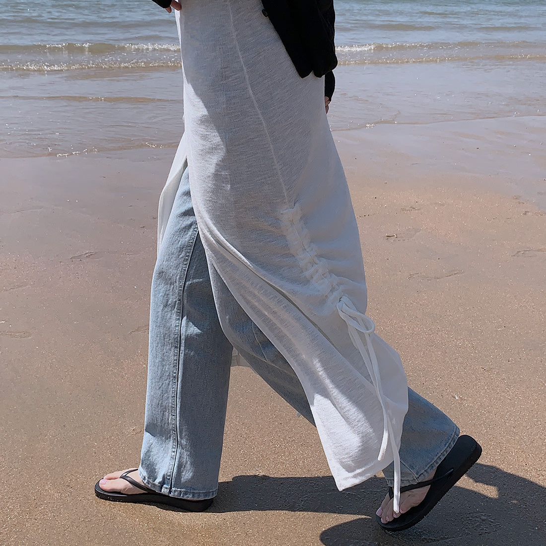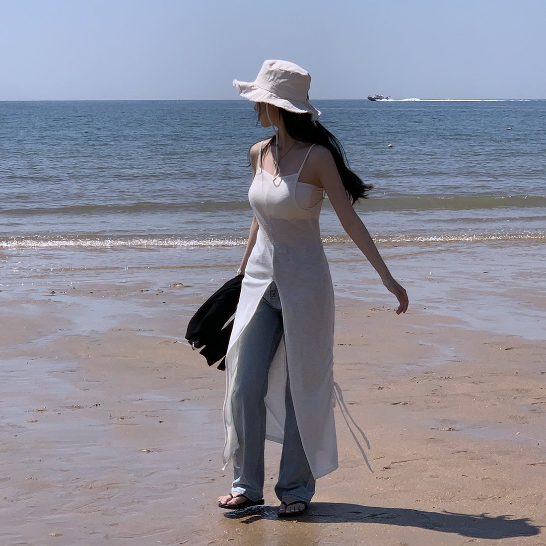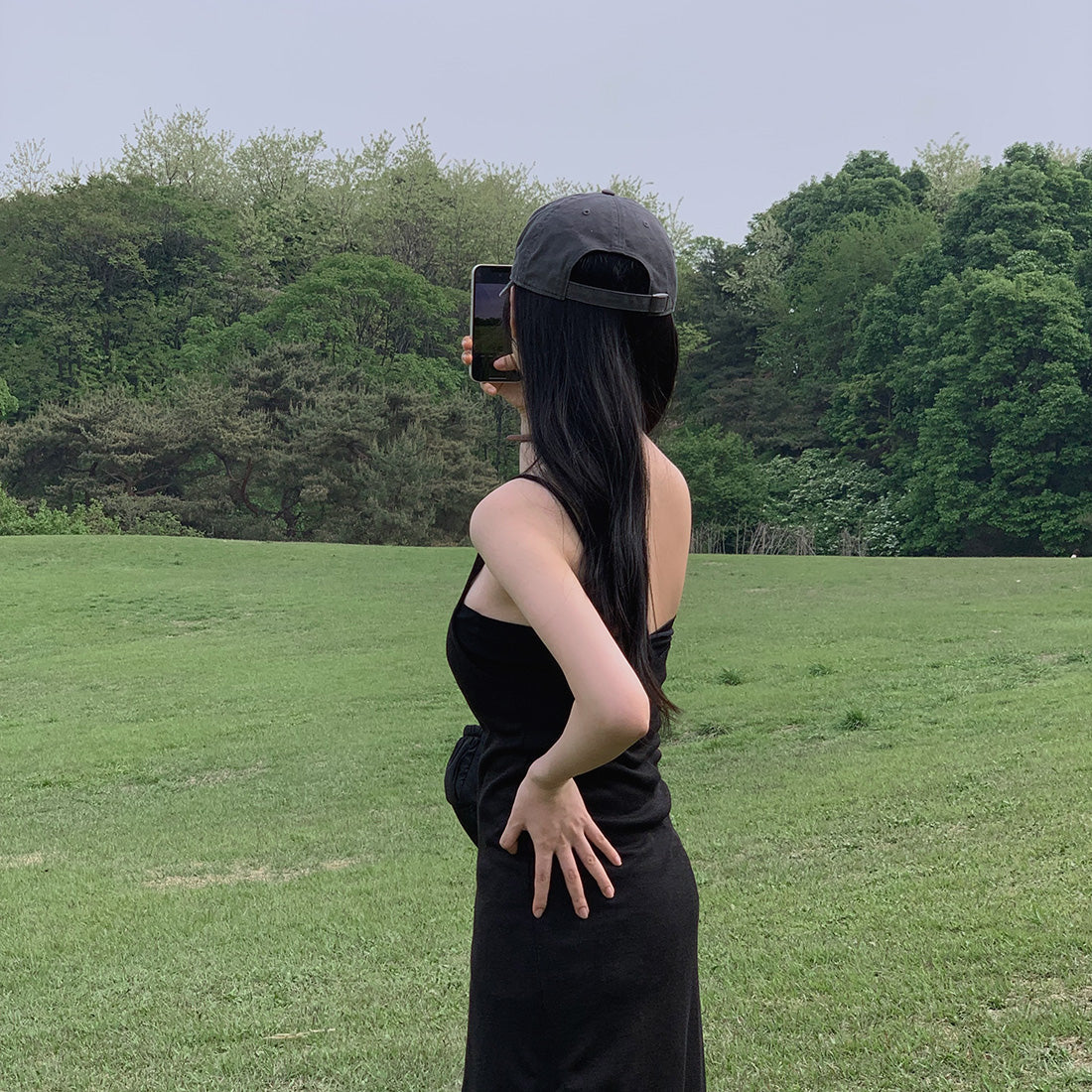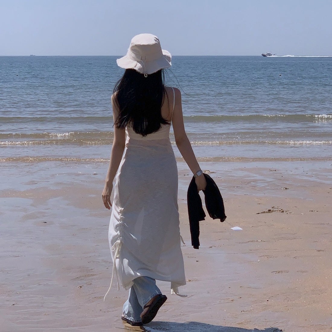【F032288】韓國ins法式氣質開叉設計針織抽繩長吊帶洋裝250311