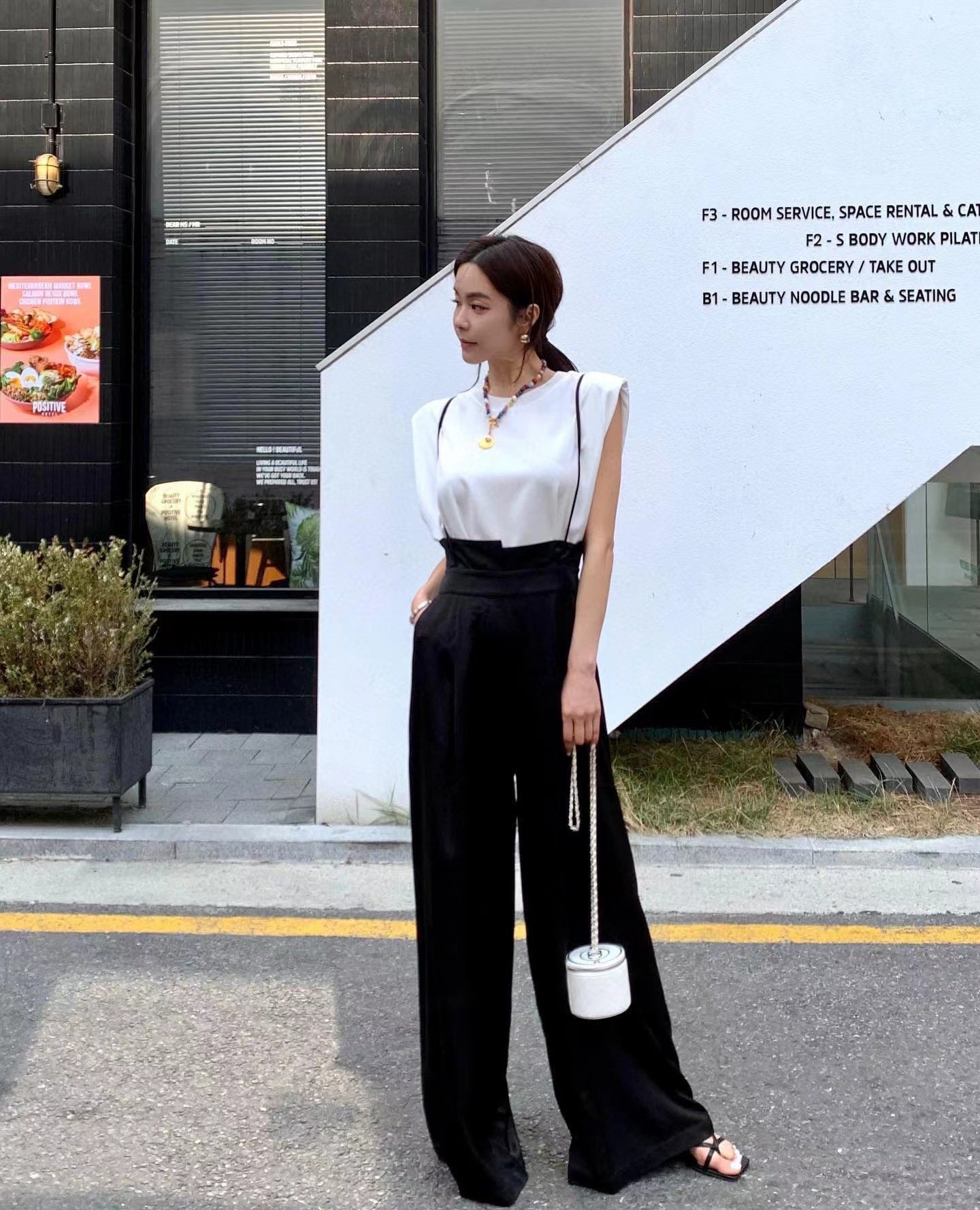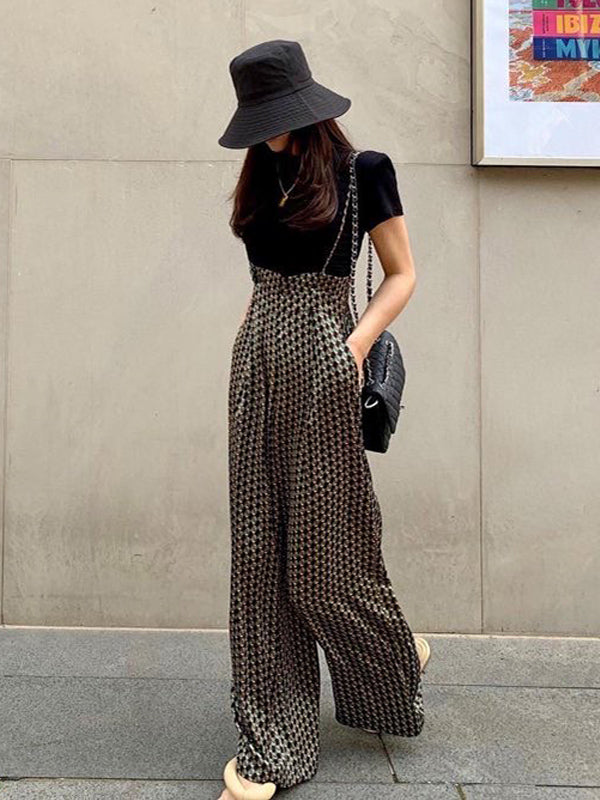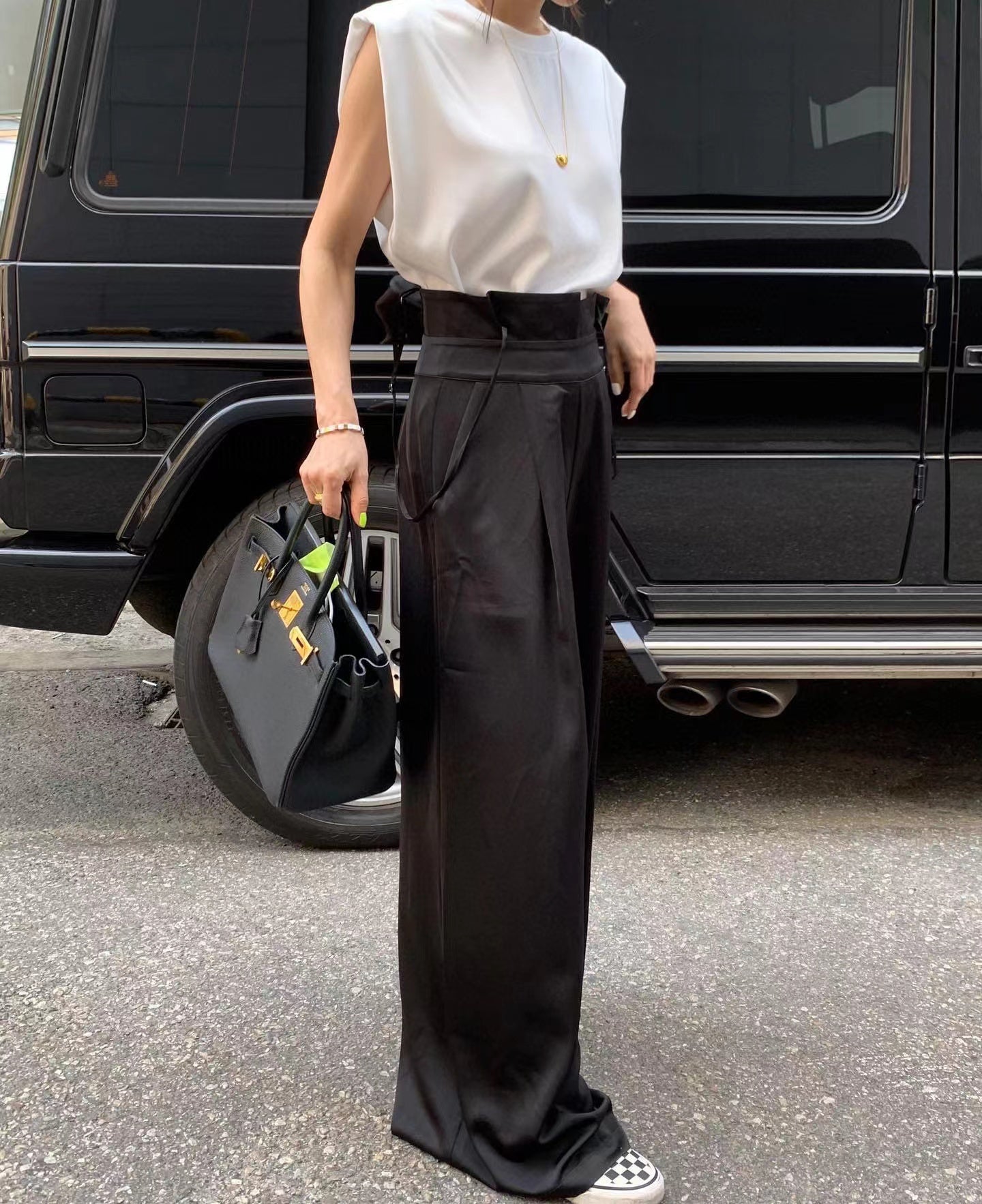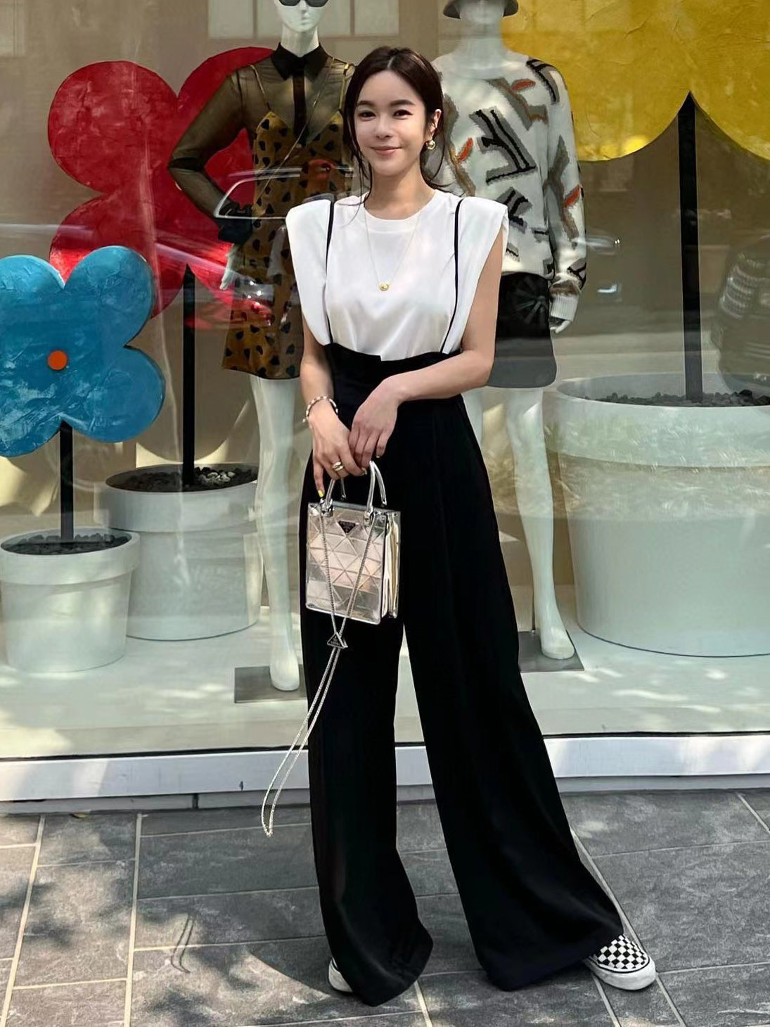 【F034258】夏天高腰垂感印花吊帶闊腿褲250325