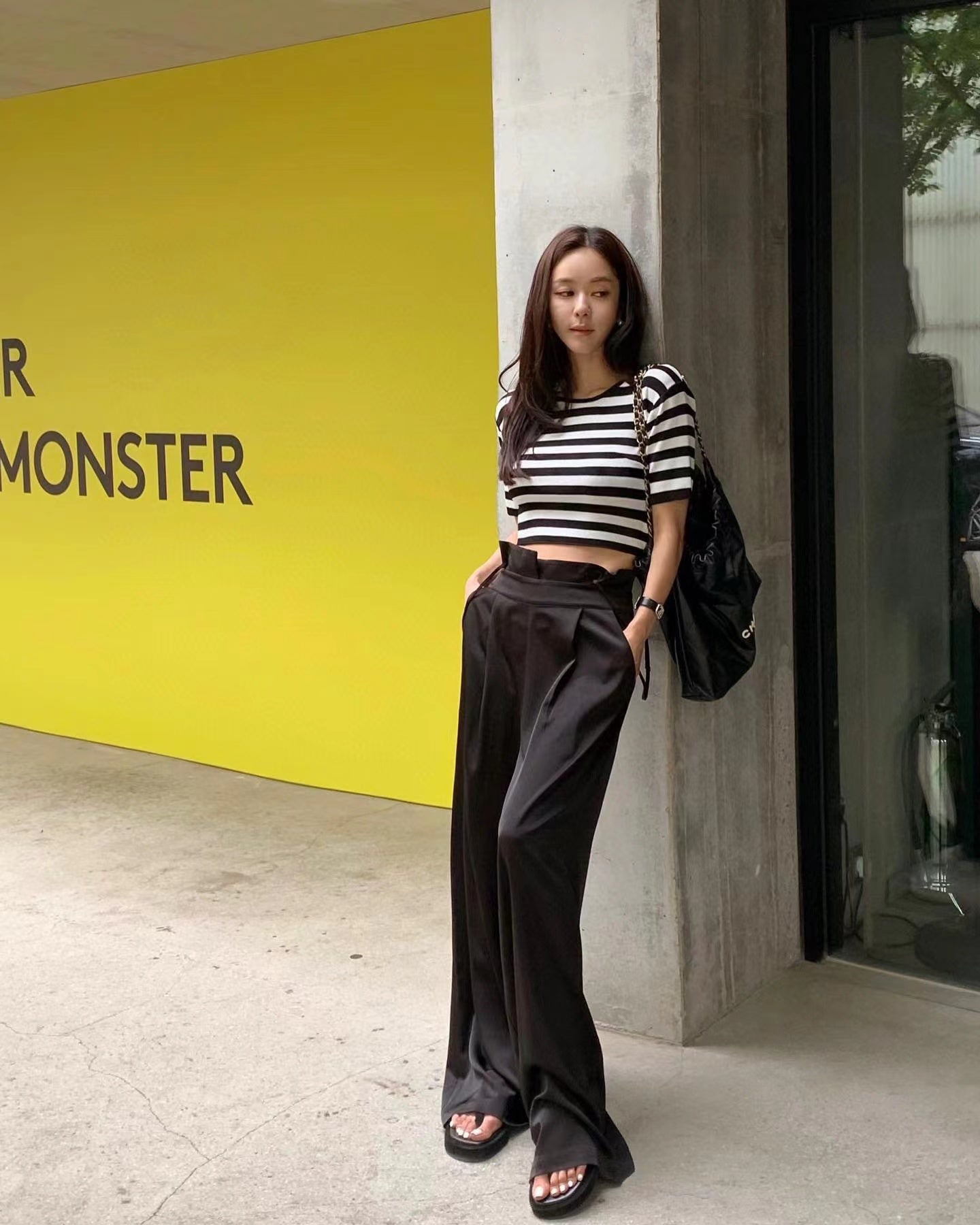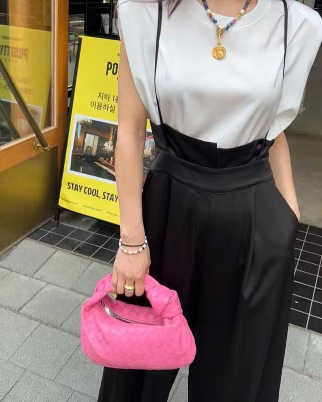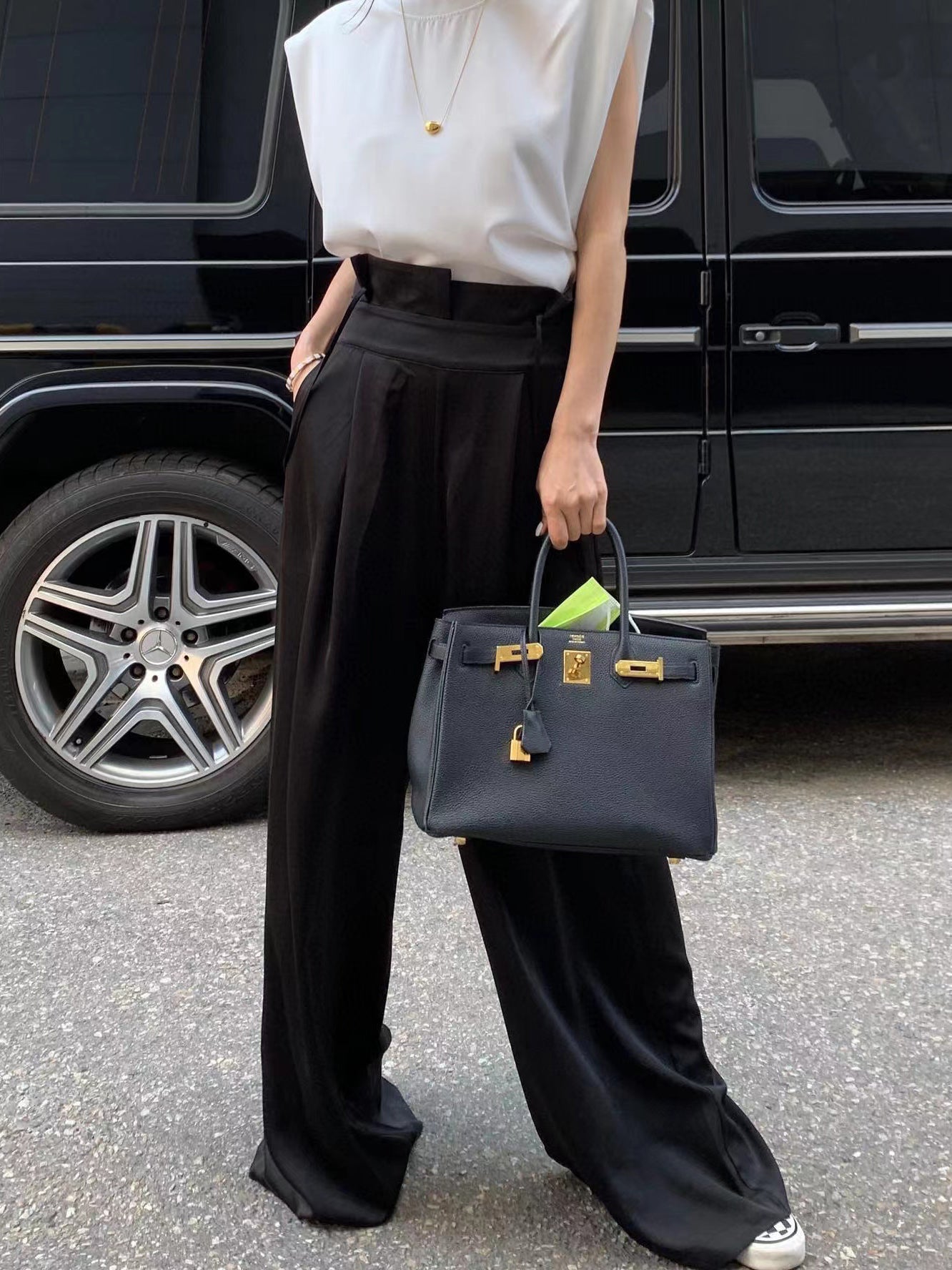 【F034258】夏天高腰垂感印花吊帶闊腿褲250325
