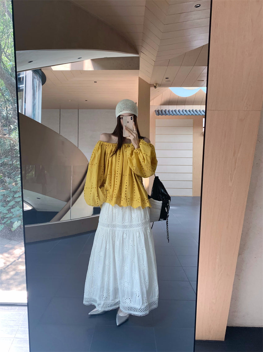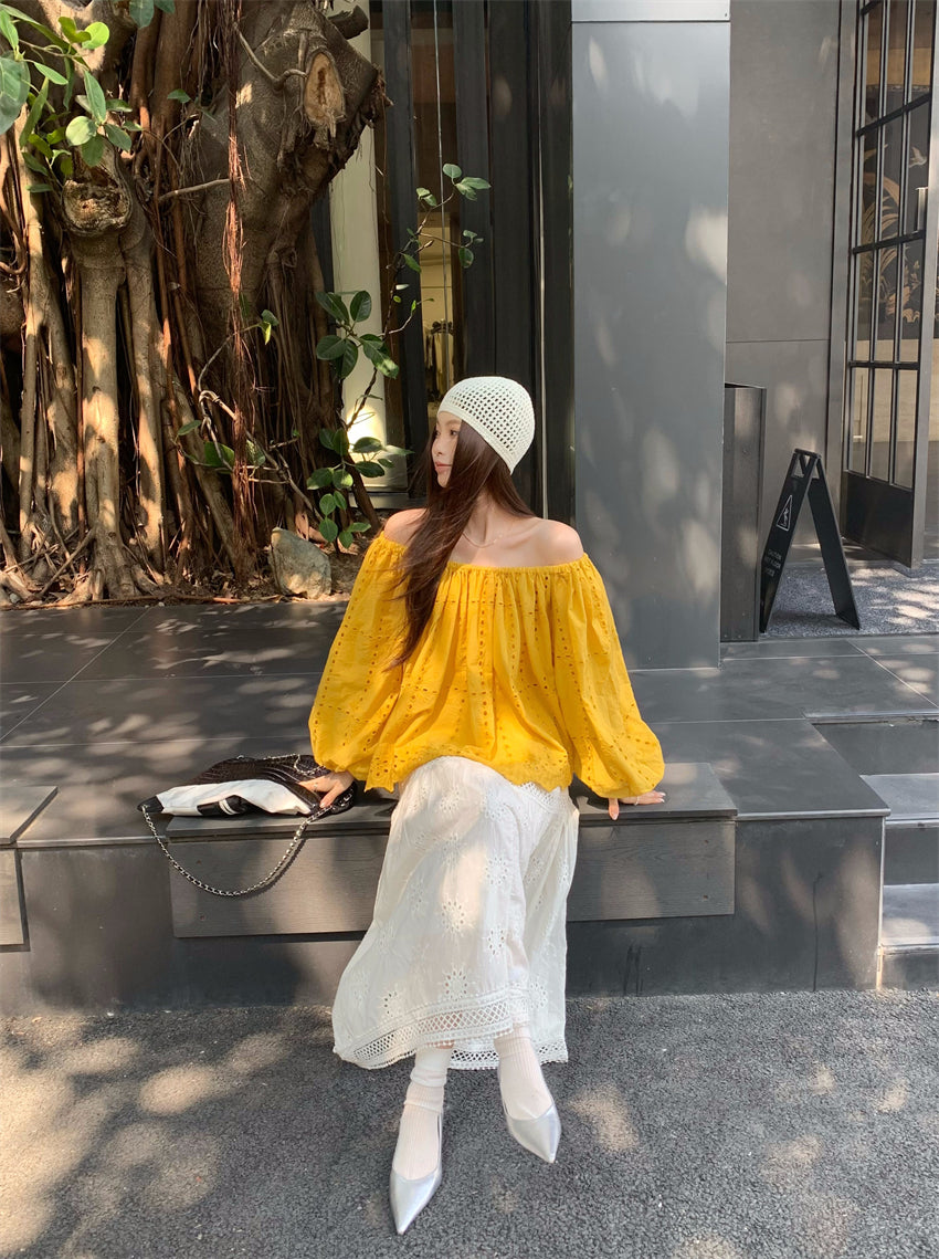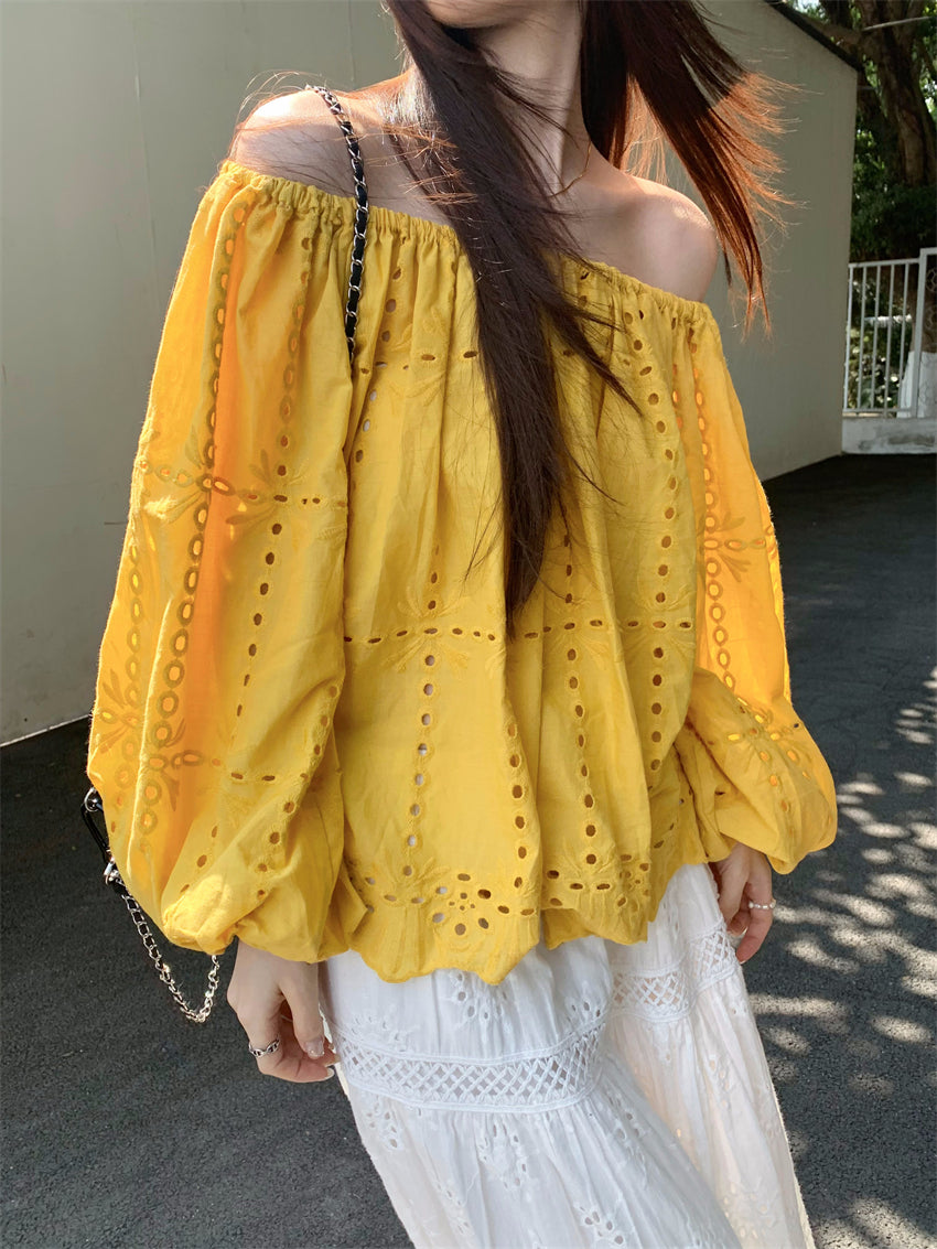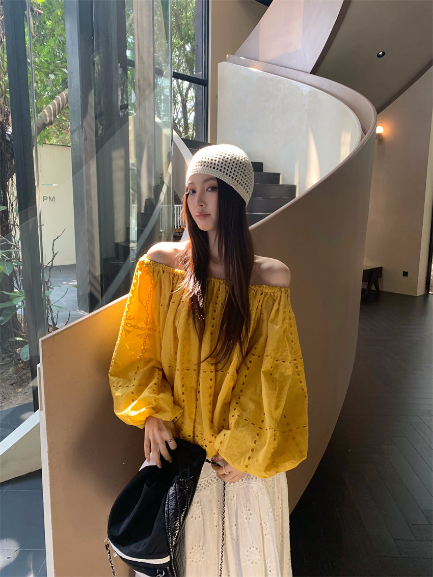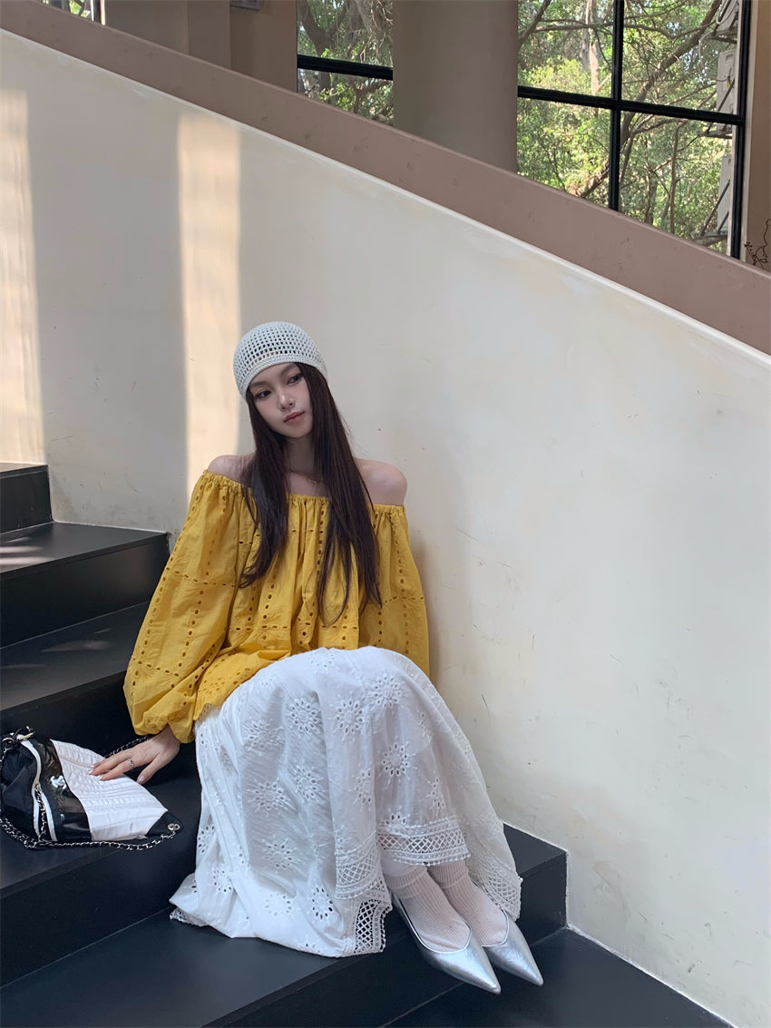 【F034263】實拍韓國原單蕾絲一字肩上衣250325