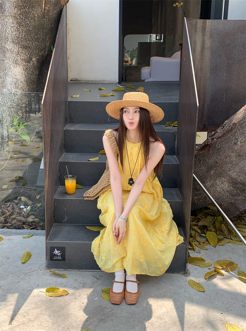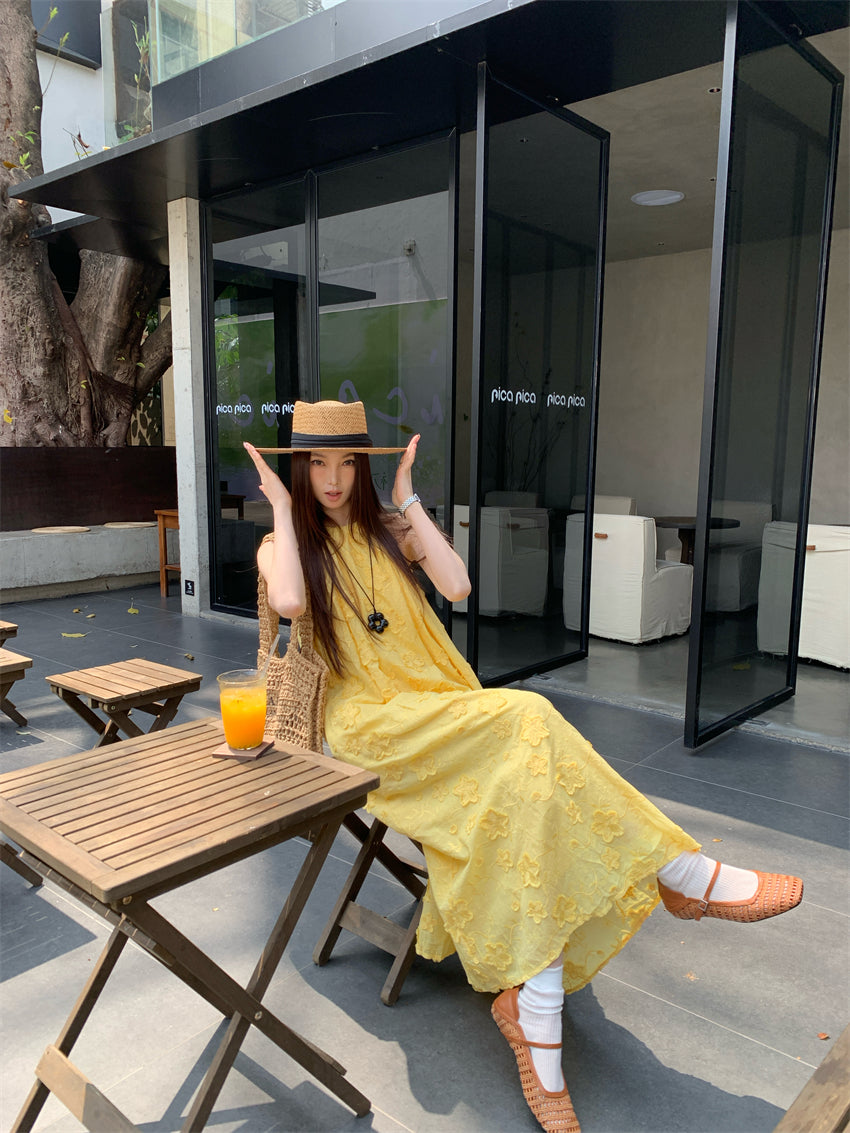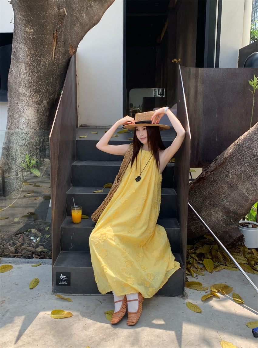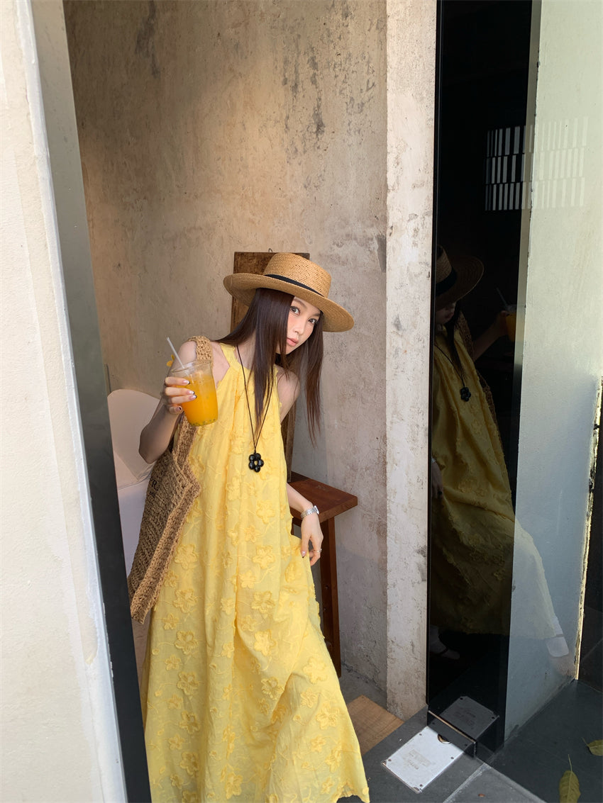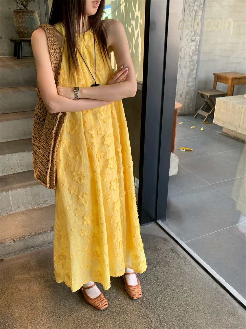 【F034273】實拍高單法式浪漫立體蕾絲掛脖洋裝250325