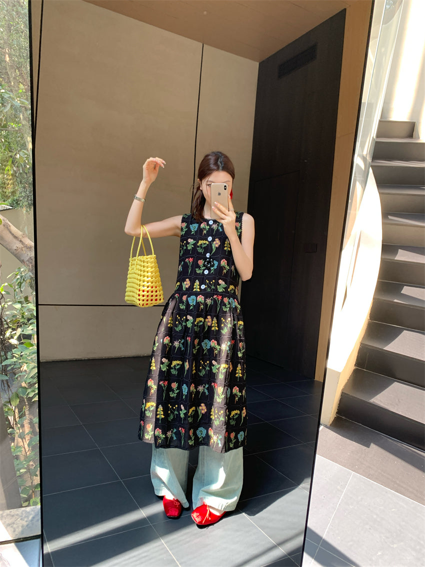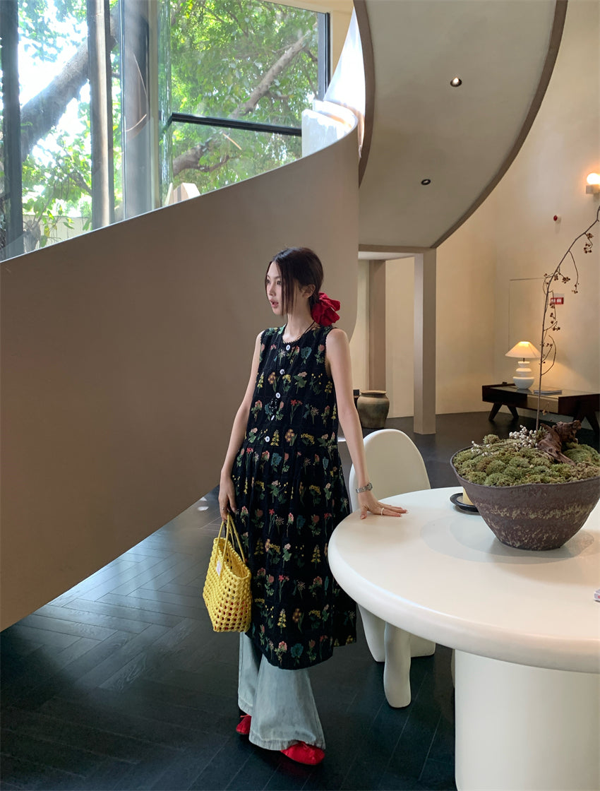 【F034274】實拍高單日系復古繡花背心裙洋裝250325