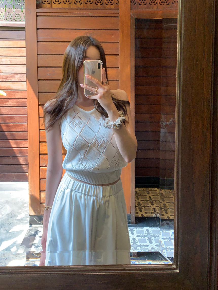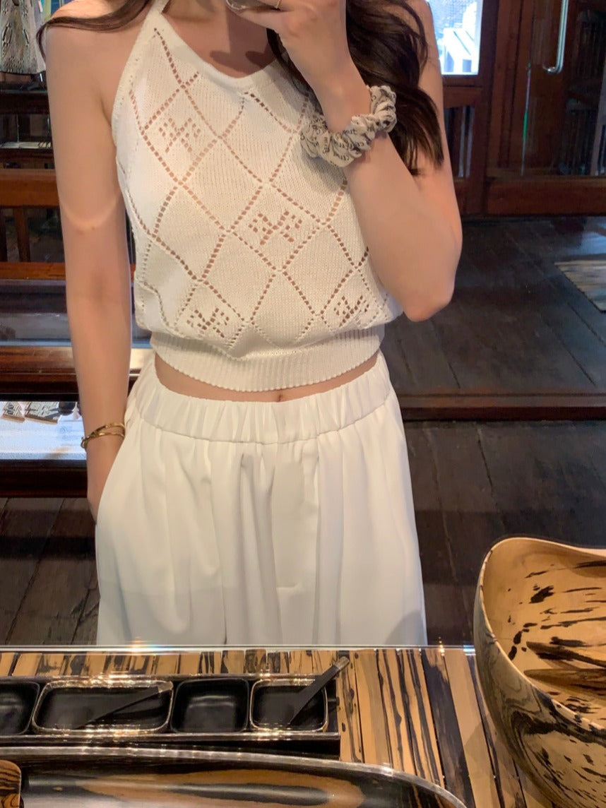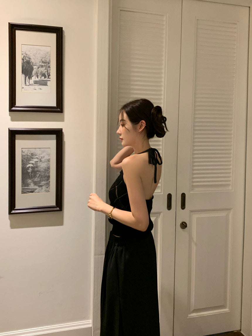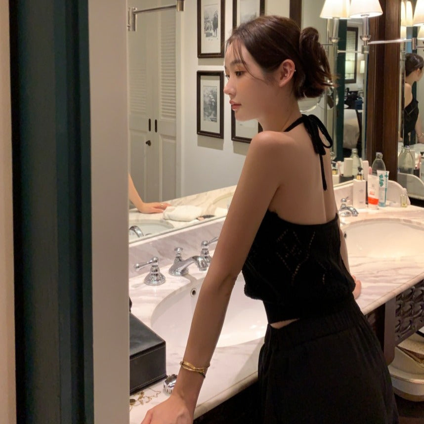 【F034279】韓國夏季法式簡約掛脖露背針織衫250325