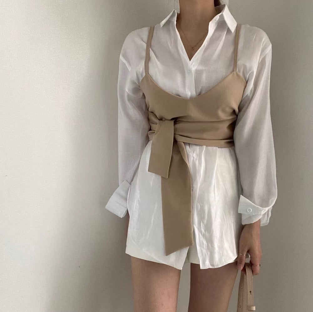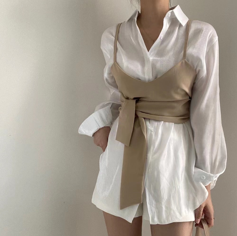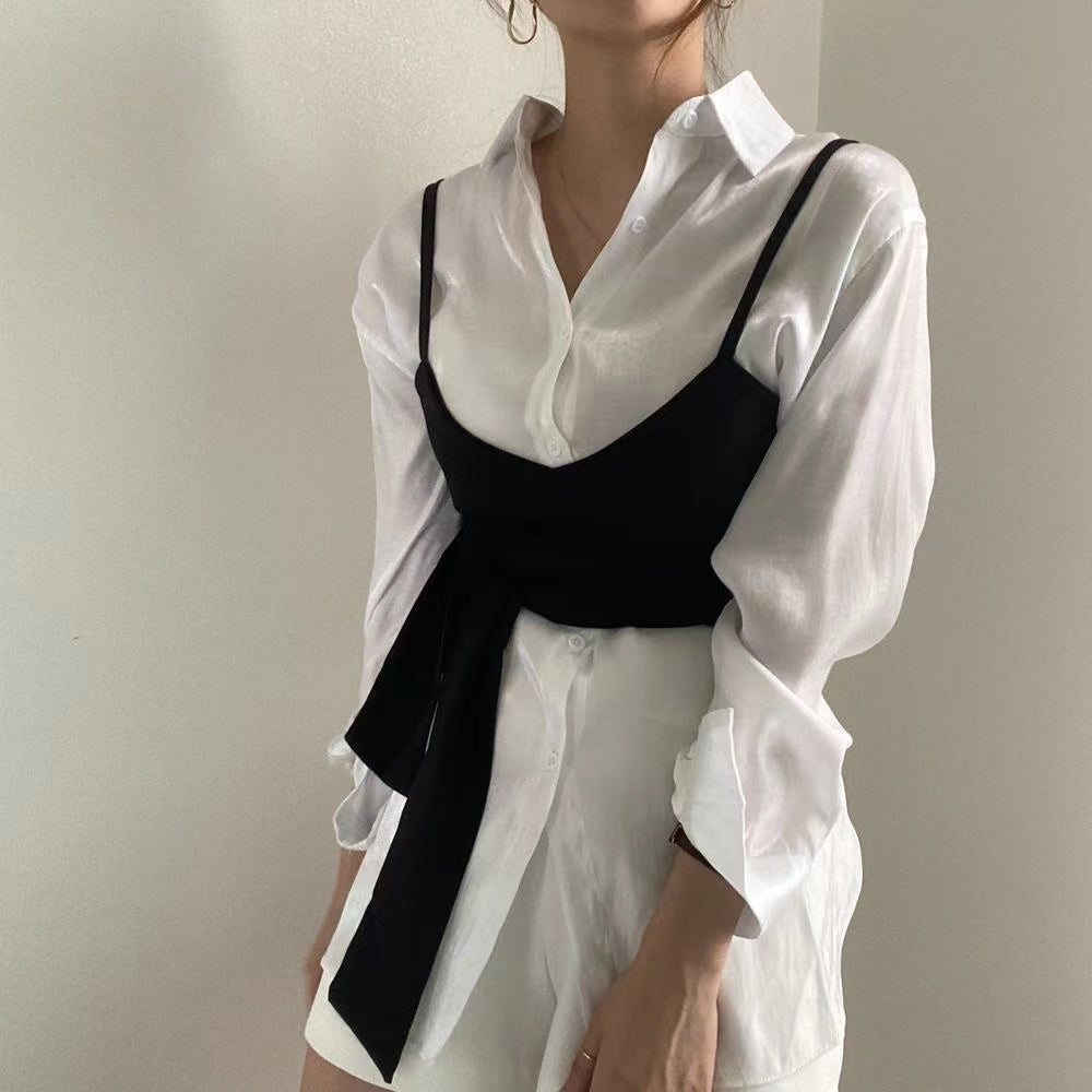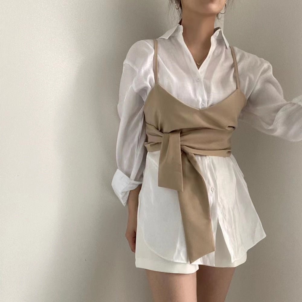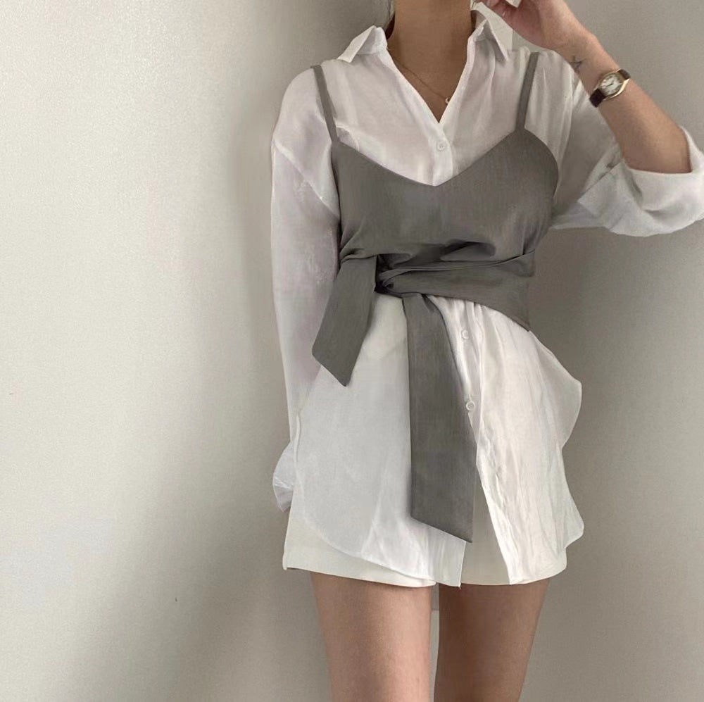 【F034285】春夏法式吊帶衫+簡約寬鬆長袖襯衫250325