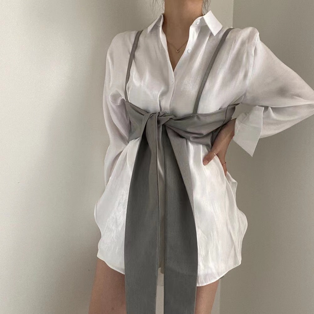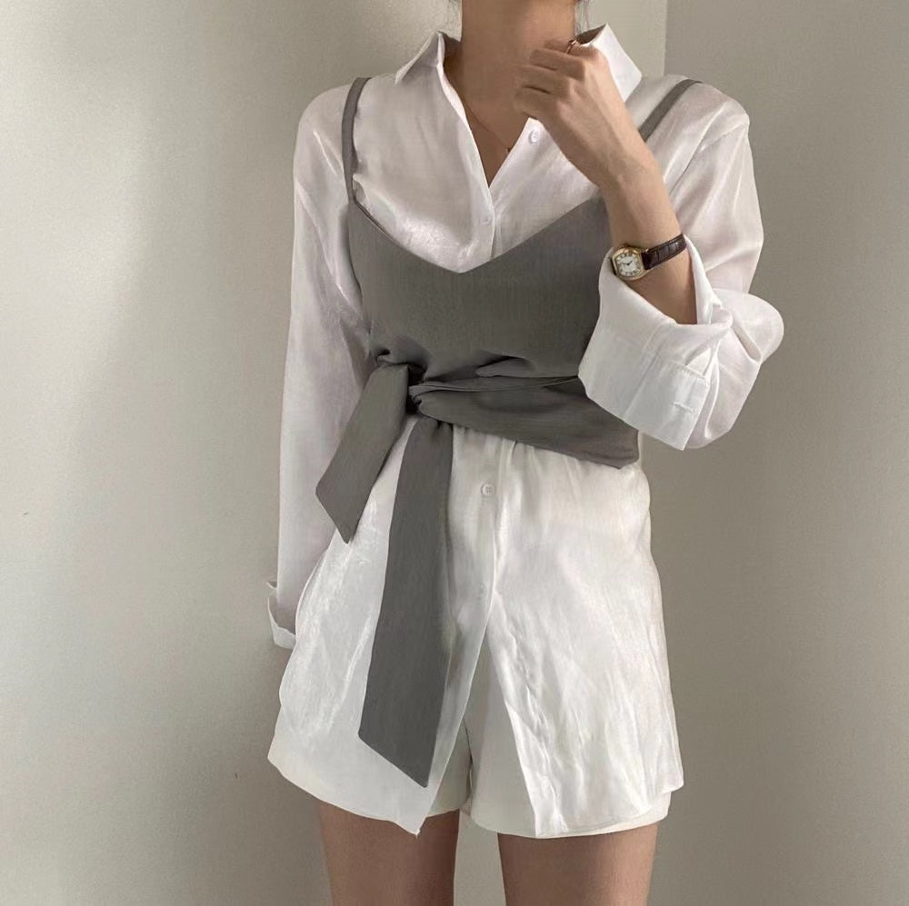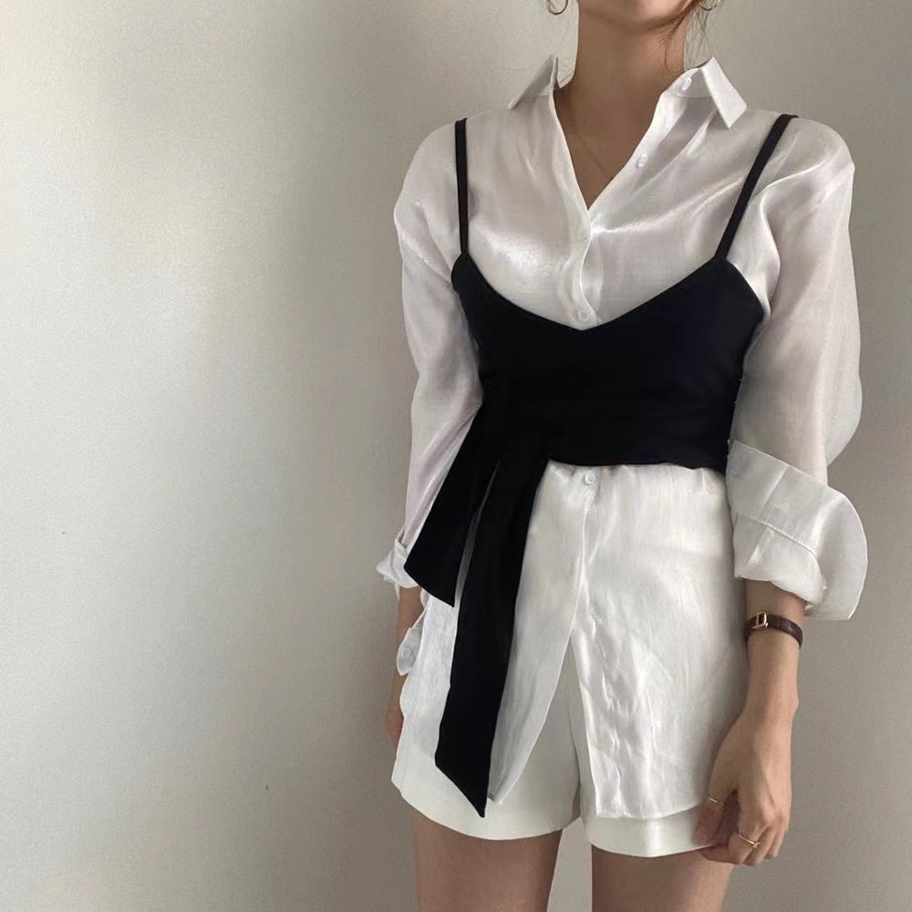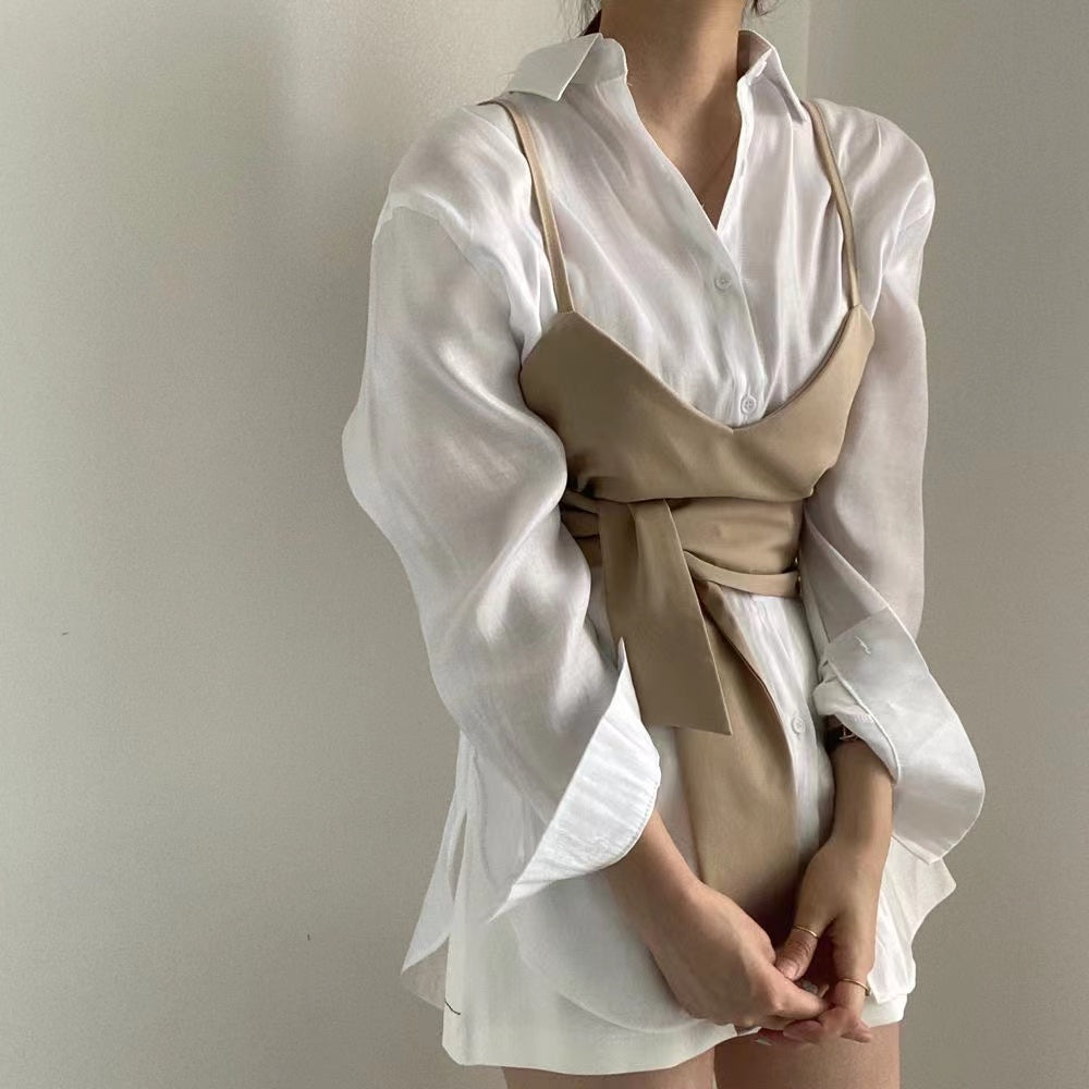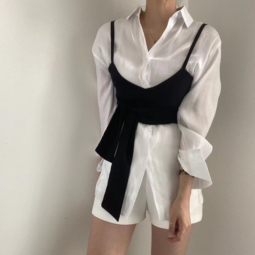 【F034285】春夏法式吊帶衫+簡約寬鬆長袖襯衫250325