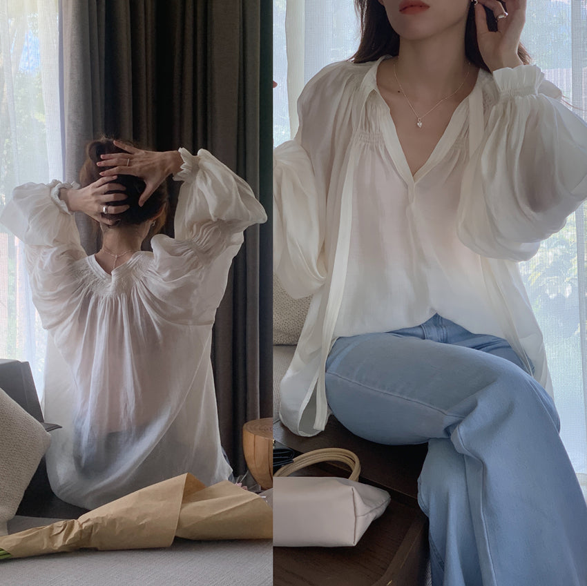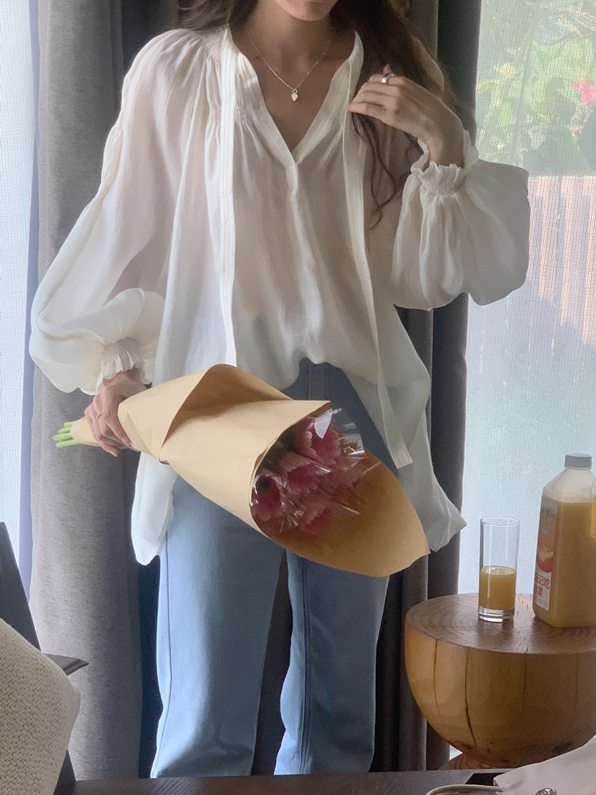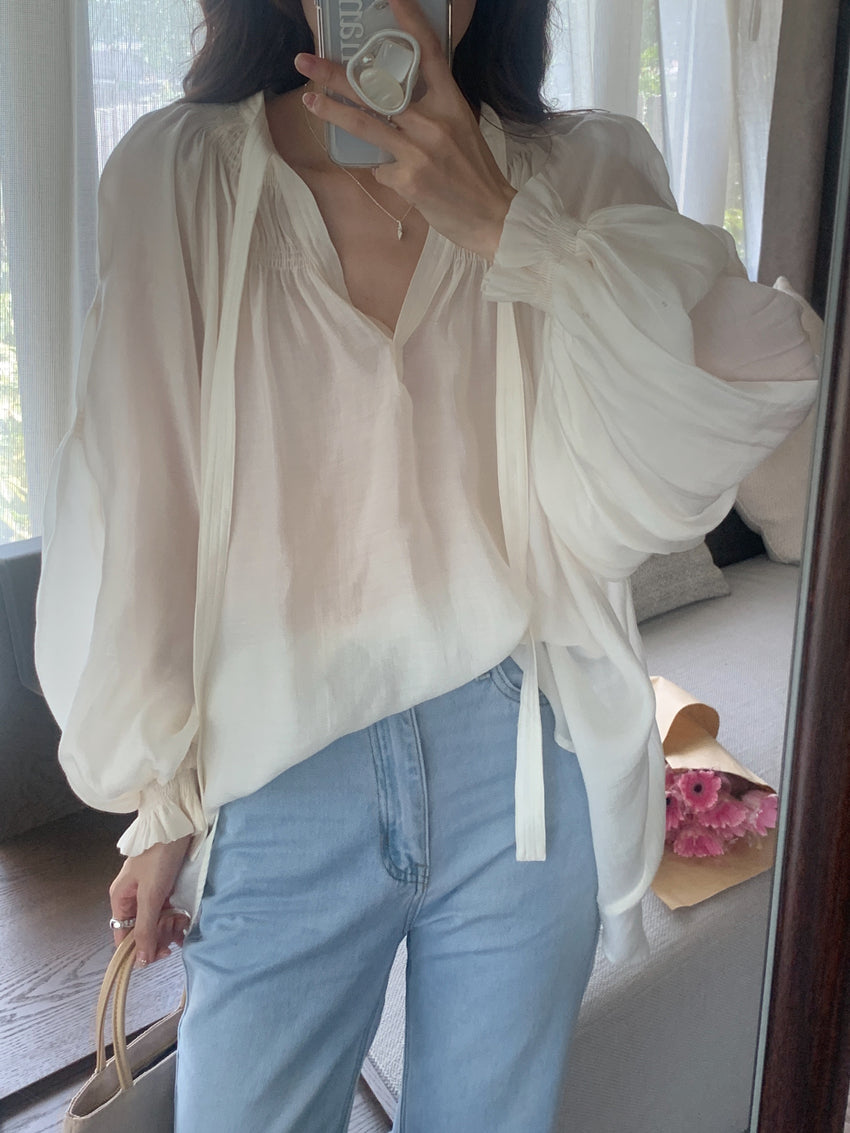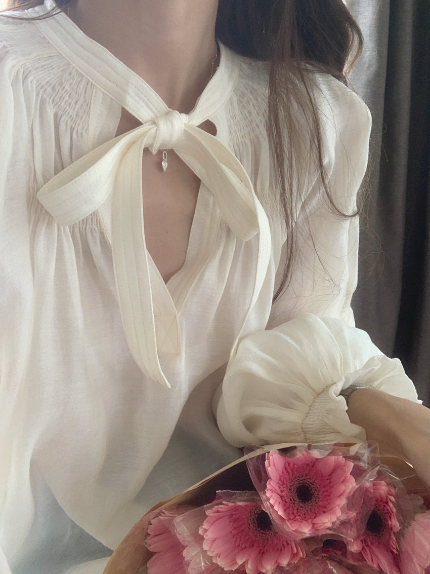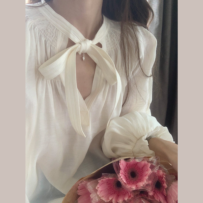 【F60105】實拍法式仙氣飄帶褶皺長袖襯衫250212