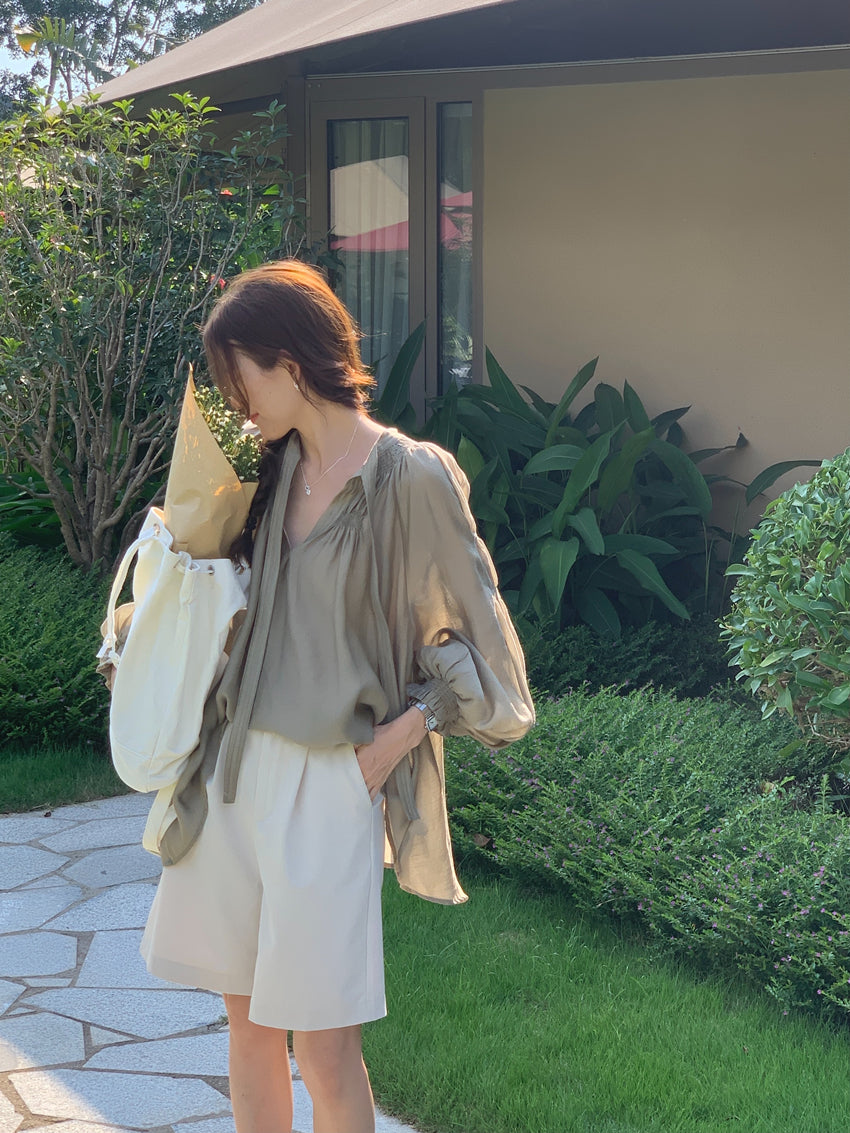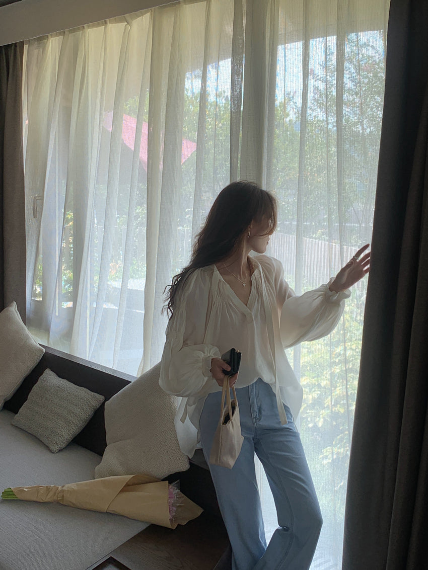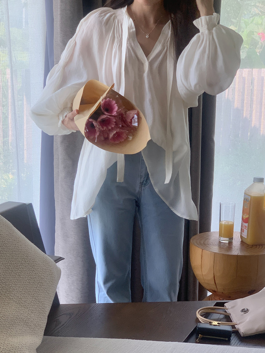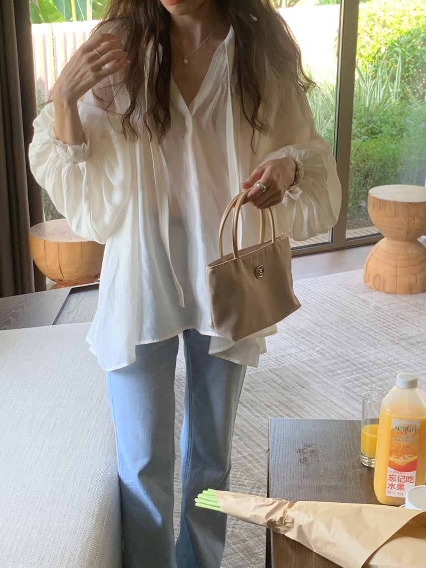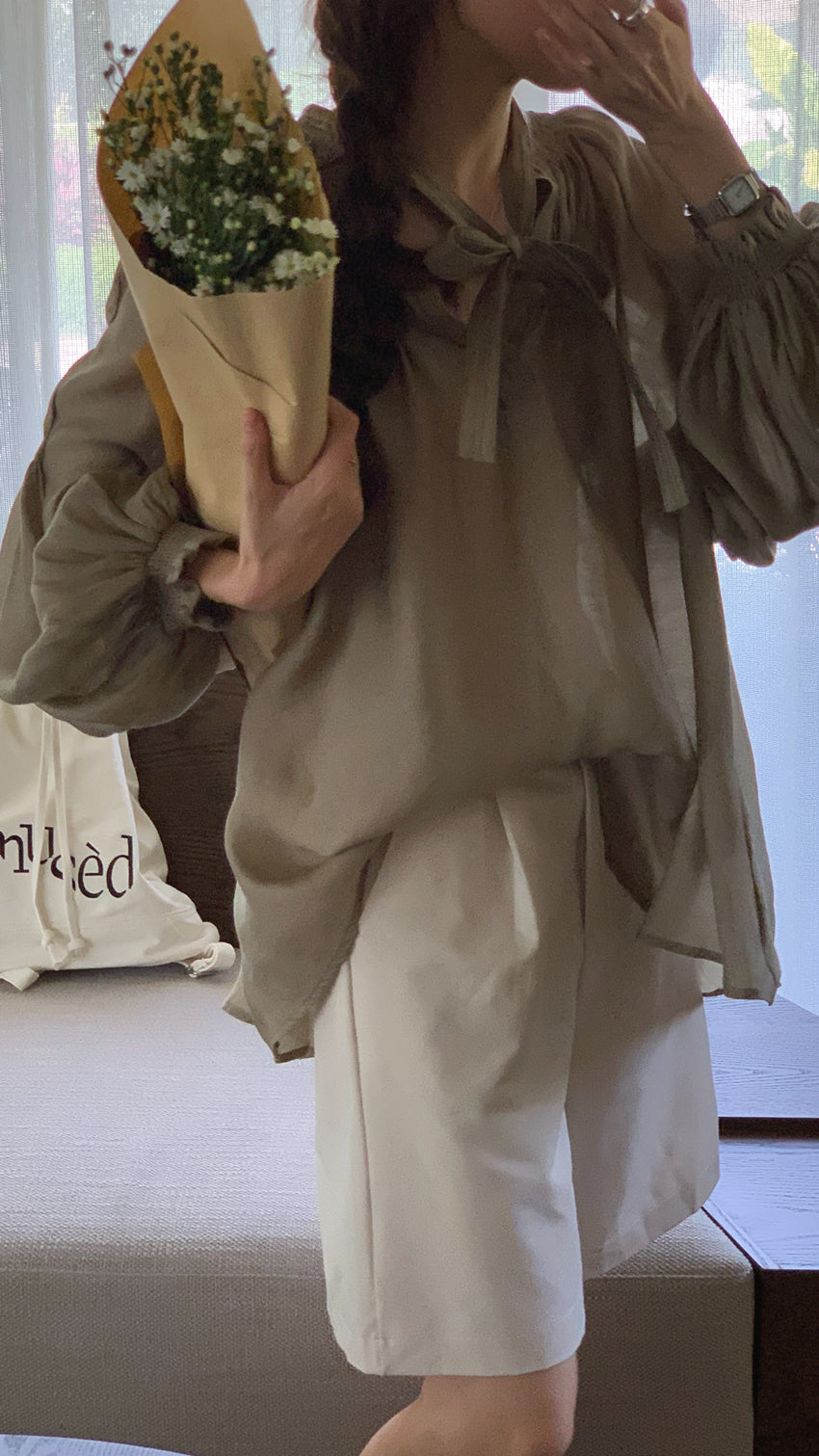【F60105】實拍法式仙氣飄帶褶皺長袖襯衫250212