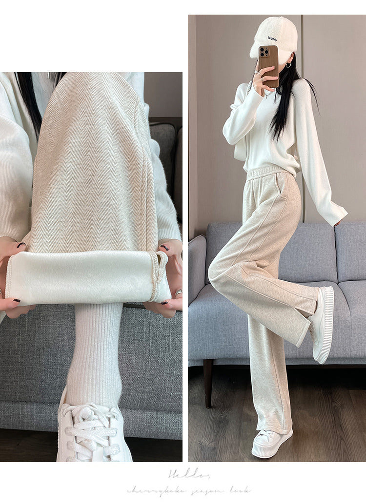 【F60109】實拍S~5XL人字紋高腰闊腿顯瘦開叉褲子/加絨款250212