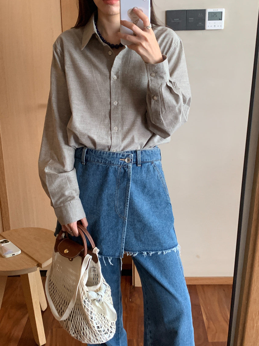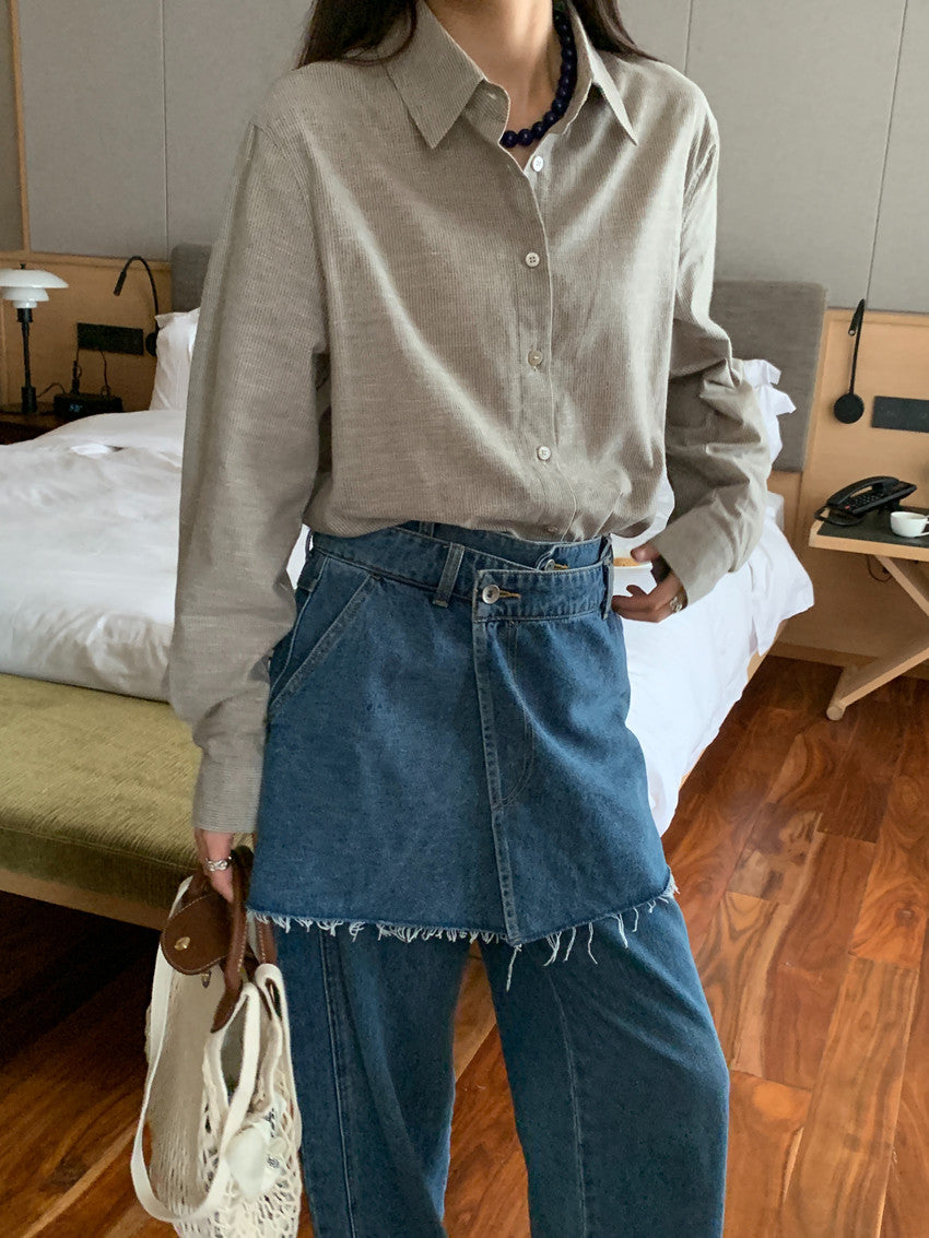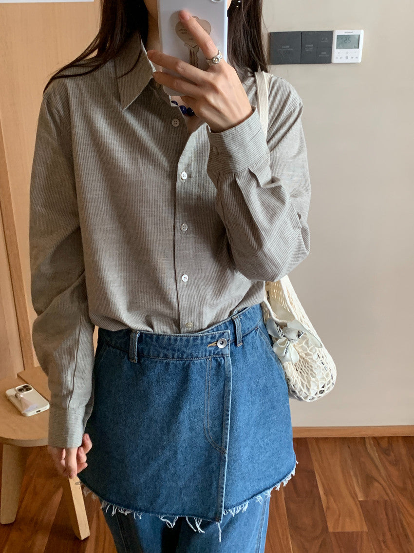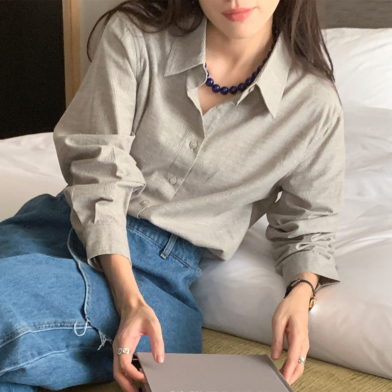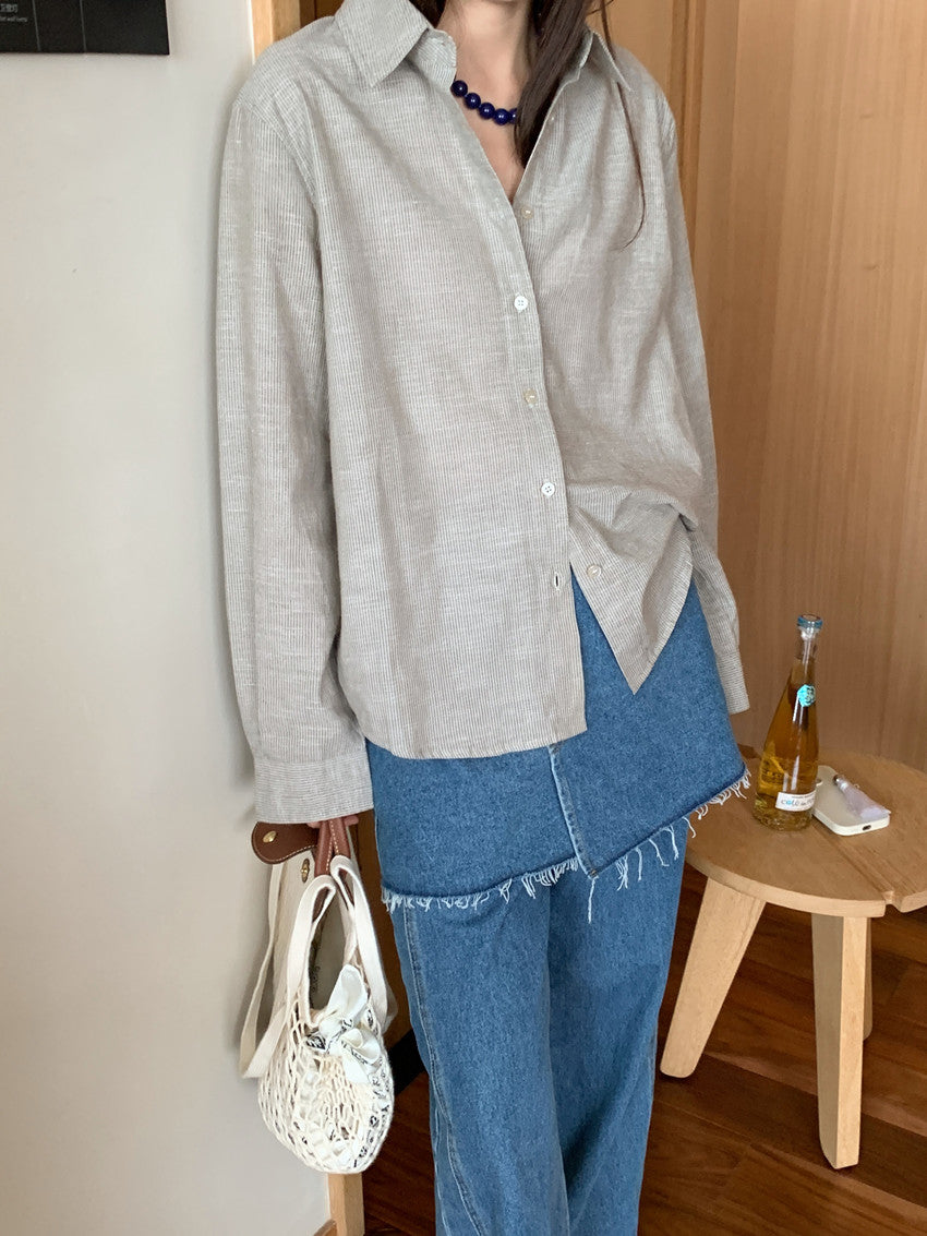 【F60111】實拍早春細條紋寬鬆長袖襯衫250212