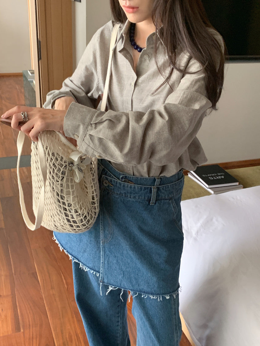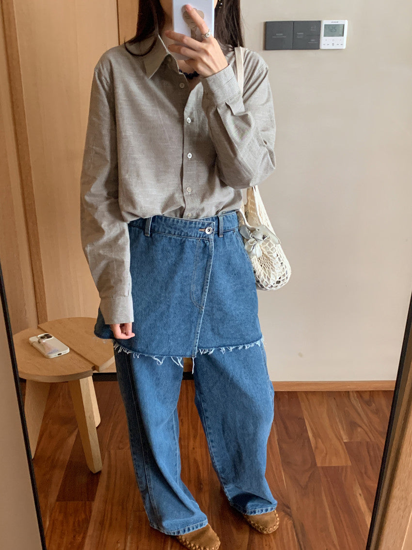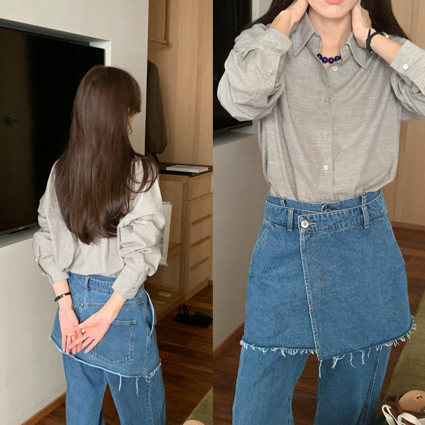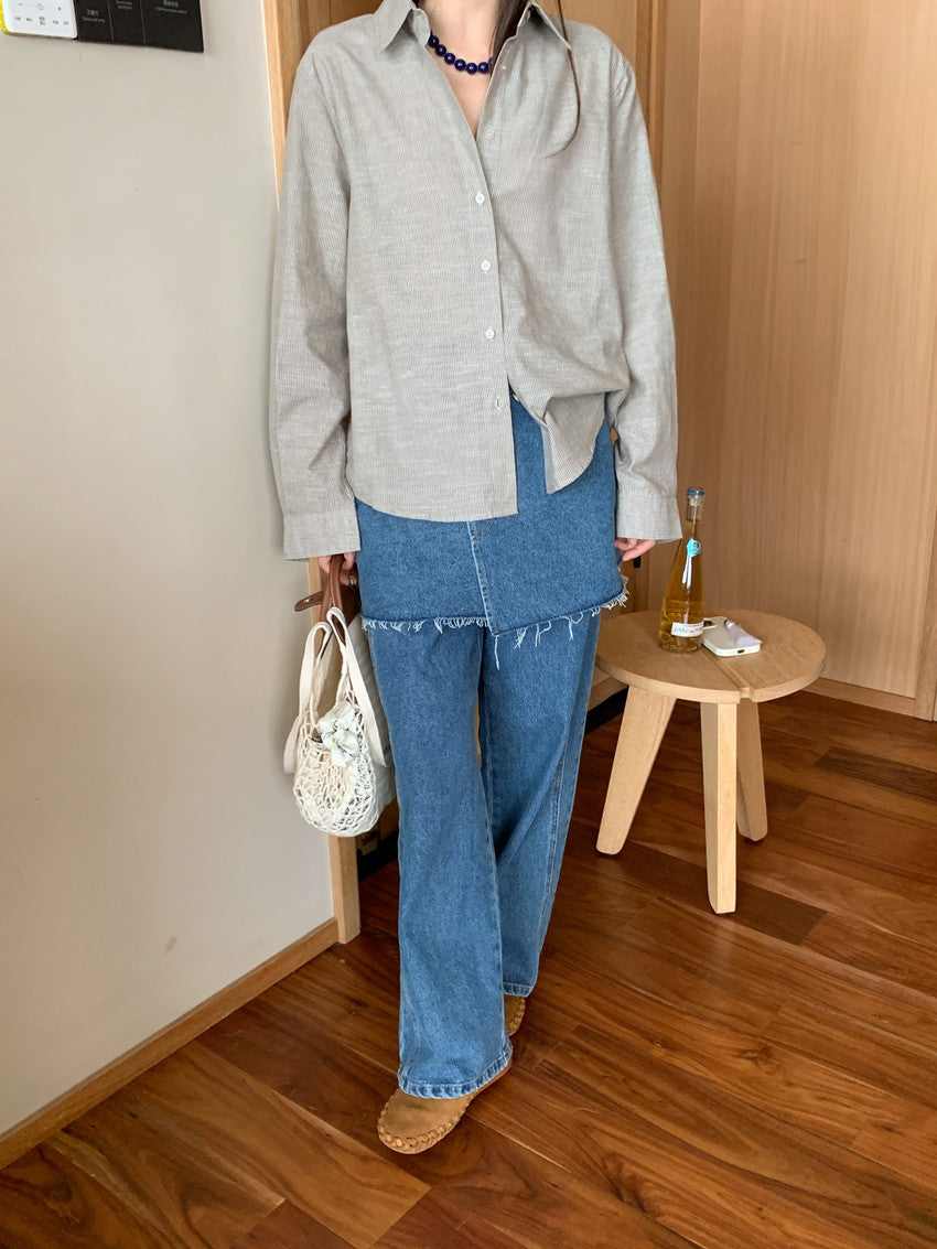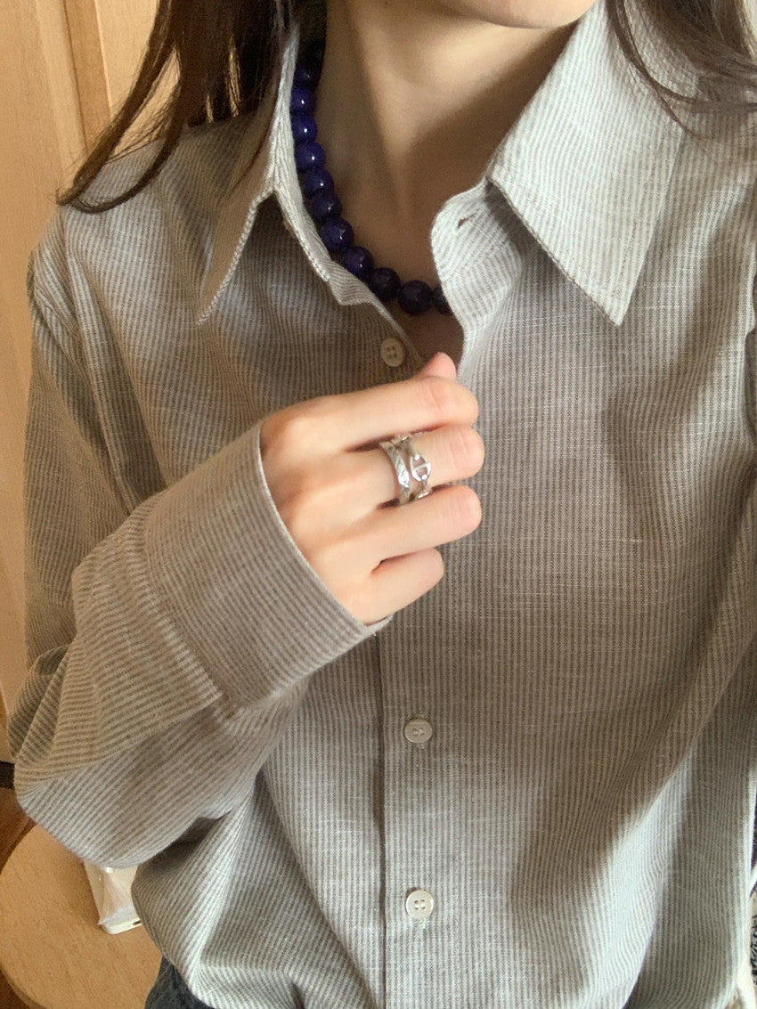 【F60111】實拍早春細條紋寬鬆長袖襯衫250212