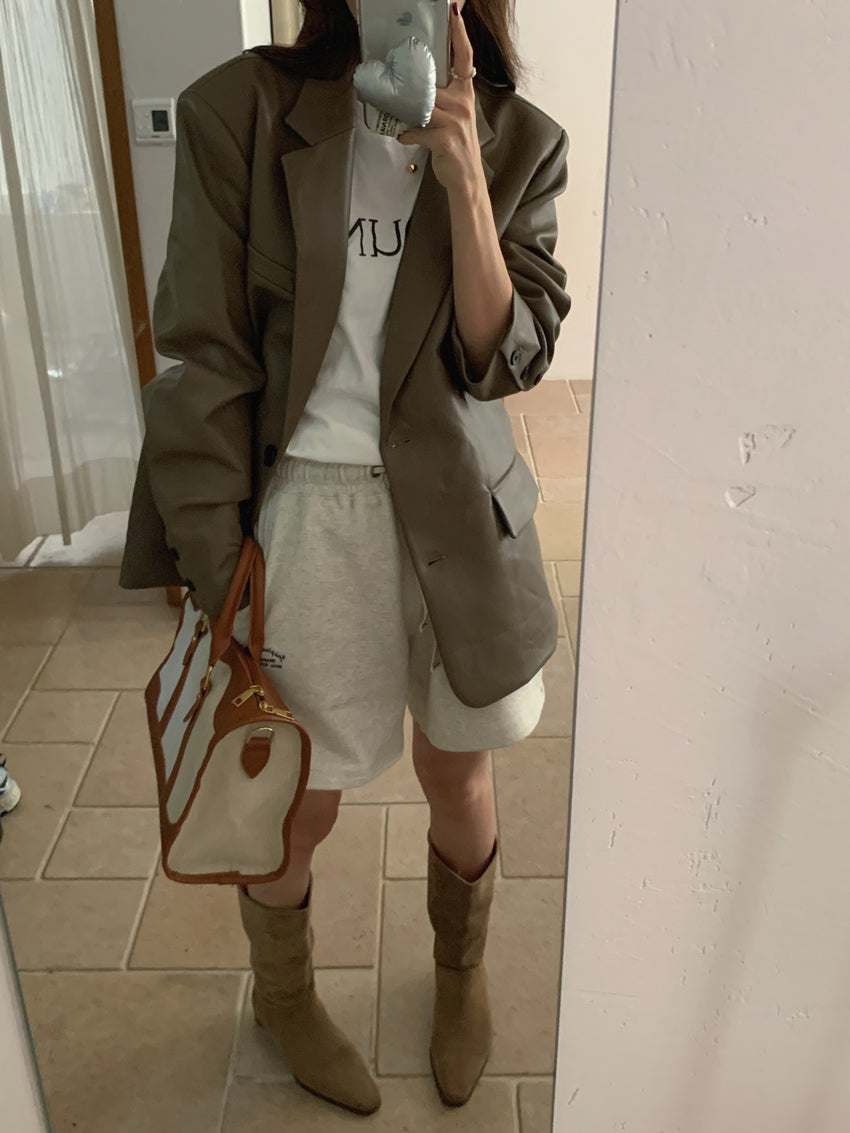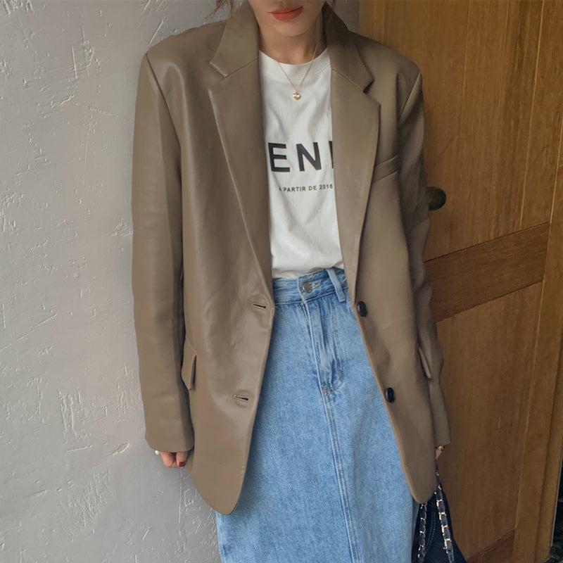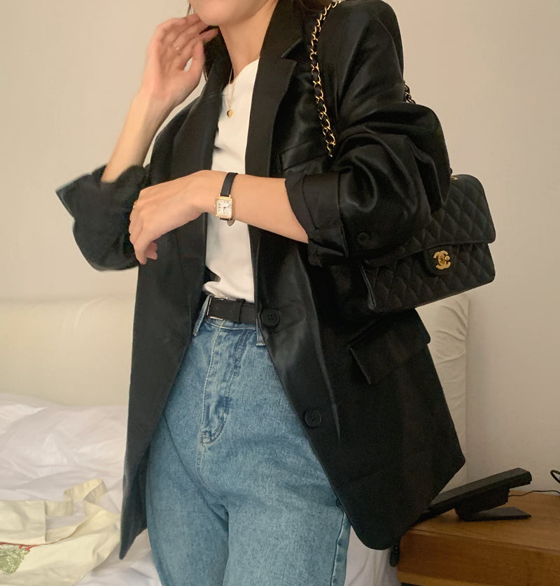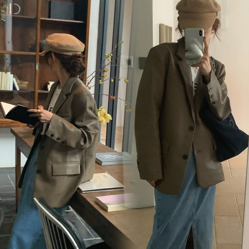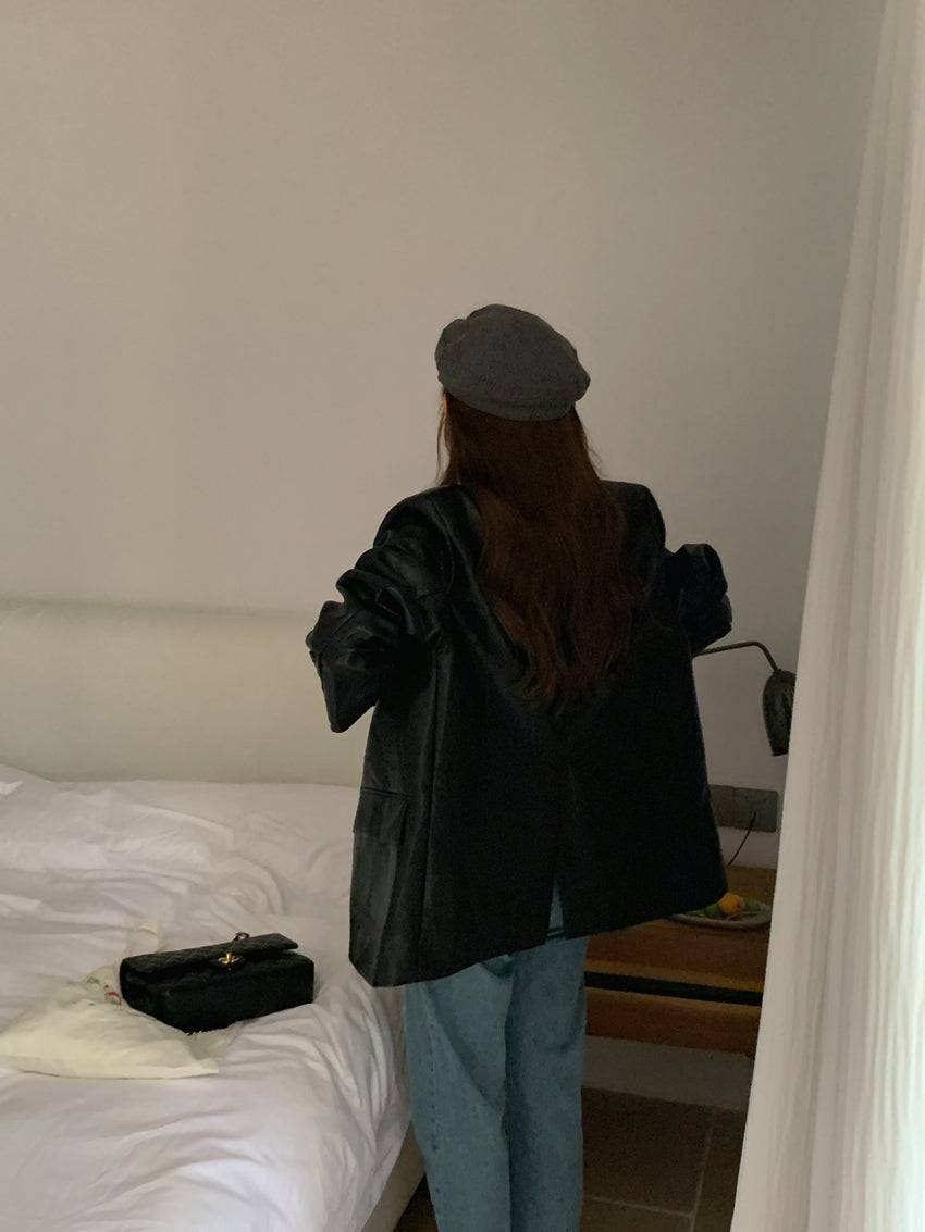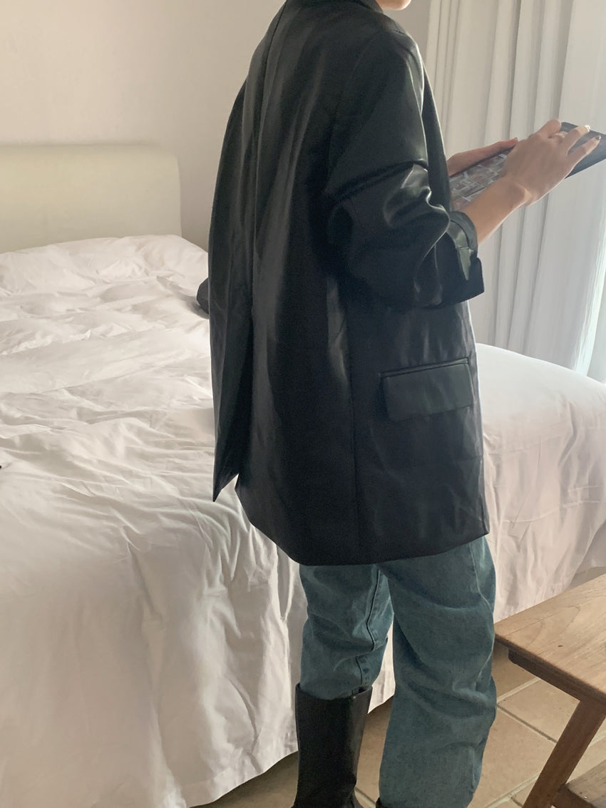 【F60112】實拍帥酷氣質男友風pu皮質西裝外套250212