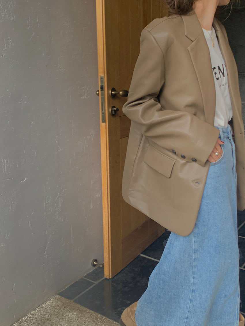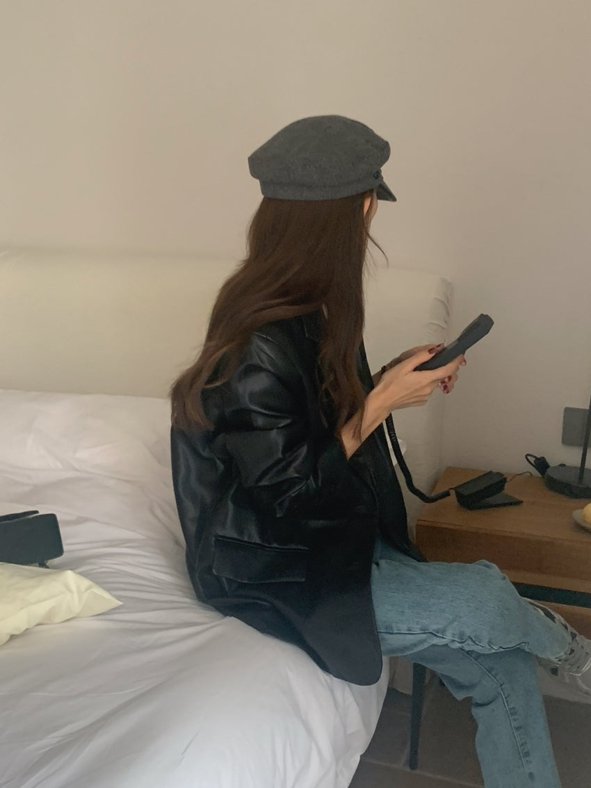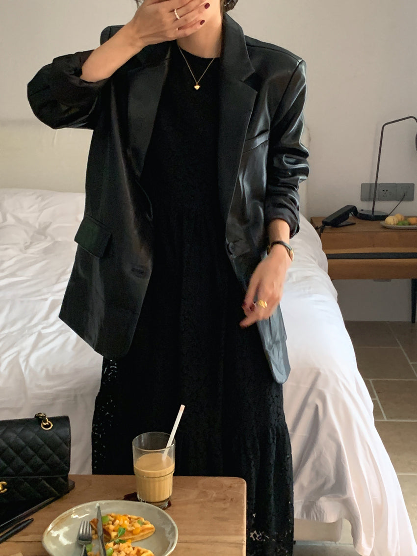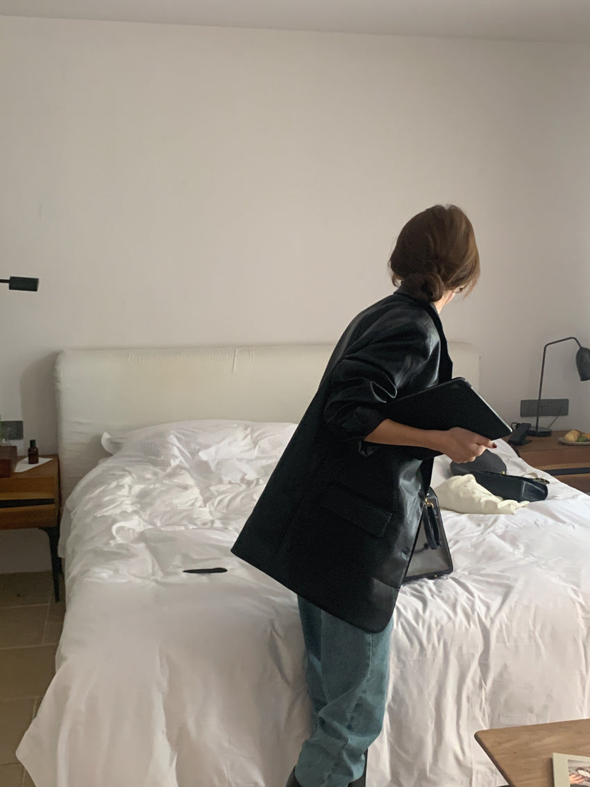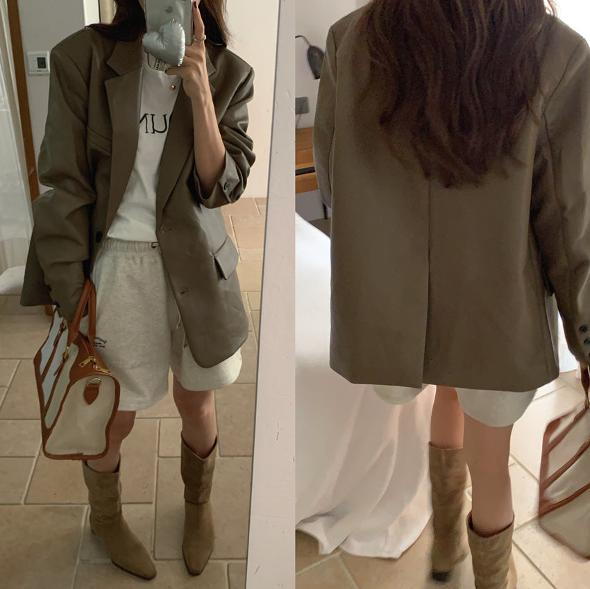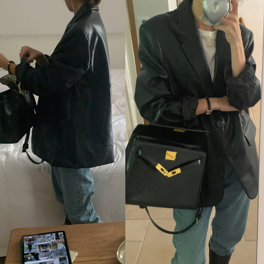 【F60112】實拍帥酷氣質男友風pu皮質西裝外套250212