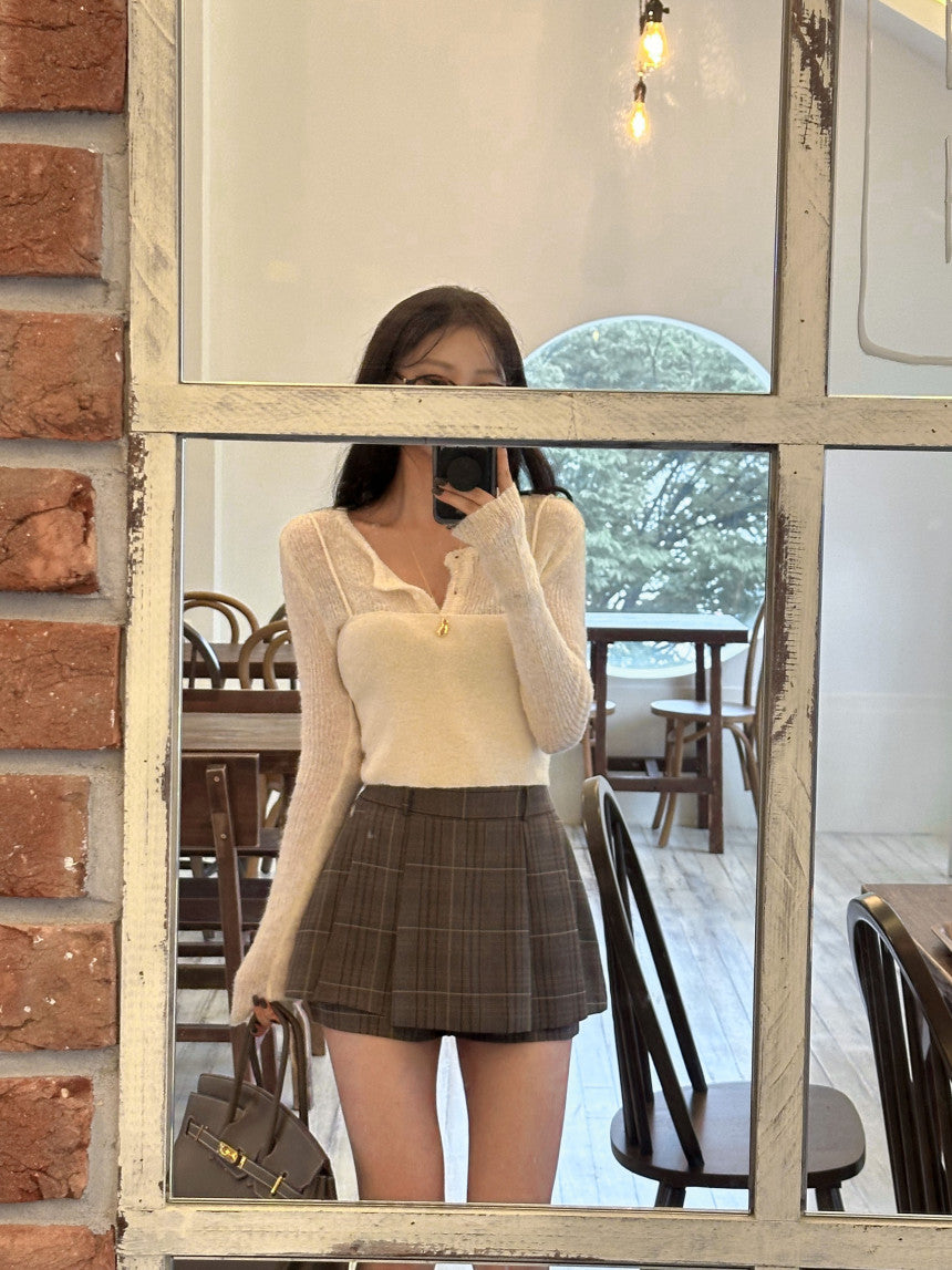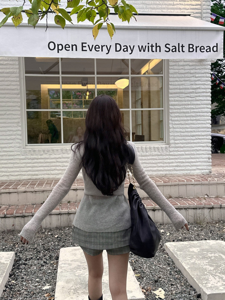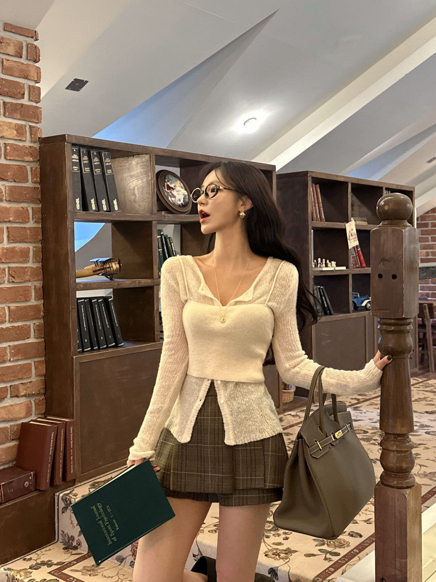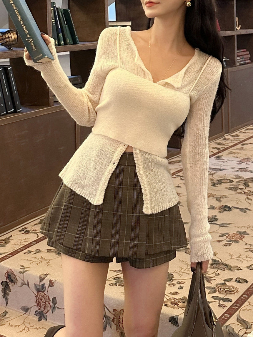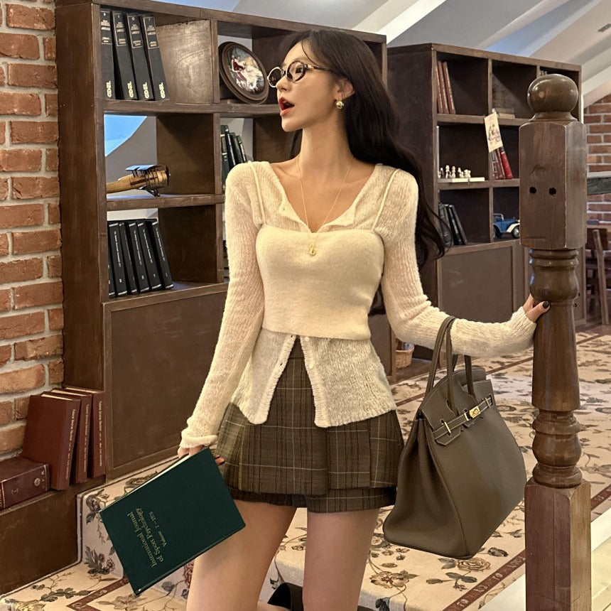 【F60119】韓國早春圓領簡約開衫針織+吊帶針織 套裝250212