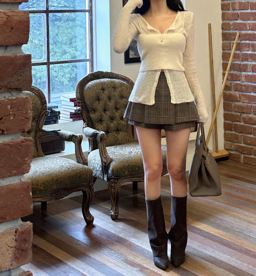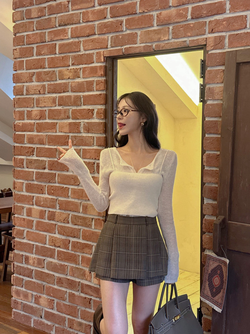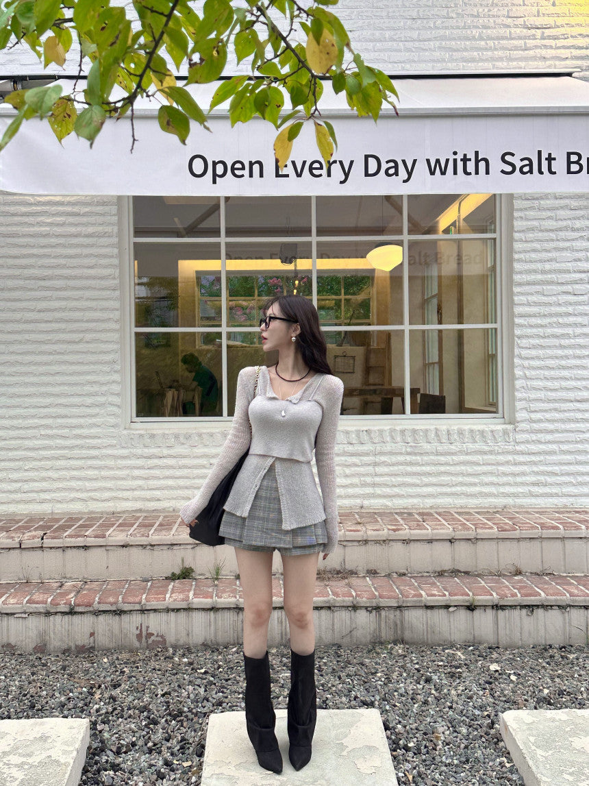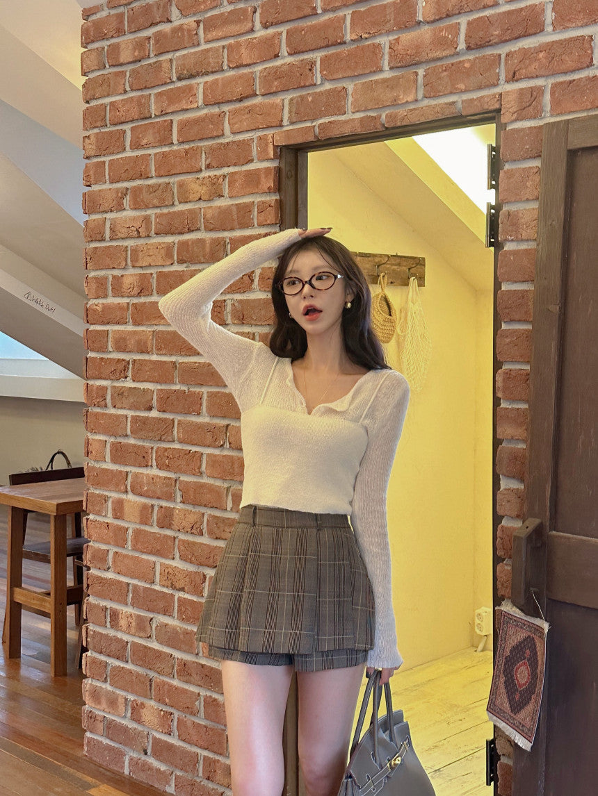 【F60119】韓國早春圓領簡約開衫針織+吊帶針織 套裝250212