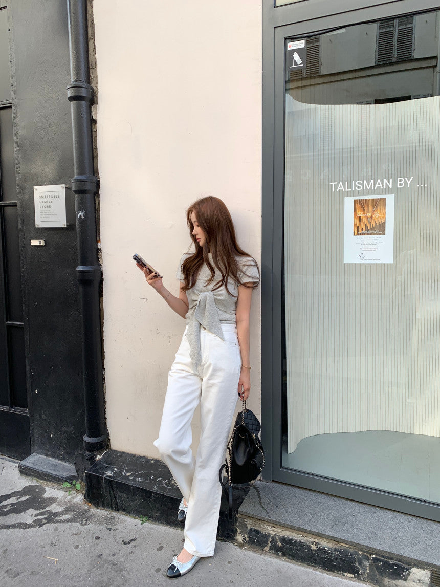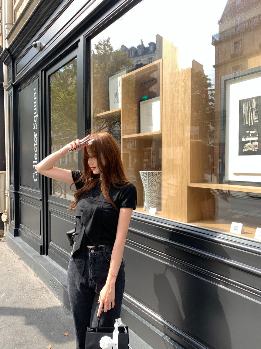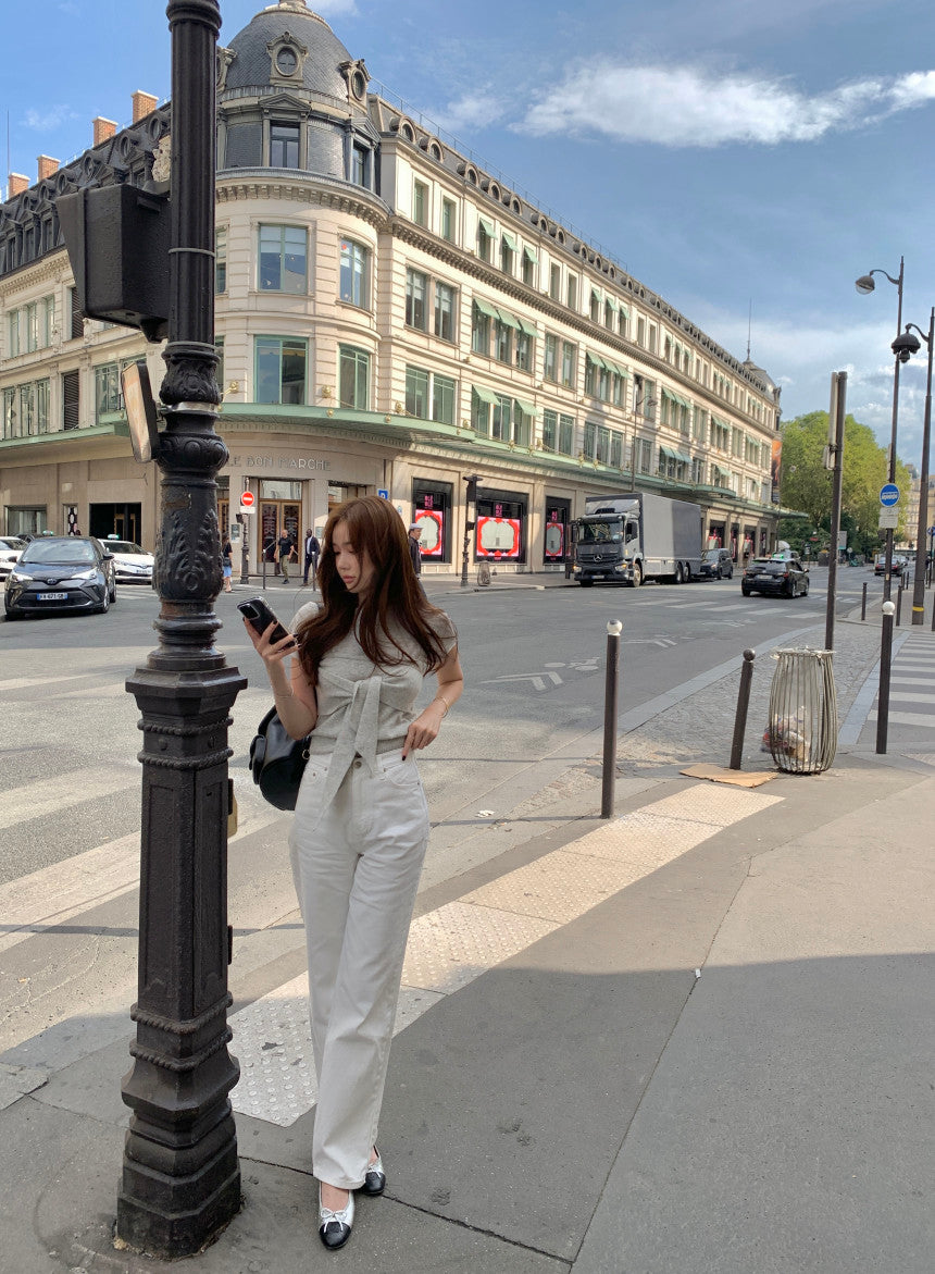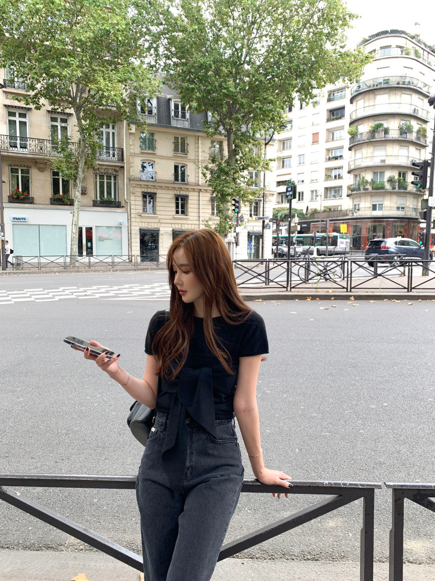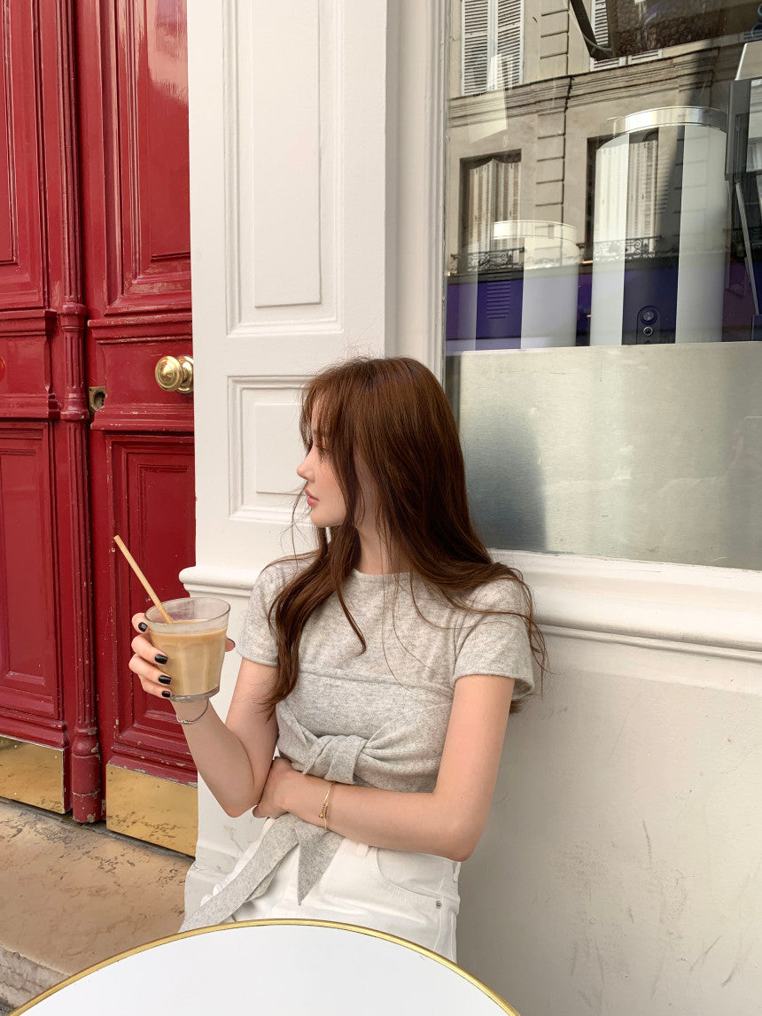 【F60124】韓國早春法式甜美綁帶圓領針織衫250212