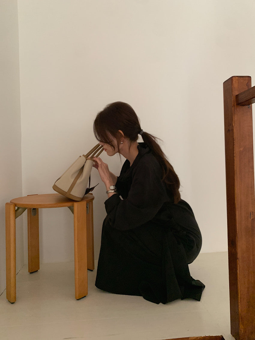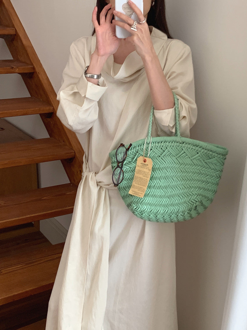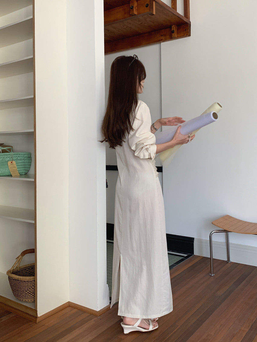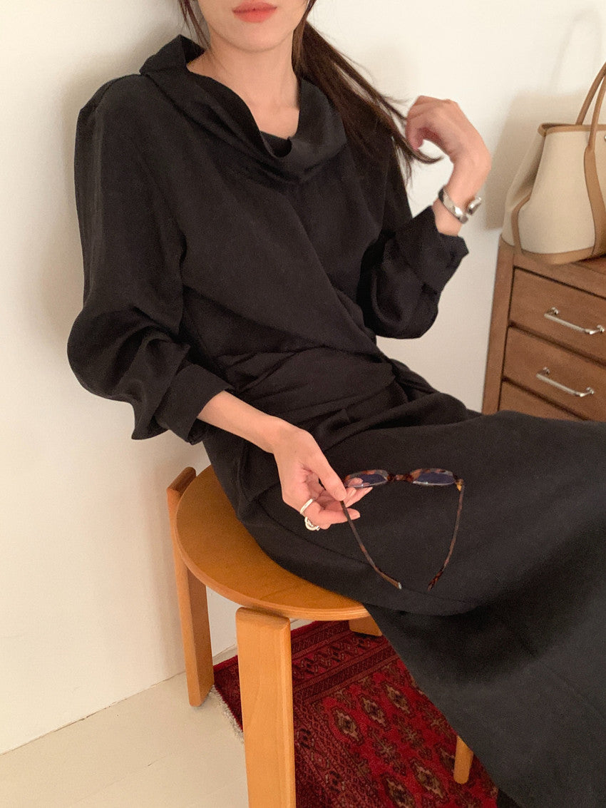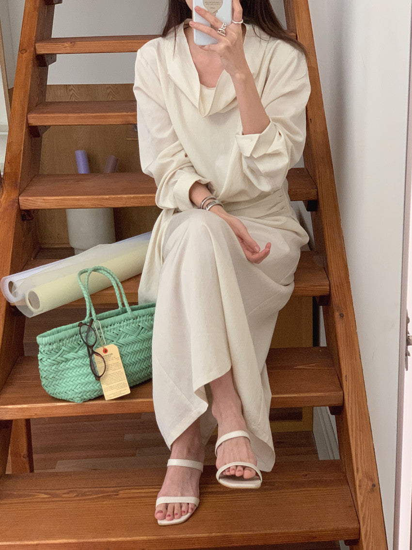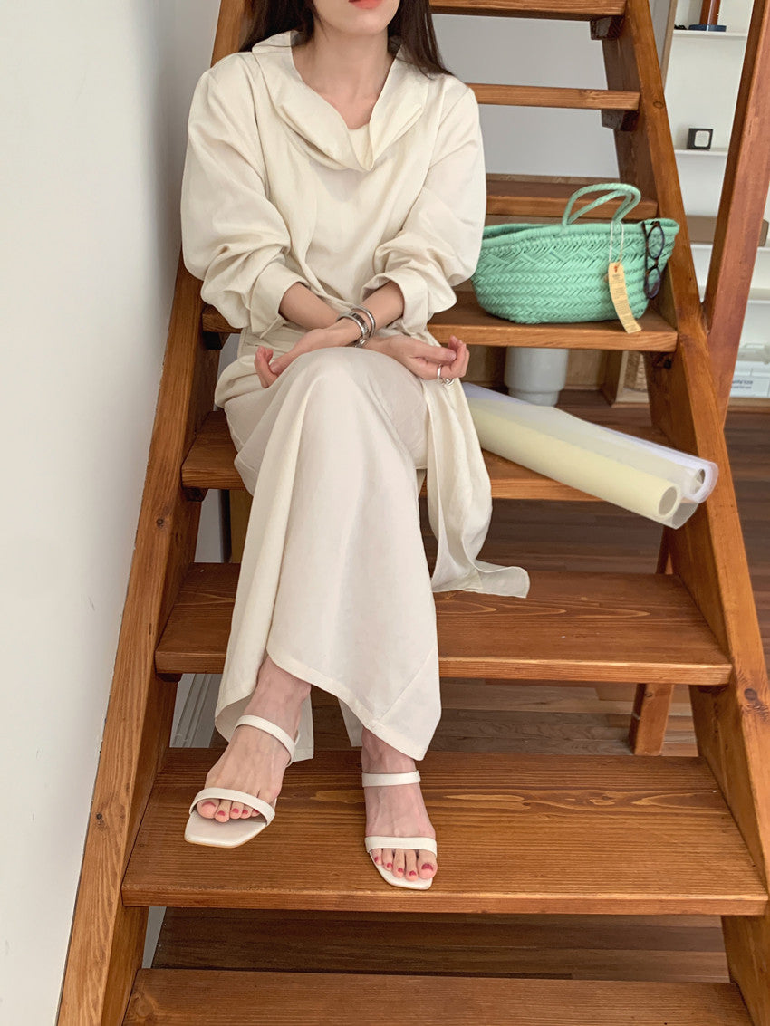 【F60136】實拍法式復古優雅氣質立領寬鬆大綁帶長袖洋裝250212