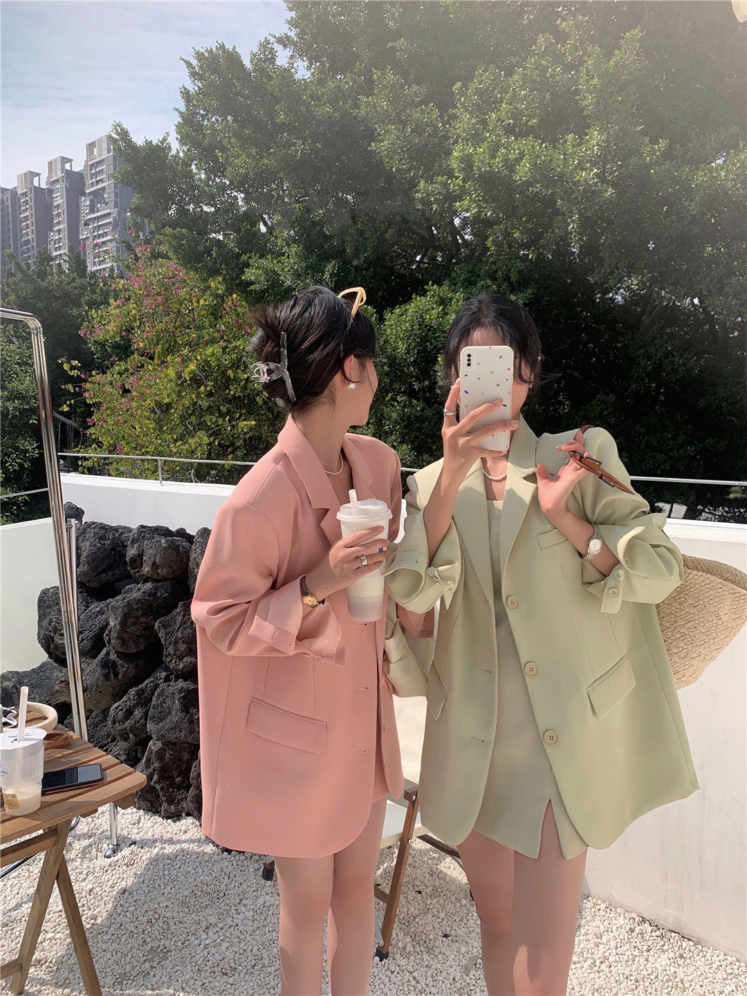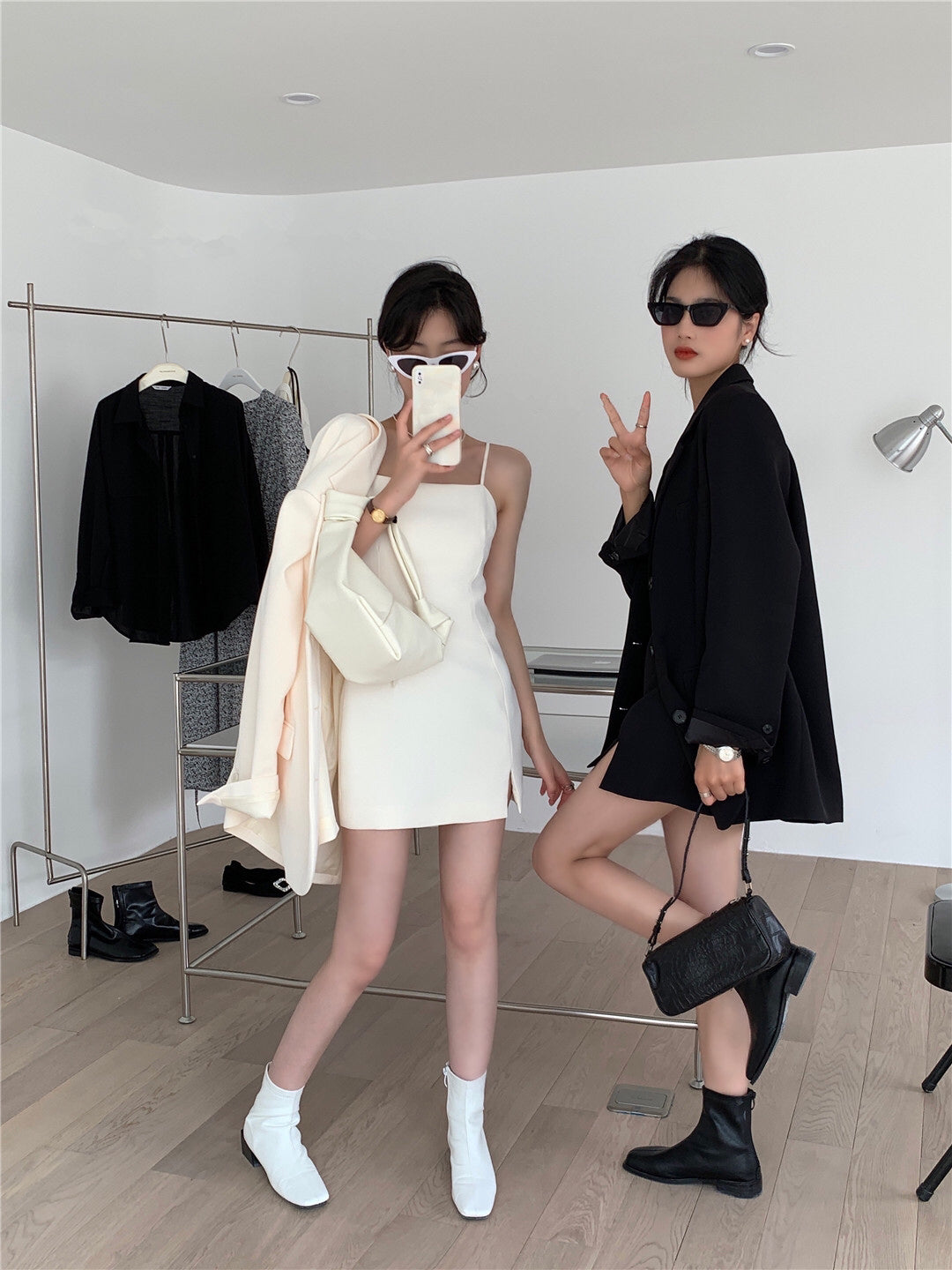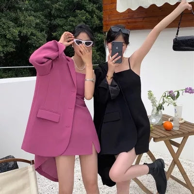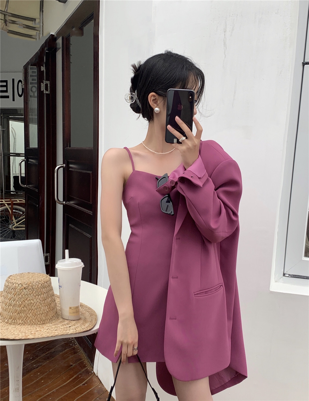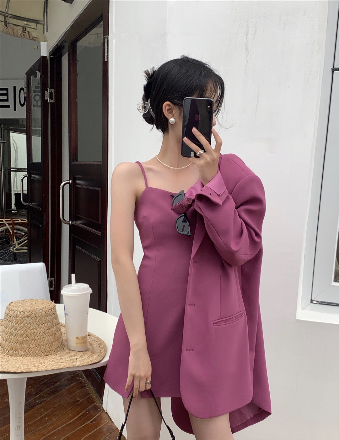 【F60139】氣質西裝寬鬆外套+內搭西裝吊帶洋裝(分開下單) 250212