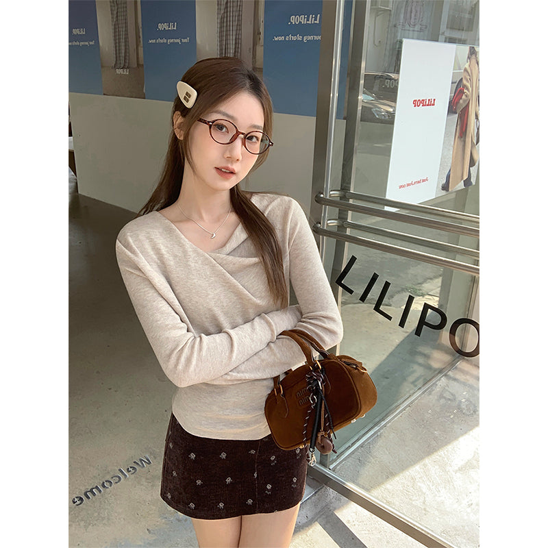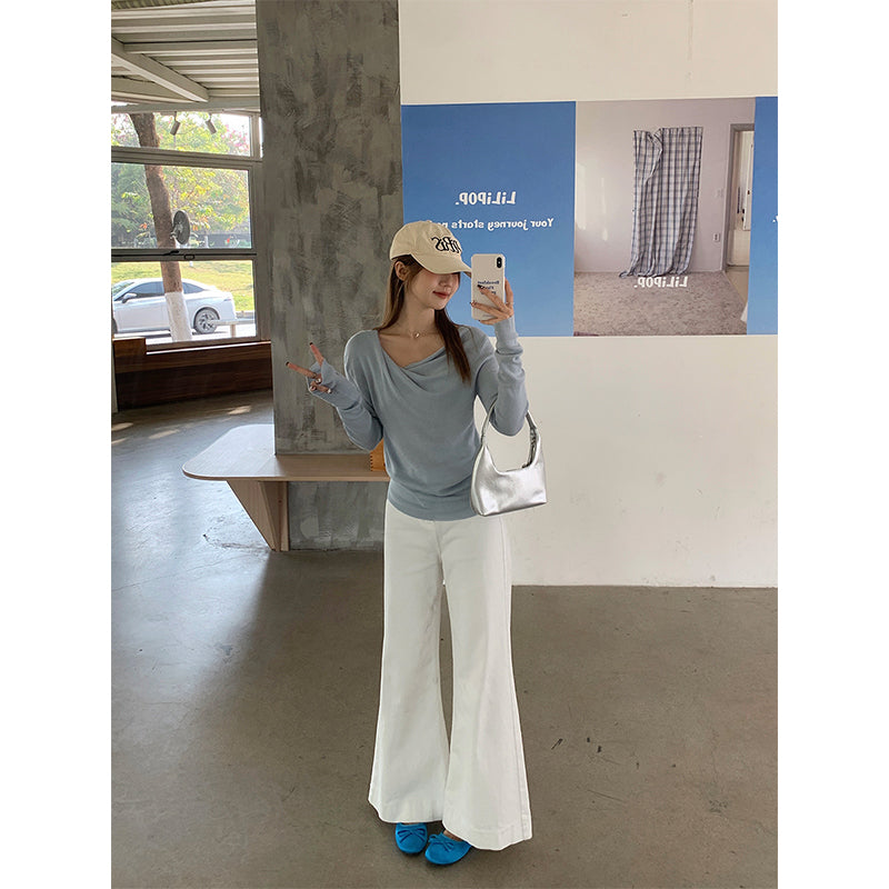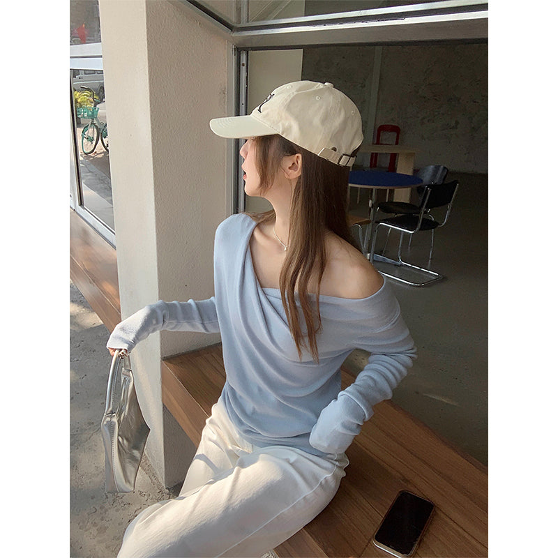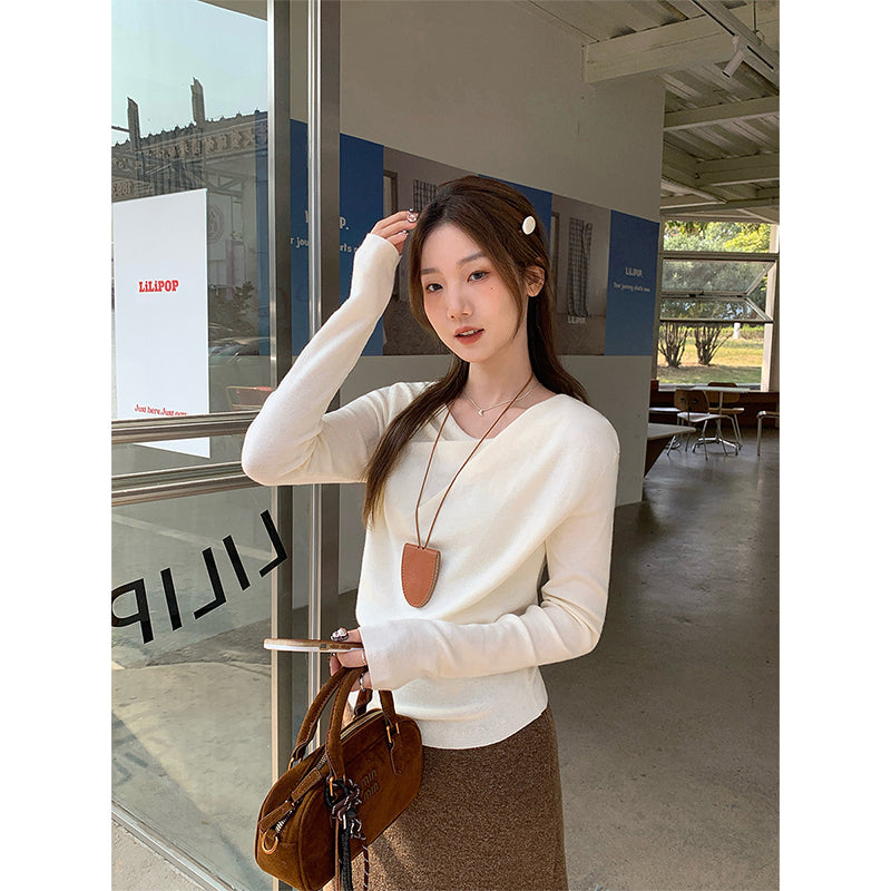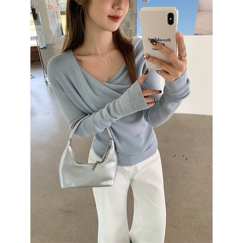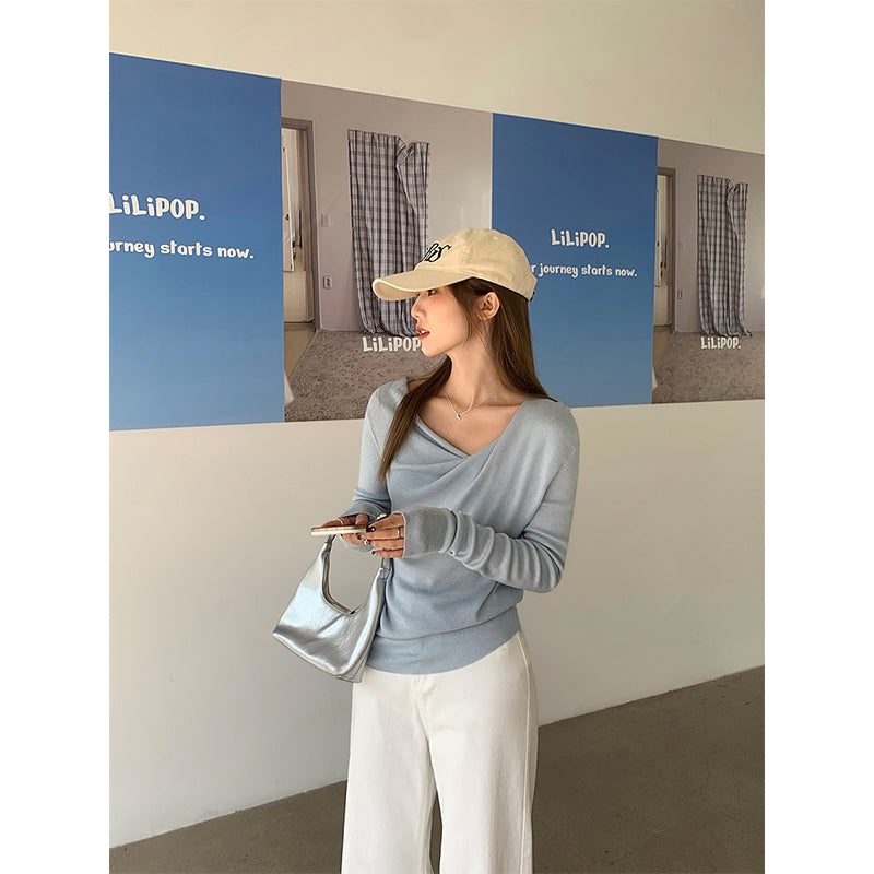 【F60149】實拍法式扭褶斜領羊絨長袖針織衫250218