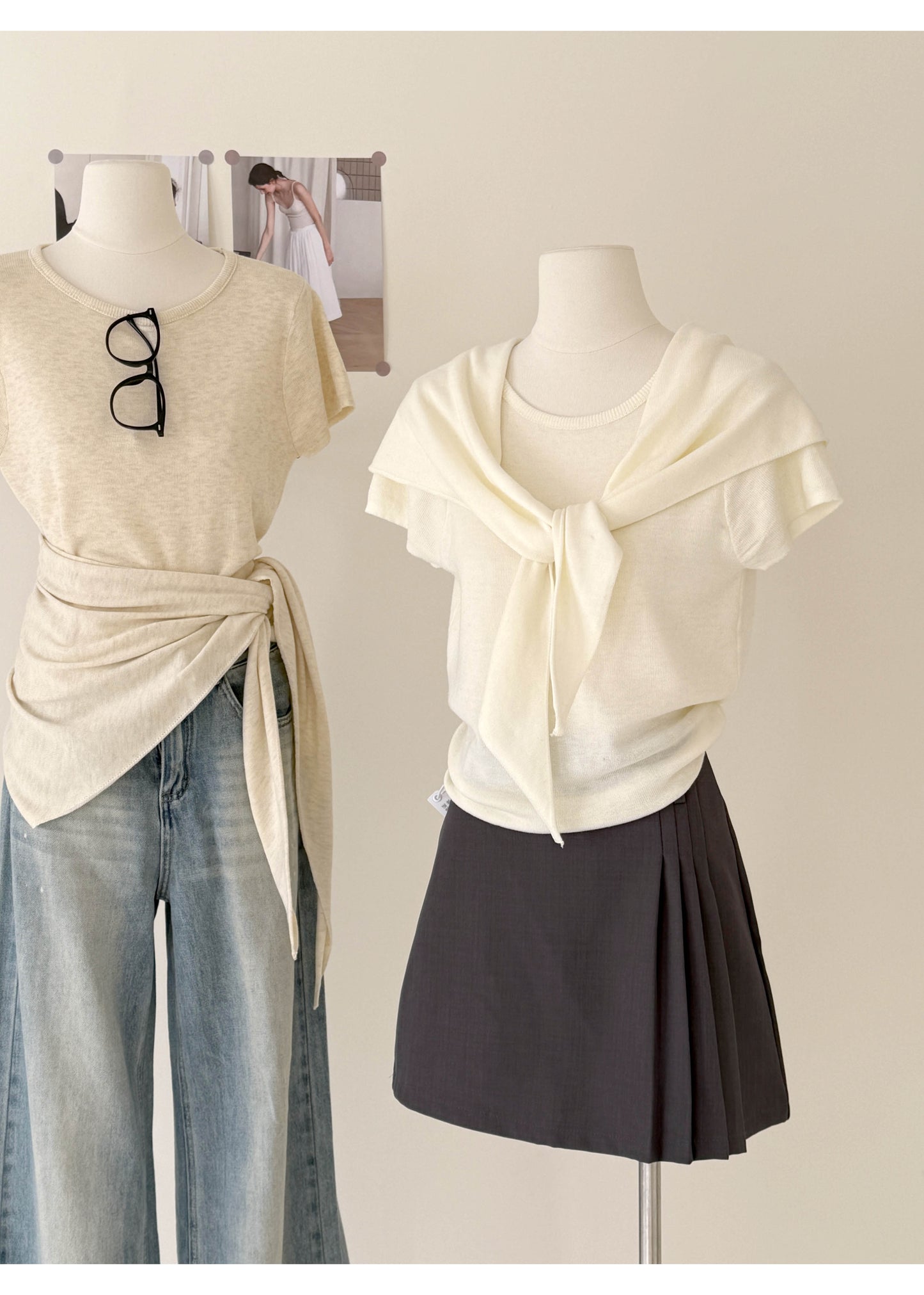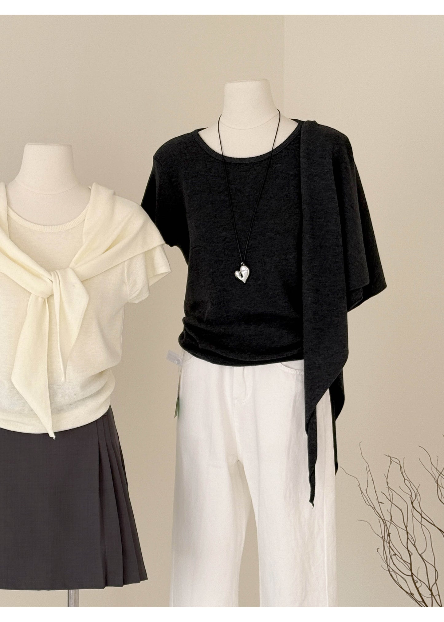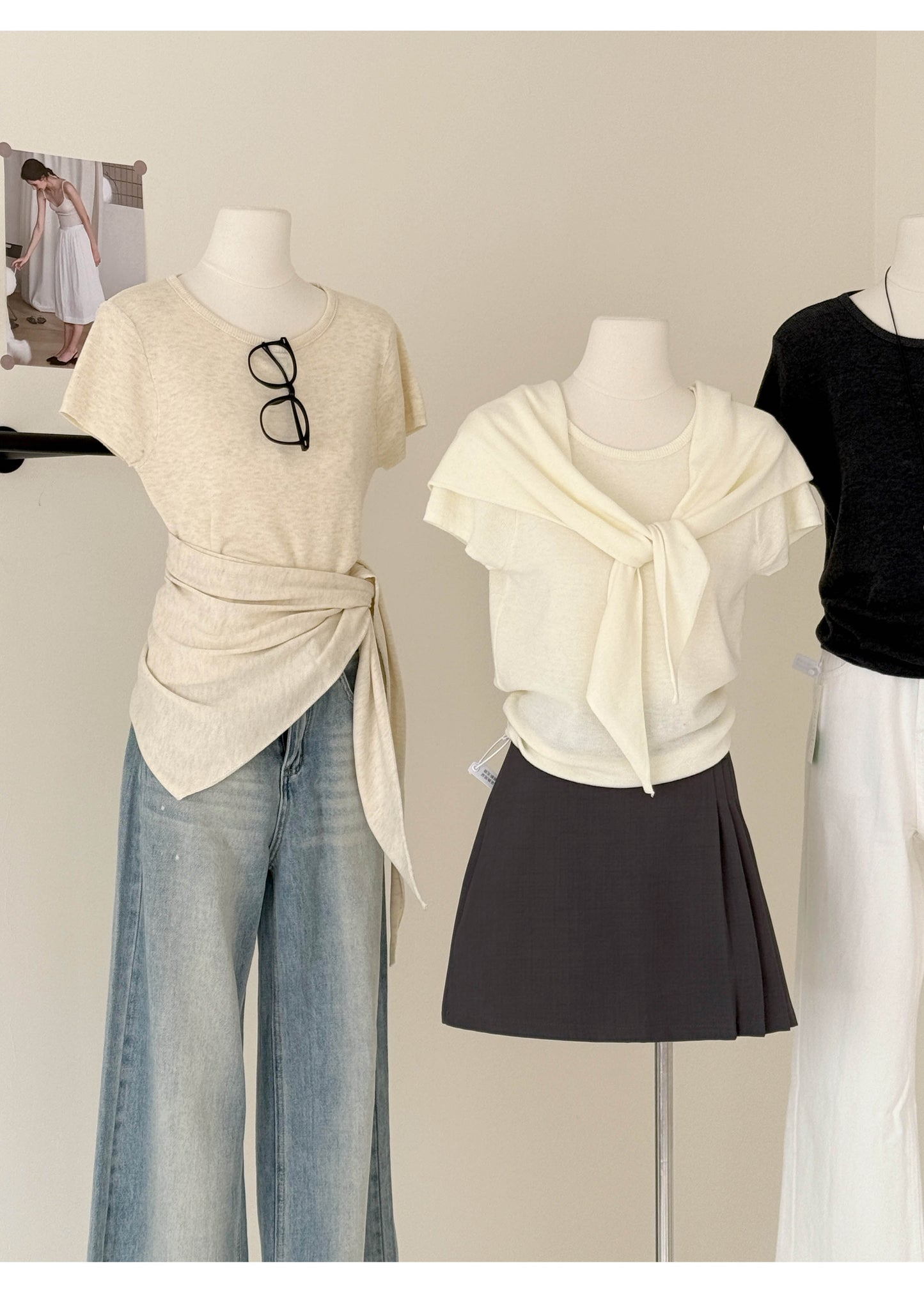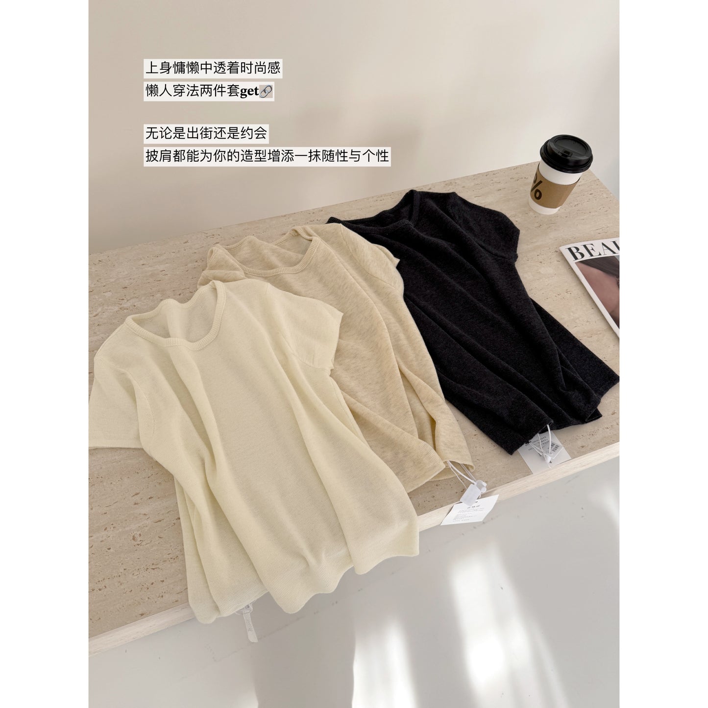 【F60159】實拍韓系夏季簡約氣質針織衫+針織披肩250218