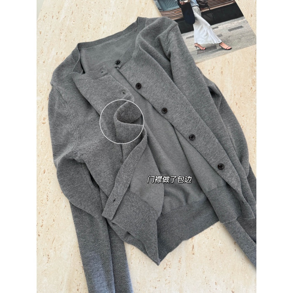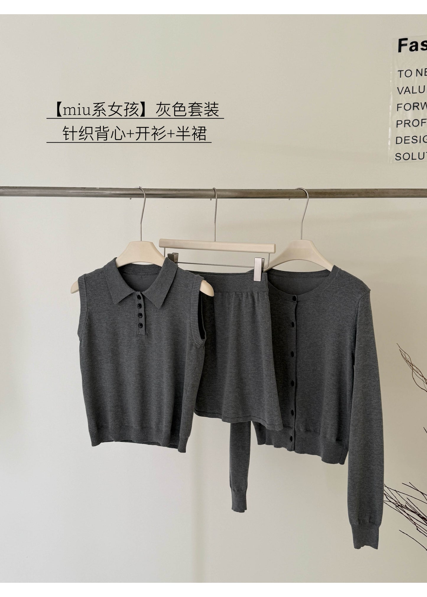 【F60163】實拍春季針織開衫+polo領背心+a字裙 3件套250218