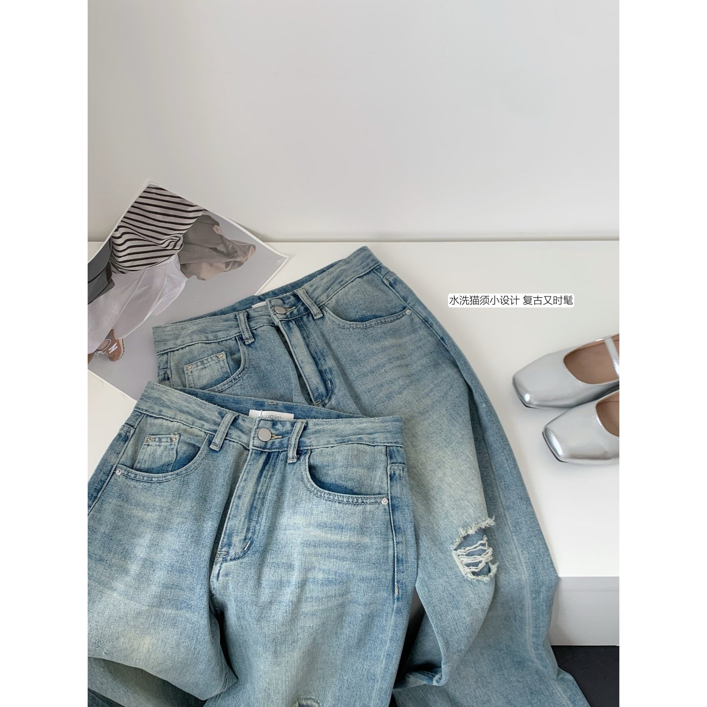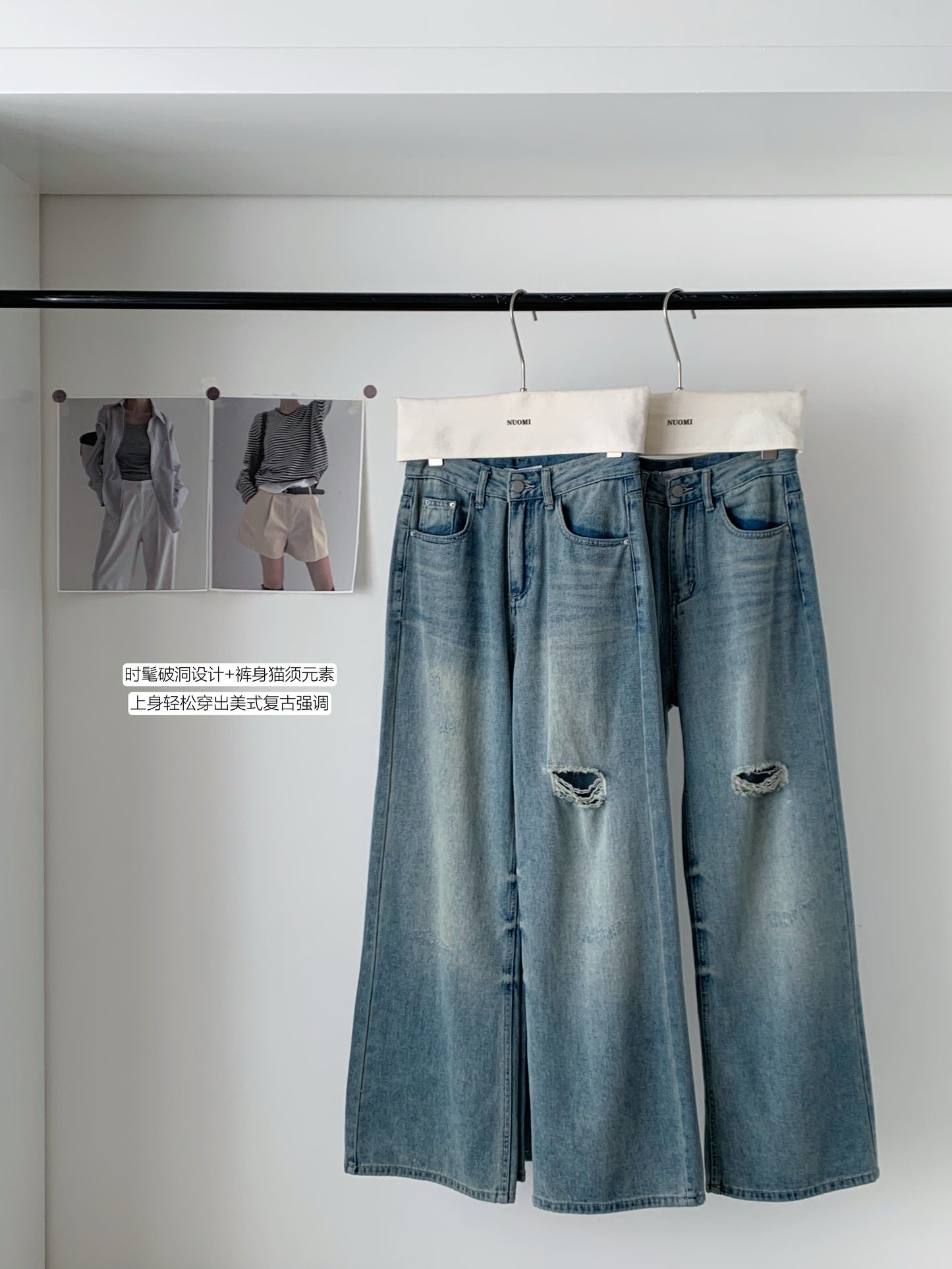 【F60174】實拍春季復古洗舊顯瘦牛仔褲250218