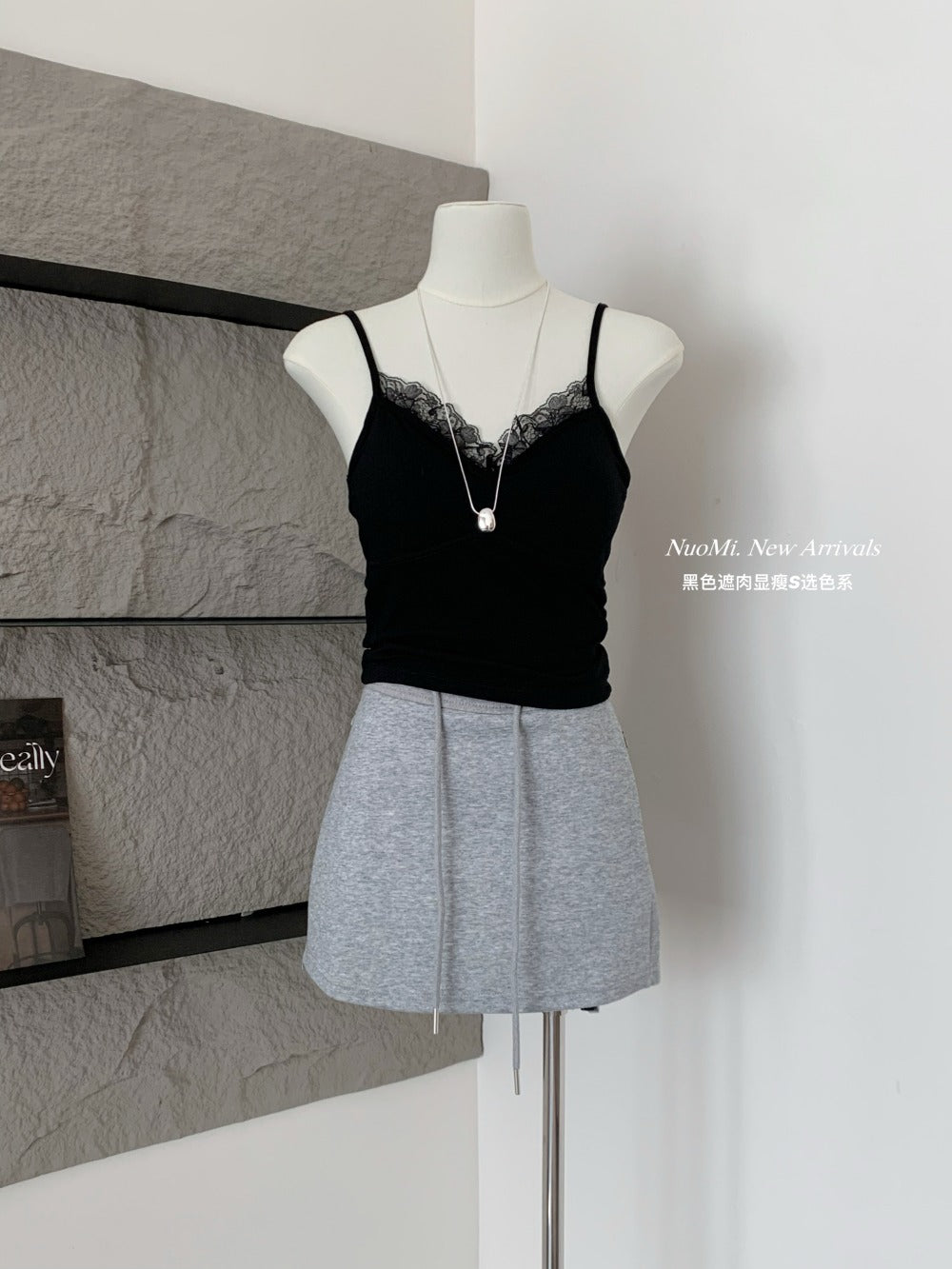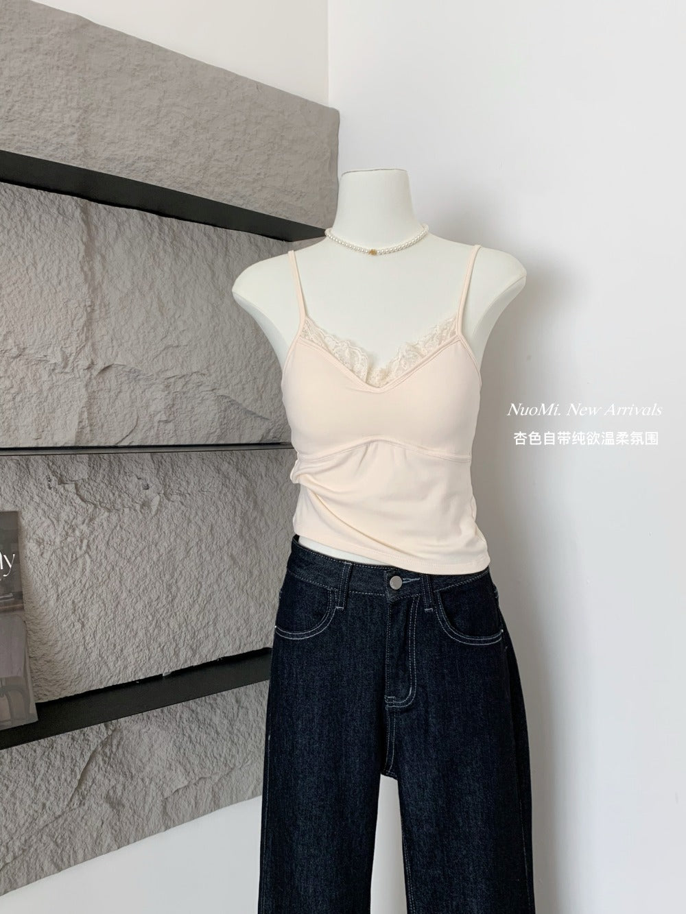 【F60178】實拍早春蕾絲磨毛內裡吊帶背心(帶胸墊)250218