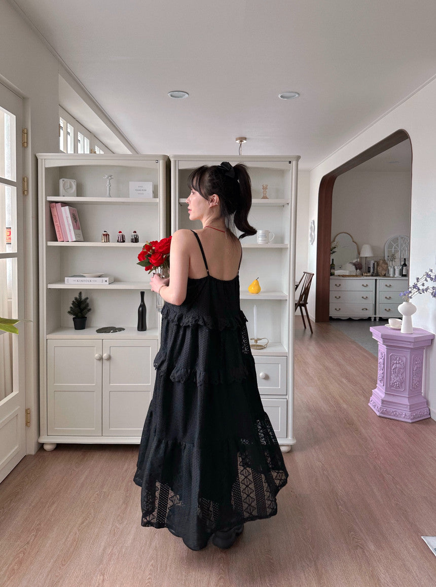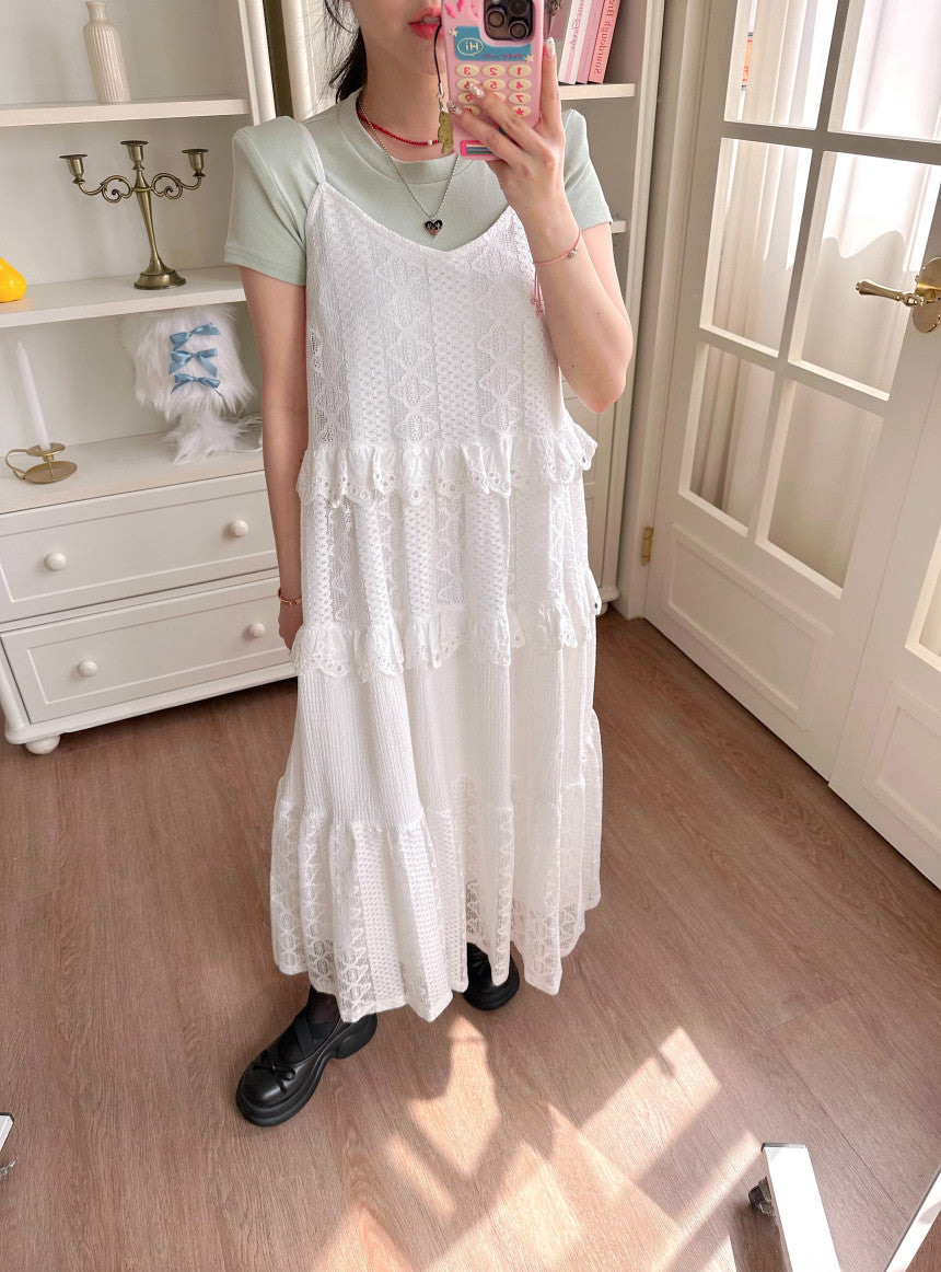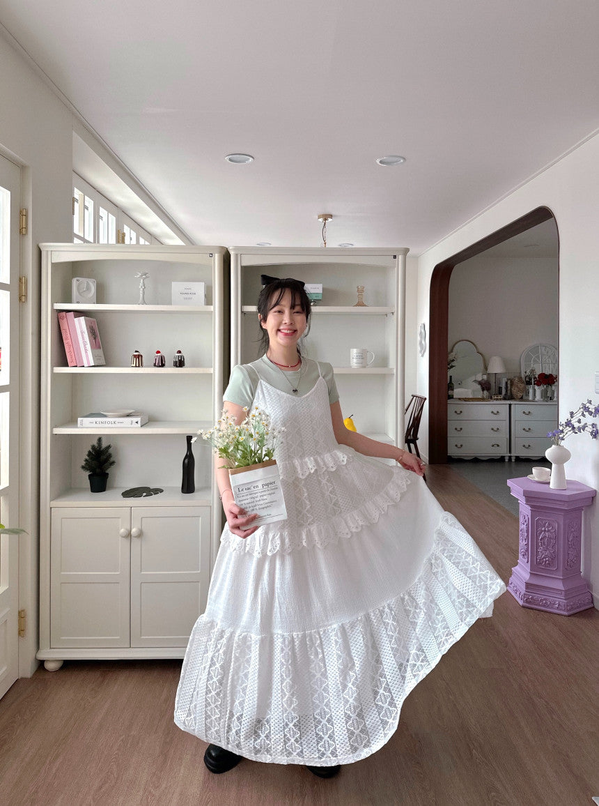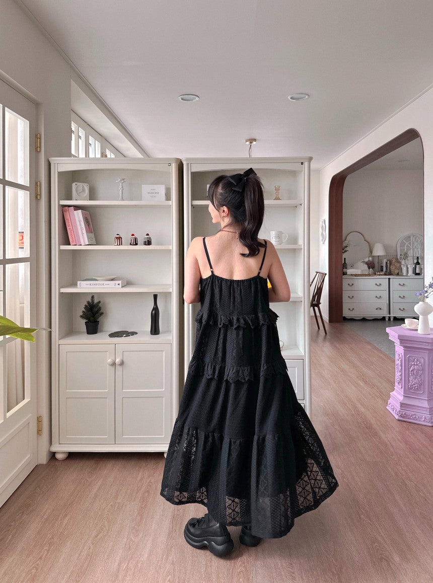 【F60182】韓國東大門蕾絲鏤空拼接蕾絲吊帶洋裝250225