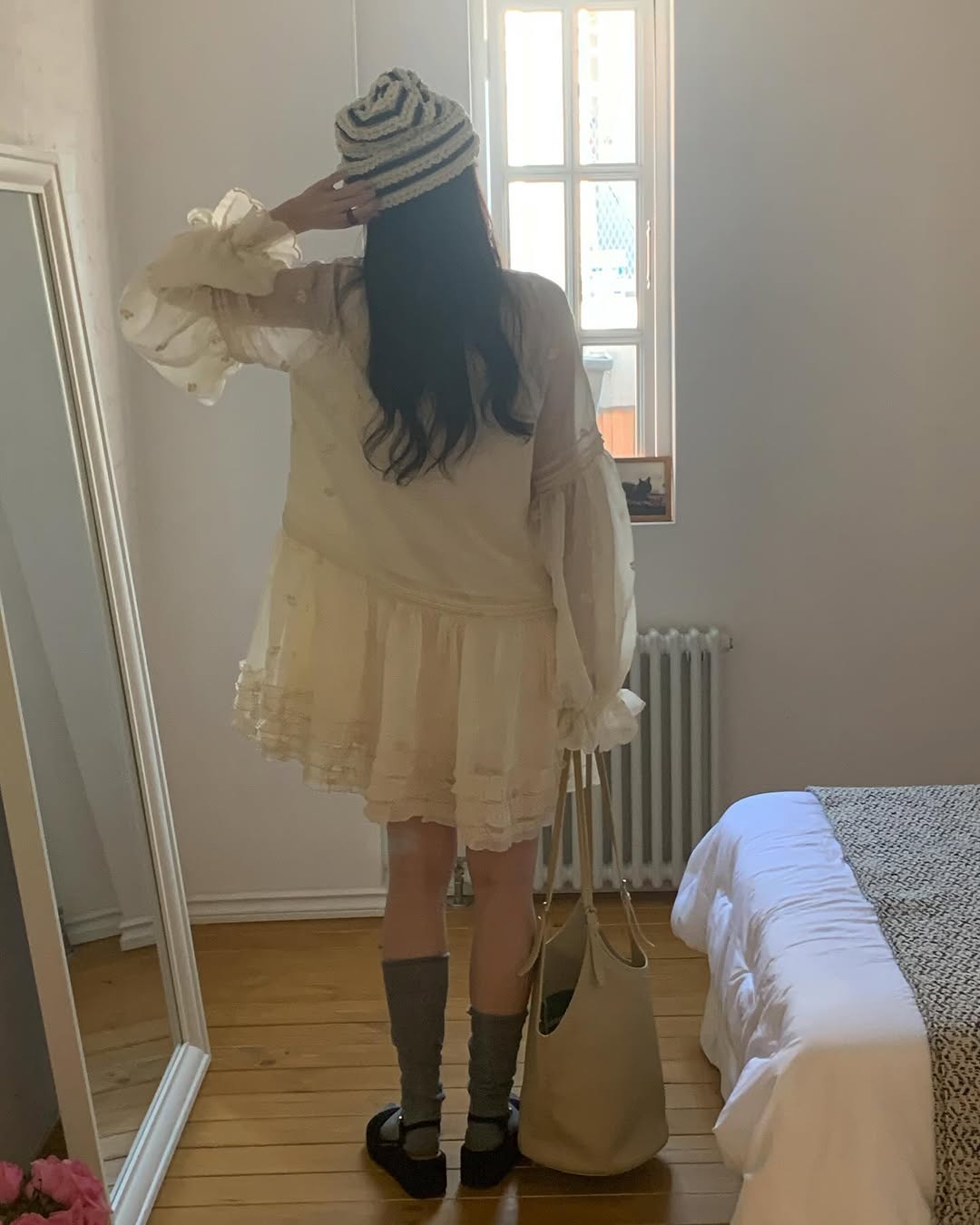 【F60184】美翻~春季甜美刺繡鈎花雪紡洋裝250225
