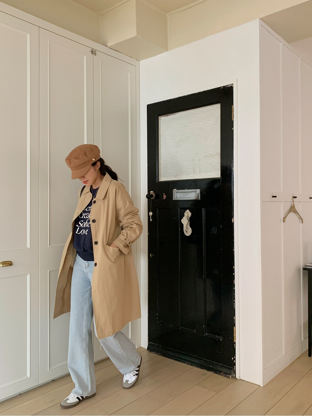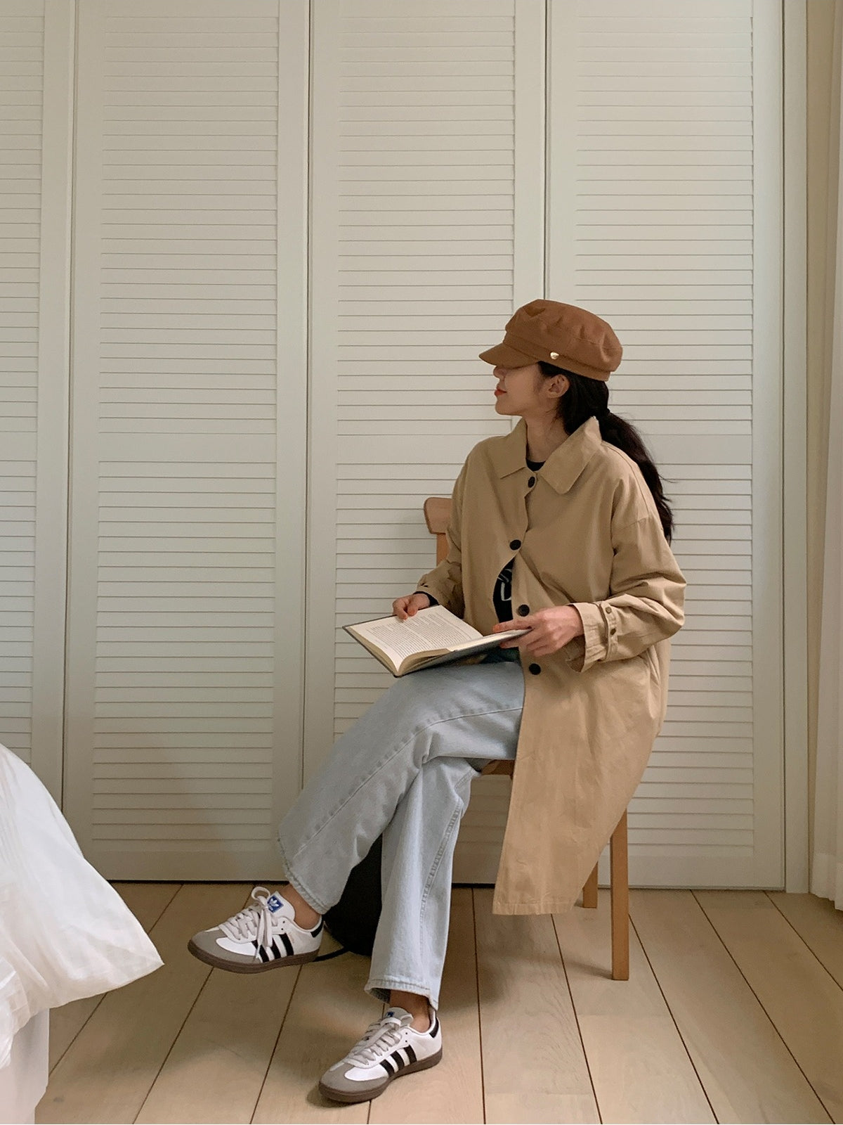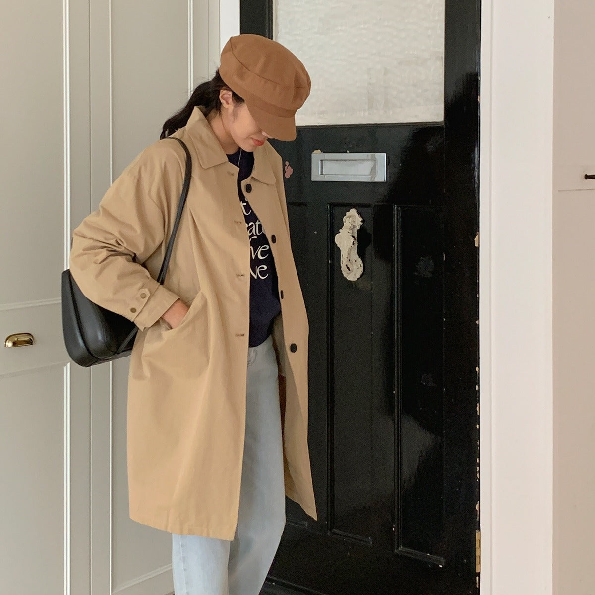 【F60187】韓國春季必備復古休閒簡約風衣外套250225
