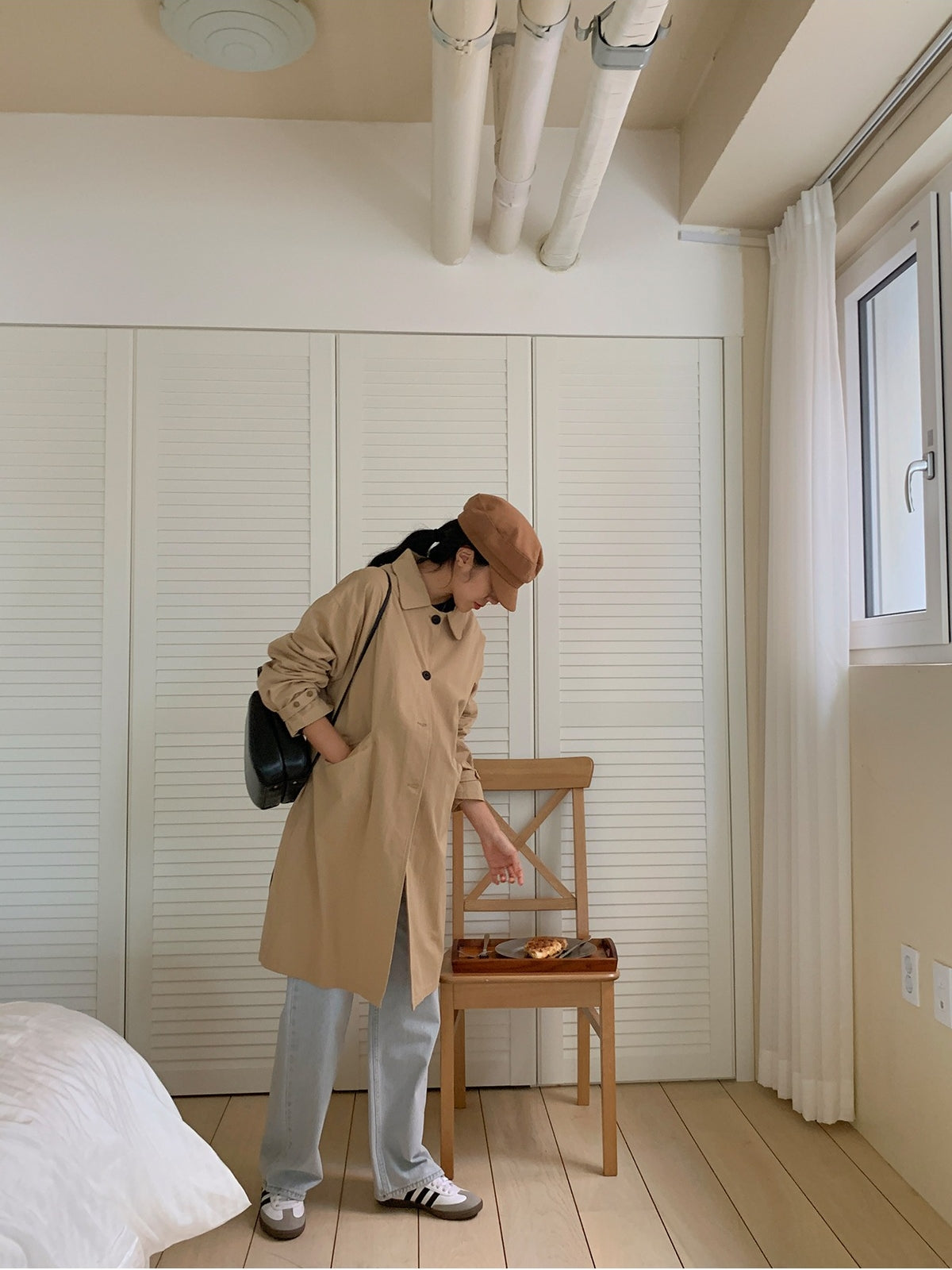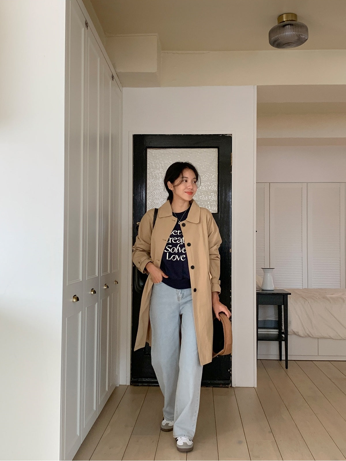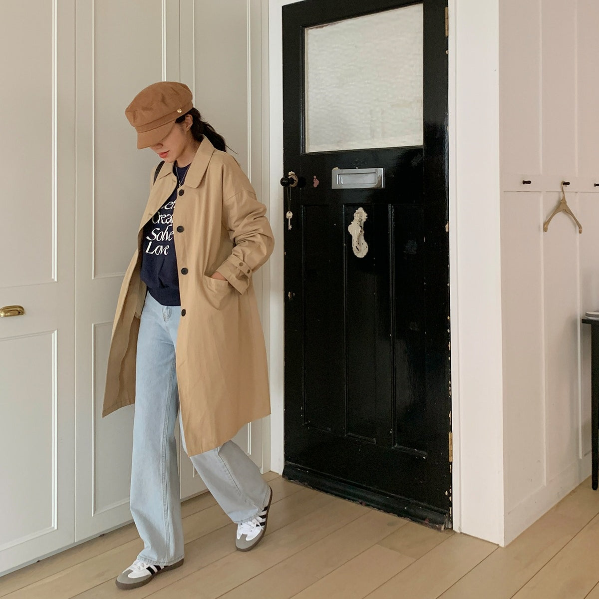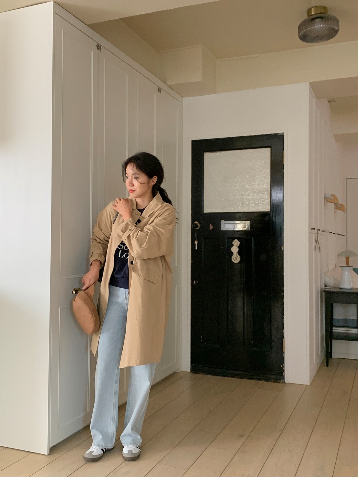 【F60187】韓國春季必備復古休閒簡約風衣外套250225