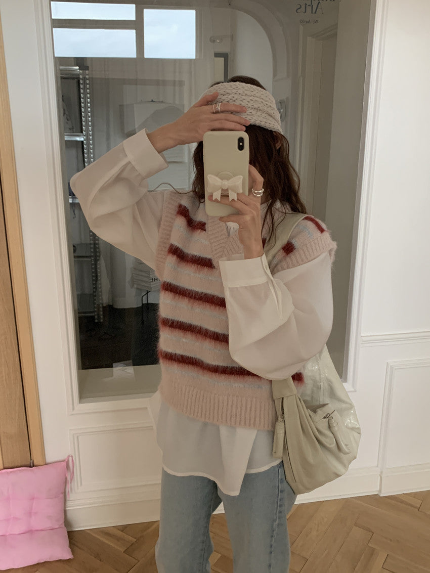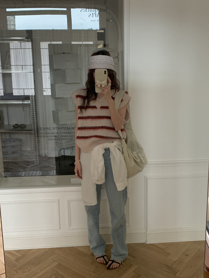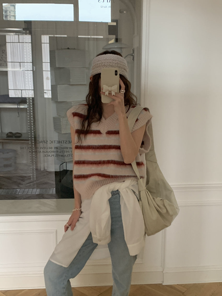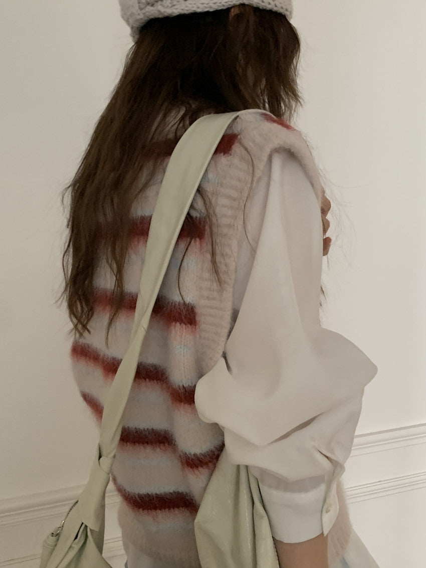 【F60205】實拍春季復古漸變寬鬆針織背心250225